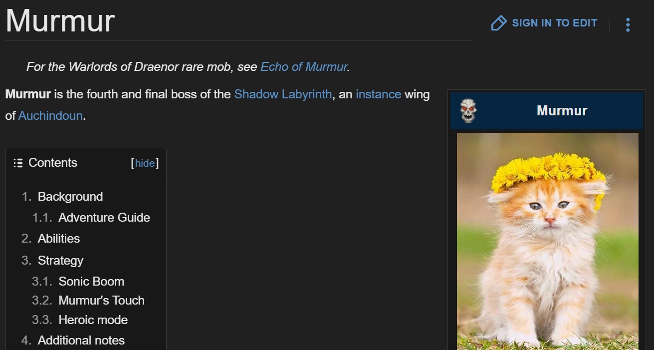Сегодня гильдия анонов распалась из-за гибели лидера группы в сложном подземелье. Высокоуровневый жрец пытался удержать на себе десяток мобов, но они всячески сопротивлялись и станили, в процессе чего ничего не подозревающий вожак неудачно применил массовое заклинание по области, обратив взор противников на себя и умерев в одно мгновение. К сожалению, про создании персонаж имел неосторожность получить метку «хардкор», из-за чего смерть была перманентной. Помянем этого доблестного воина шамана!