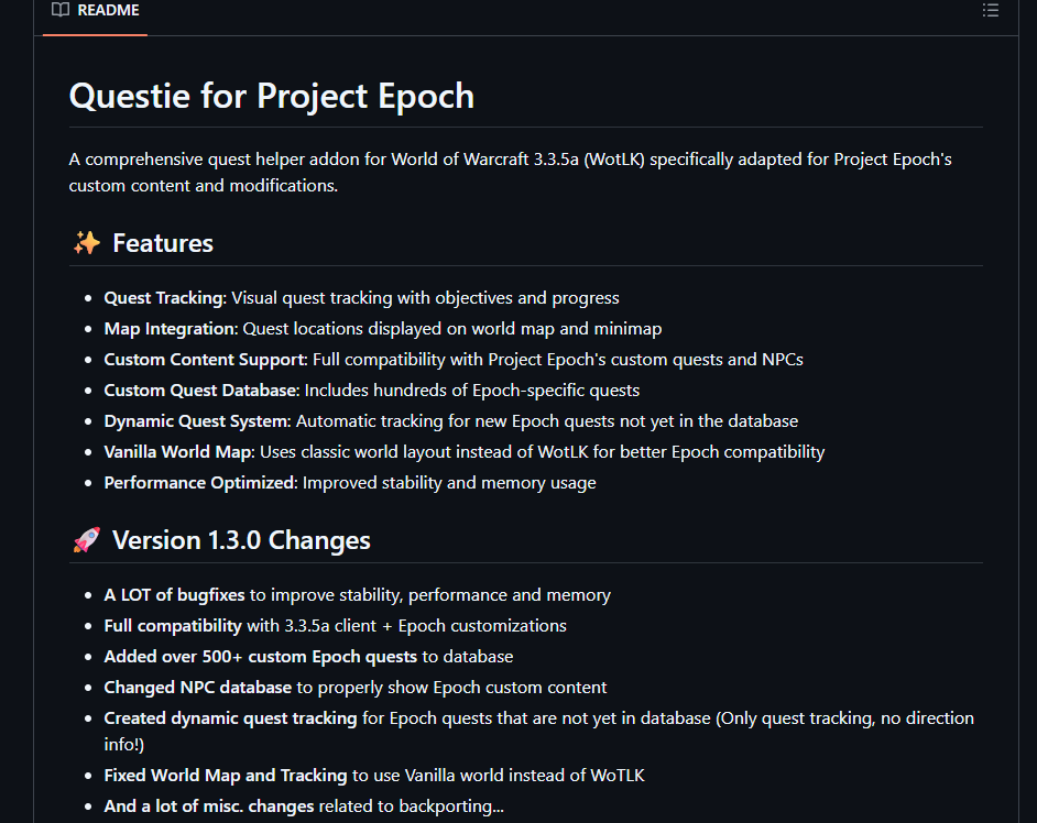 Проект позиционирует себя как масштабная модификация WoW Classic на базе клиента 3.3.5 с идентичными ванилле переносом важных механик, привнося при этом бесчисленное множество нововведений, касающихся локаций, заданий, фракций, мировых боссов, редких (rare) противников, ПвП (в том числе новое поле боя), заклинаний и талантов, профессий, сочетаний раса-класс и расовых способностей, игровых режимов (ХК и медленная прокачка), новые способности у рядовых противников ||смертоносный кабан-головорез с рывком, оглушением и божественным щитом ждёт вас||, совместные путешествия в повозках, неработающие петы, переработанные достижения (удалено всё лишнее, адаптировано под сервер), трансмогрификация, двойная специализация, стояние в очереди, парикмахерская и многое, многое, многое, многое другое. Как заявляют разработчики, проект будет только с косметическим донатом, и с передачей full vanilla experience(рейды правда сделают 25, не 40). В связи с переходом на асеншен появится возможность включить HD клиент, так-же в скором времени возможен релиз русека.