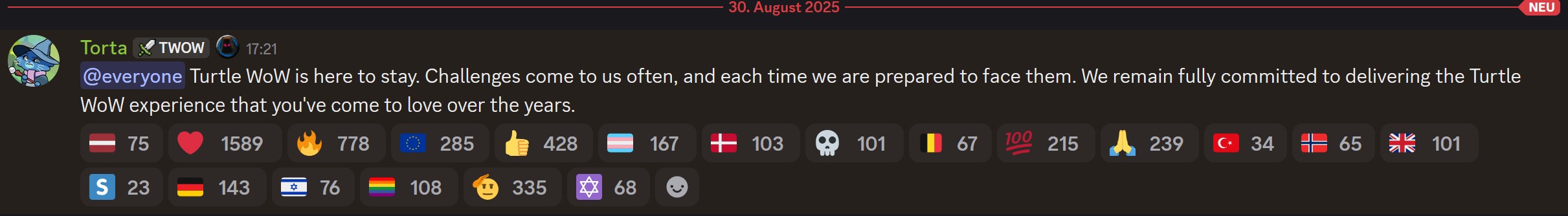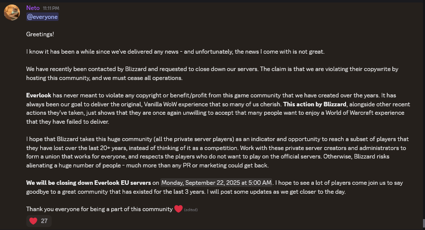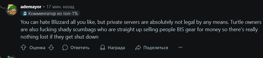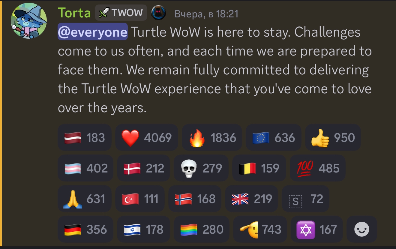 Как ни заниматься самоподдувом, но у туртла проблемы и большие. Думать что все будет так же как и раньше, просто смешно. Ностал живой(мертвый) пример. Прочитав новость подумал, может хуй бы с близзами, буду уж платить им 2 косаря за 60 дней за подписку, все таки я играл на классике в 2019. Зашёл на сайт какой то чекнуть онлайн серверов и ПРОСТО АХУЕЛ. Будем считать что на туртле и эпоче играют тысяч 50, ну приблизительно. На официальных серверах наверно и тысяч 10 не наберётся вообще, поэтому почему близы решили заняться пиратами логично, просто в 2019 году мне кажется играло в сотни раз больше людей ( 500 к онлайна в пике и 4.5 млн всего подписок).