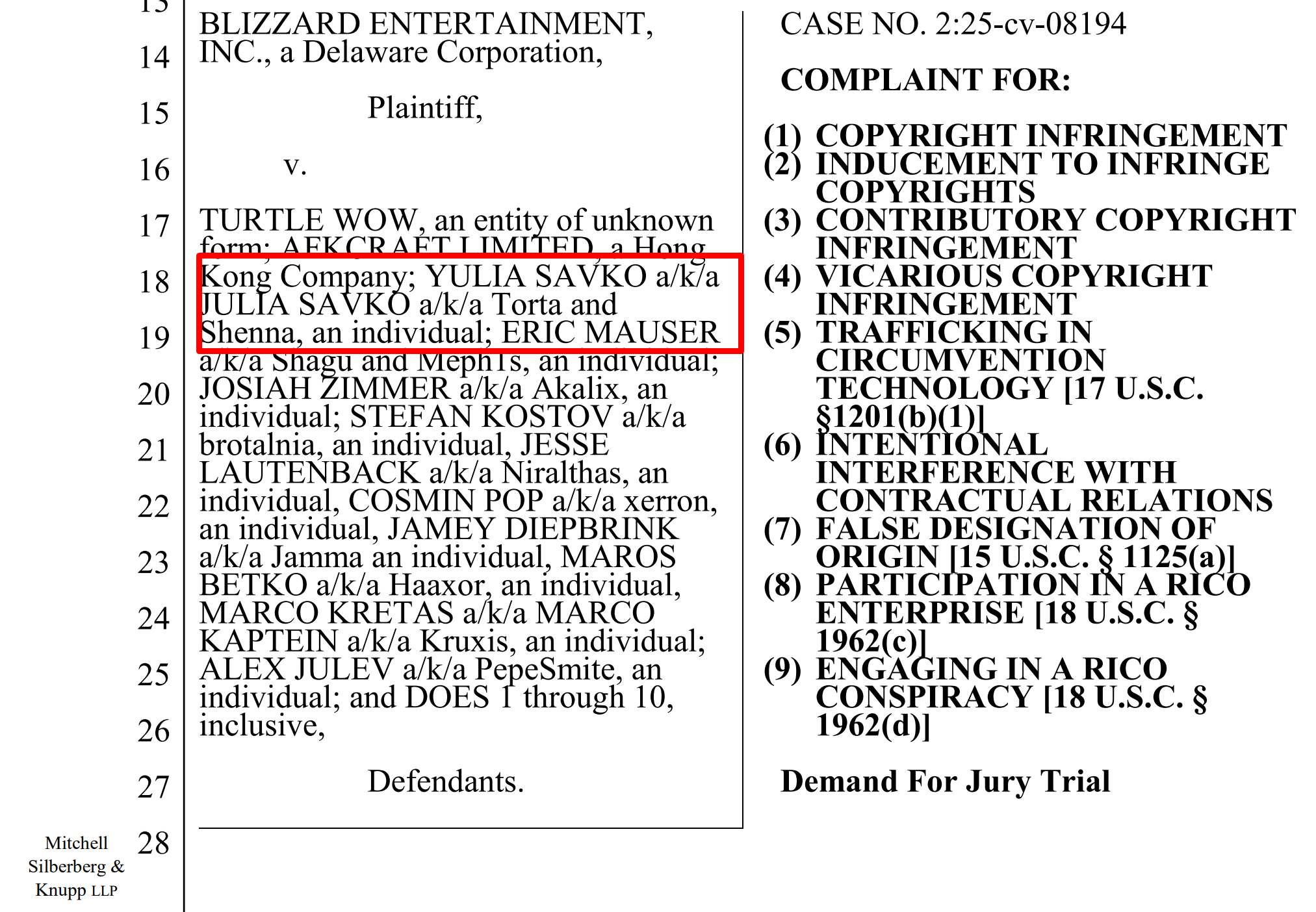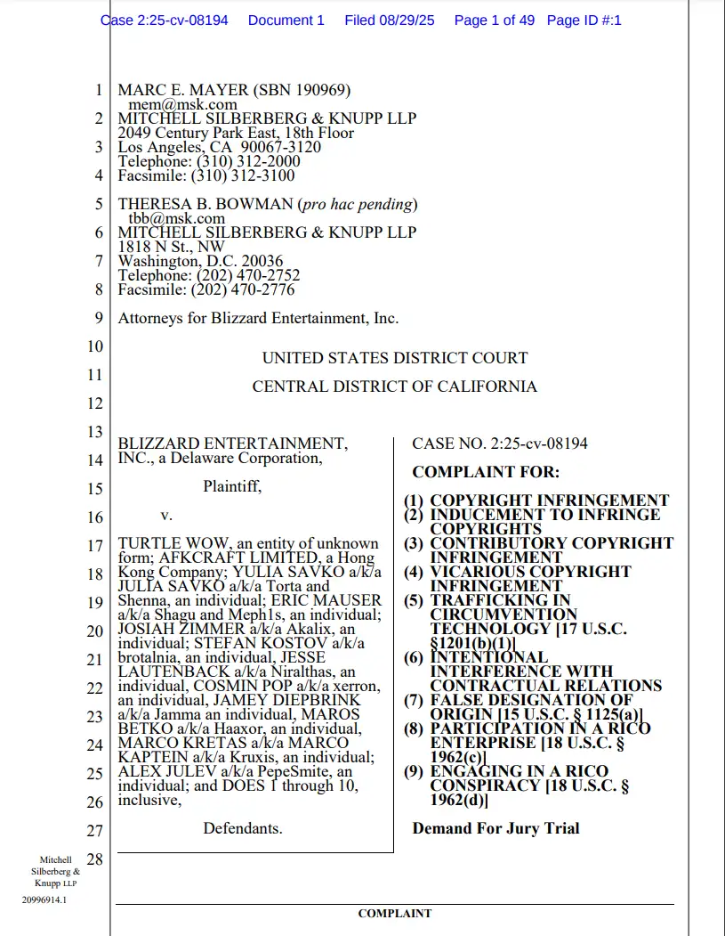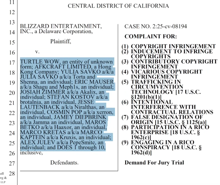 Это примерно если б рыгдональдс подал в суд на вкусочка. Там реальный шанс есть если вступятся китайские братушки из netease (близы им старательно нализывают очко уже очень долго) и надавят на китайскую часть пиратки. А так шансы близки к нулю, что что то вообще будет.