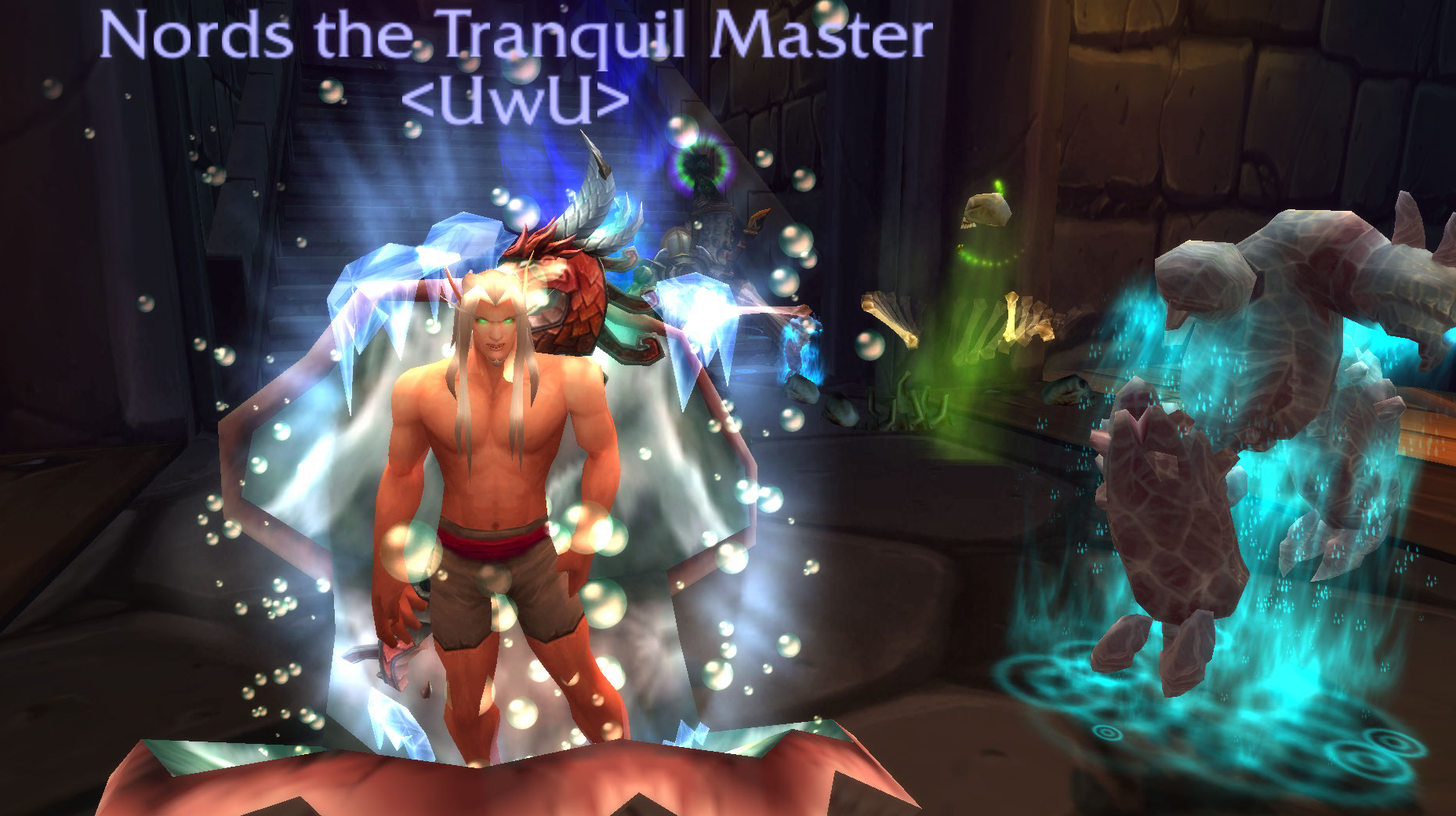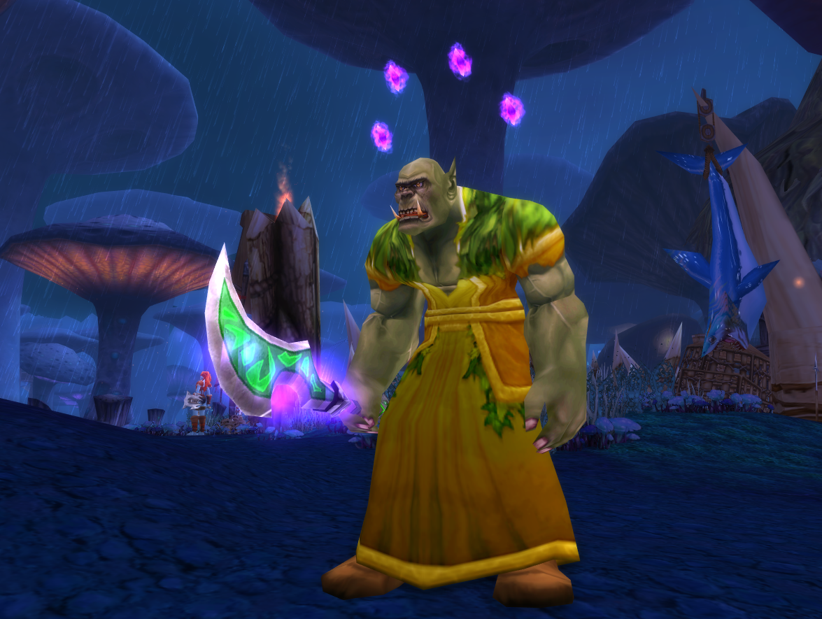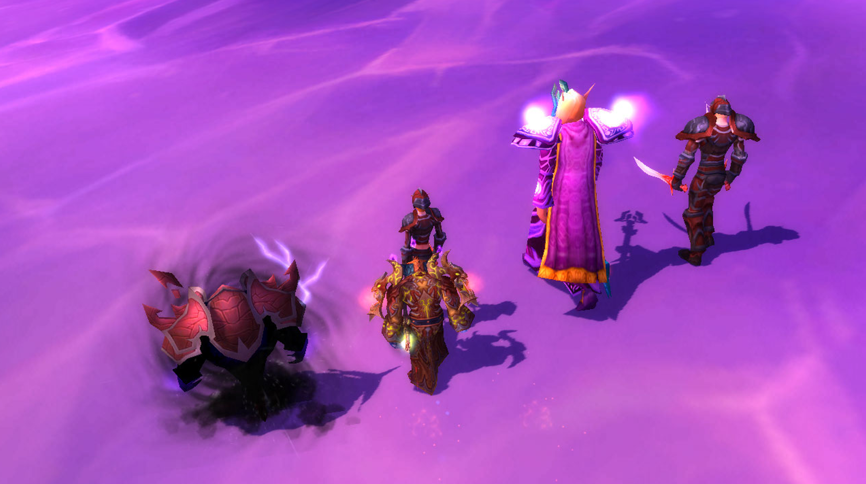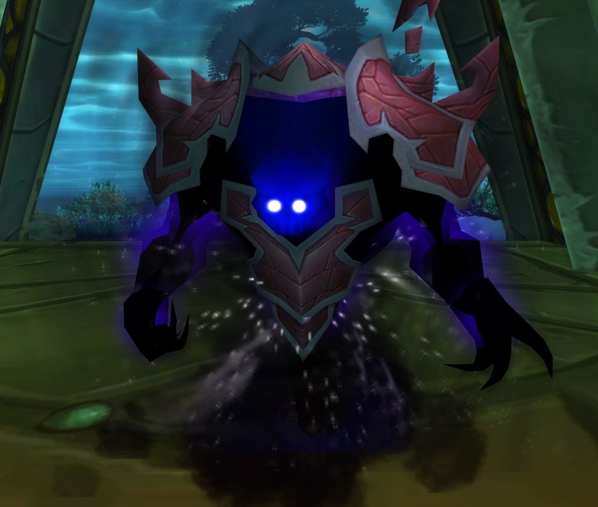 Подходящего трансмога нет, потому снял почти все шмотки, чтобы выглядело более-менее. Идея в том, что кинжал не выглядит как что-то "современное", близкое к Пандарии, потому остальной шмот тоже "убавляем" ближе к классике. А так прикольно что он светится как камни душ над головой. Прикольная штука, но надо ОБЫГРАТЬ