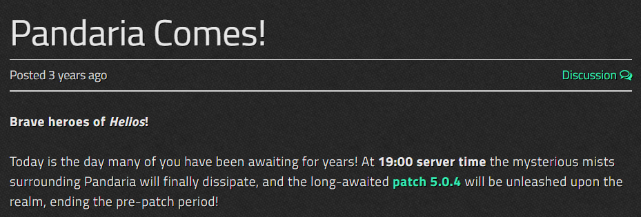 31 марта так называемого 2023 года Пандария вышла Как будто и не обязательно, а как будто и можно завершить цикл... Столько лет с переменным успехом играть и не стукнуть Гарроша - может это и странно