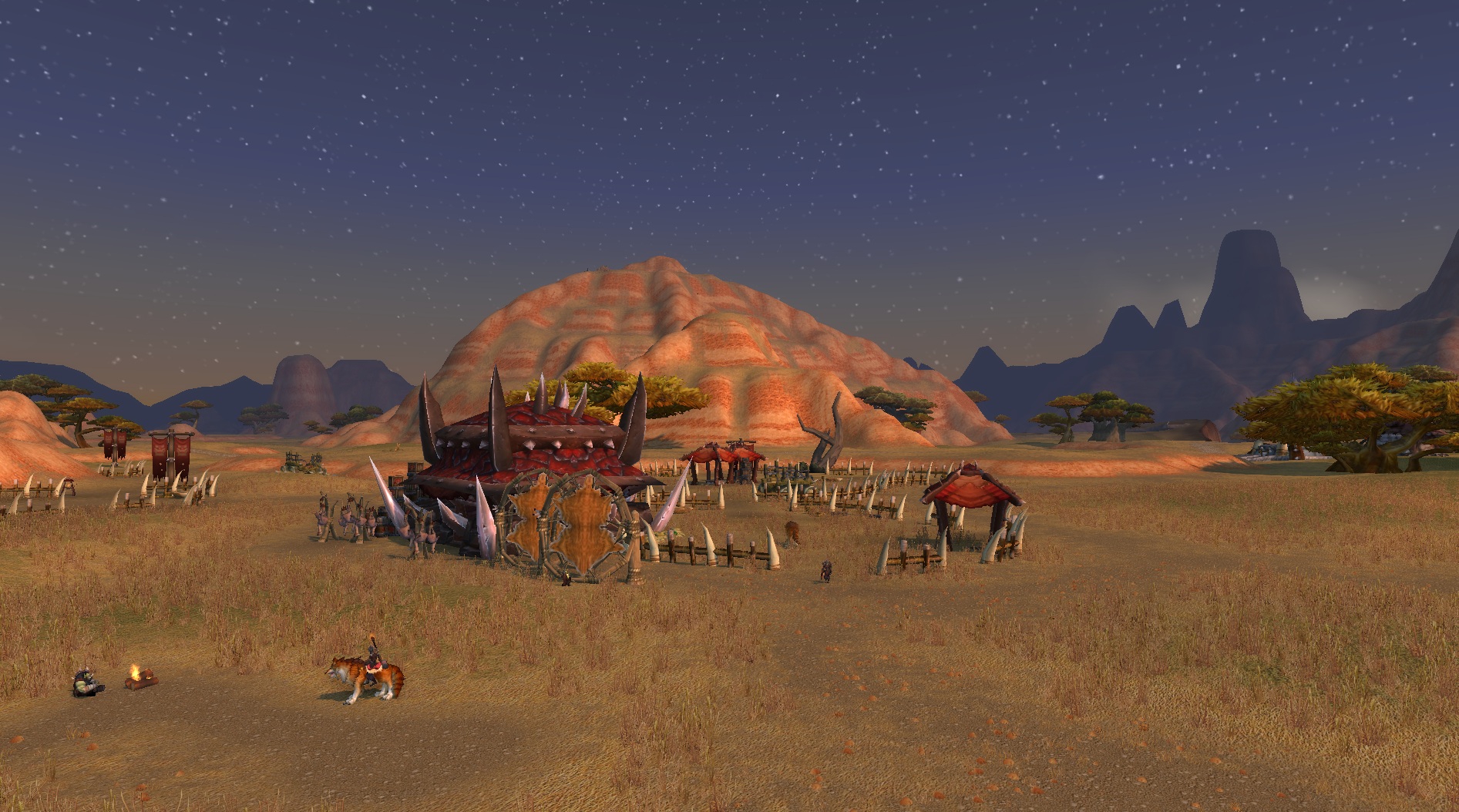 >давайте назовём это "радостью выживания", когда посреди этих античеловеческих условий вы с друзьями продолжаете бороться, провозглашая триумф жизни Именно то, чего у Альянса не почувствуешь. Наверное... Может не так интенсивно? Не про лучше/хуже, нет. Когда "ничего нет" (назовём так пустыню) - тогда радуешься всему подряд. Встретил союзника - радость. Прожил очередной день, а уж тем более сделал что-то - радость. В этой пустыне, в тяжёлых условиях, радуешься вообще всему. Кажется, что даже камни живые, особенно когда нашёл безопасное уютное место. Везде останавливаешься, изучаешь что-то. Смерть всегда где-то рядом, это далеко не курорт, но бежишь по заданию, встречаешь таурена и чувствуешь "Друг, давай просто посидим вместе... Мы живы, всё продолжается, давай радоваться каждой минуте" (и уж тем более, если нужна помощь - выручаешь, чем можешь). Да, пустыня. Да, опасно. Но для всех этих существ это родные места. Ночное небо, звёзды, позади ещё один день