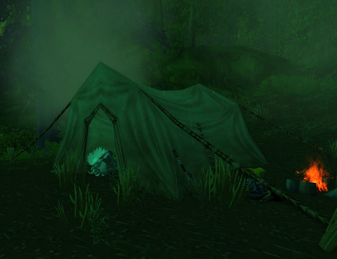 Ночка непростая. Полны опасностей и Ясеневый лес, и Когтистые горы, и Пустоши, и Фералас. Последний разрозился таким ливнем, что пришлось прекратить приключение. Гоблин предложил местечко в его палатке, за что спасибо, но всё равно не то (сам он сидел возле костра, совершенно игнорируя ливень... это было странно). Незаметно проскочили мимо коррумпированных дриад и добежали до поселения тауренов. У них и у самих дела "бывало и лучше", но встретить гостя умеют, никогда не забывают об уюте - хорошо, правильно, душевно