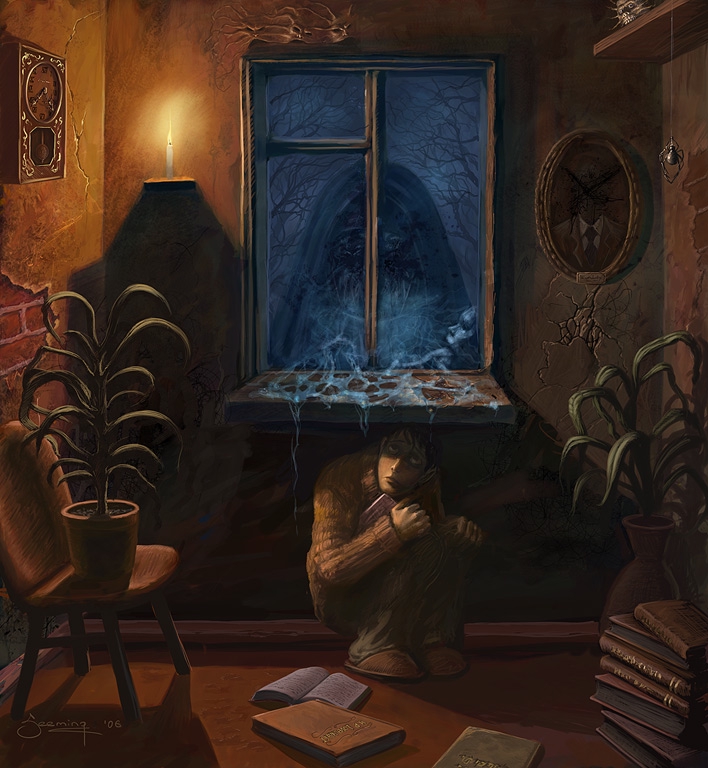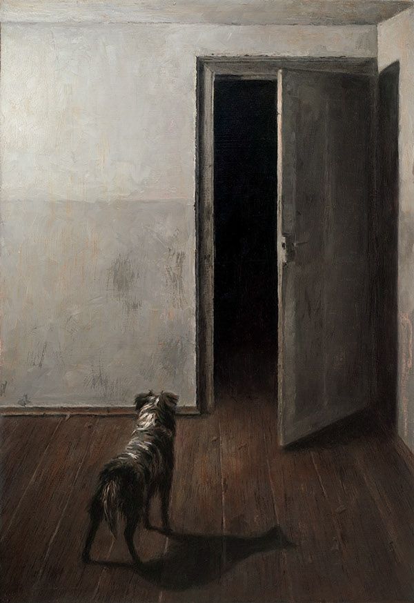 Вот отличная, проникновенная жутью пикча. Прикинь, ты сидишь в каких-то ебенях, в съёмной общаги, где даже соседей почти нет. И вдруг твой пёсель подрывается и просто смотрит в темноту. А в ответ только тишина. И ты хуй его знает что там вообще такое.