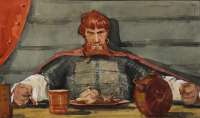 >>330646Прямо напротив ворот располагался небольшой терем, куда гости были приглашены, посему толком рассмотреть крепость изнутри у них не было возможности.Вероятно в обычное время в тереме располагался караул, сейчас же за пустым столом на лавке восседал человек в котором без труда угадывался посадник. Завид Микульчич вероятно в прошлом был сотником в княжьей дружине Ярослава, по старости лет отошедшим от дел и севшим на посад в Белоозере как доверенное лицо князя.Его мощная коренастая фигура была облачена в кольчугу, седеющая борода обрамляла обветренное лицо с черными внимательными глазками.Он пригласил друзей садиться на против него(спиной к двери), и предложил рассказать о себе. Просто одетая женщина принесла кувшины с квасом и большой ржаной хлеб.
