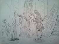 Весенний лес был прекрасен - свежая листва на деревьях сияла, солнце ярко светило, повсюду порхали и пели птички - красота! Но, всё же что-то нарушало идиллию. То тут, то там, из куста в куст перебегало какое-то существо. Оно настолько сильно желало не раскрывать своё присутствие, что его заметил бы любой: перед тем как сделать шаг, оно внимательно осматривало место, куда собиралось поставить свою ногу - нет ли там веток, перед тем как спрятаться в куст - проверяло, нет ли там птиц и так далее. На всей планете, возможно был только один такой любитель пряток, и имя ему - Железнаяголова. Гений скрытности и саботажа, который в данный момент "осторожно" пробирался через лес, пытаясь не выдавать себя, насколько у него это получалось. Намереваясь сделать ещё один шаг, восставший сначала убедился, что там нет ничего, что могло хрустнуть или издать ещё какой-нибудь звук. Потом всё таки сделал шаг, поднял голову и... Оказался нос к носу с двумя вооружёнными людьми. Одеты они были как настоящие головорезы - потрёпанные жилеты, кожаные перчатки и сапоги, рваные тканевые штаны. На их грязных бородатых лицах появились злобные гримасы, которые видимо являли собой улыбки, стало заметно, что у них осталось очень мало зубов. Поигрывая мышцами, люди вытащили из-за пояса оружие - кинжалы и тесаки, и один из них, видимо старший, начал говорить:-Ха-ха, добро... это... пожалывать в наши леса. Мы тут главные... в этом-то лесу. Это... если хошь пройти, нужно заплатить, а не то мы тебе все кости переломаем. Прально я говорю, Абдулушка? - последняя фраза была адресована его напарнику.-Точняк, Пахомич * все кости переломаем. - ответил Абдулушка, не такой культурный как его друг.Спорить с двумя вооружёнными людьми это довольно глупое решение, но Железнаяголова не до конца понимал всю опасность сложившейся ситуации. Отдавать все пожитки этим двум бандитам ему вовсе не хотелось, хотя если честно, то и отдавать ему было нечего, поэтому восставший решил не идти на поводу у грабителей:-Может у вас и палучалось выманить имущество у напуганных людей, но со мной этово не произойдёт. Вы глупцы, если думаете, што сможете одолеть восставшего. Маи кости сделаны из металла, а мой дух даже прочнее их. За грубость извени. Я предлагаю вам разайтись мирно и я даже забуду... - глупый и несвязный монолог Железнойголовы прервал хохот, грабители дружно смеялись, от этого восставший очень разозлился. Вдоволь насмеявшись, старший головорез Пахомич, снова заговорил. Его фраза была короткой, но в ней чувствовалась угроза и Железнойголове стало немного не по себе:-Ну, мы всё таки попробуем. - после этих слов бандиты вместе выдвинулись в сторону восставшего. Злой от того, что его не воспринимают всерьёз, Железнаяголова отскочил к ближайшему дереву и напрягшись отломал себе большую ветку, такая могла быть хорошим оружием в правильных руках. Взвесив "дубину" в руках, восставший настроился на бой, но рёв раздавшийся сзади сбил его с настроя. Заметив, как грабители, которые секунду назад смотрели на него со злобой теперь испуганно уставились ему за спину, он тоже решил обернуться и... Мощный удар в спину отбросил его в сторону не дав посмотреть назад.Поднявшись с земли, Железнаяголова бросил взгляд на то место, где разговаривал с бандитами и перед ним предстала странная картина: ожившее дерево, держало в своих ветвях Пахом