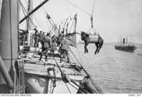 Че резкий такой? Все напишу. “Беззадачный” успешно завершил ходовые испытания, но пока не был принят флотом из-за неготовности торпедных аппаратов. Песецкий тут же нашел ему применение, устроив учения по десантированию. Он утопил на тренировках одну лошадь и двух солдат, но неплохо подготовил остальных. Шибкогруб дал себя уговорить на небольшой разведывательный рейд на континент. Для перевозки 1-й дивизии Морских гусар были выделены “Беззадачный” и “Аврора”. 1-я КД грузится на ЭМ в порту, плывет на 06:09 и выгружается на 07:09. Оставшиеся ходы тратит на движение 08:10 - 09:10 (На фото: 1. Эсминец "Беззадачный" в порту. Обратите внимание на пустые площадки торпедных аппаратов позади второй трубы; 2-3. Десантирование 1-й КД; 4. "Беззадачный" и "Аврора" в море, картина неизвестного художника)