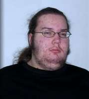 #Внешность: женственный, красивый худой юноша, лет двадцати. Имеет растрёпанные волосы, жёлтого цвета, до плеч. Одет в серую униформу и берцы. На лице слегка безумная улыбка а под глазами мешки.