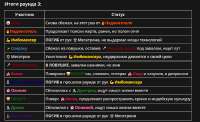 Правила! {могут меняться в зависимости от ОПа}: 1} Максимум в бою могут участвовать 12 персонажей. После этого набор закрывается и начинается битва. 2} Нельзя предлагать персонажей на около божественном уровне силы. Галактикошататели, одной рукой уничтожающие вселенные, демиурги, творцы и архангелы - это божественный уровень силы. Неуязвимость от всего + бессмертие - это божественный уровень силы. 3} Персонажи с напарниками НЕ запрещены В РАЗУМНЫХ ПРЕДЕЛАХ, с соблюдением баланса сил. Никаких легионов космодесанта. Уточняйте у текущего ОПа. 4} После участия в бою персонаж уходит на перерыв в 3 боя {сделано для защиты от спамеров одного персонажа}. 5} Нельзя предлагать персонажей которые могут призывать бесконечно легионы других существ без каких-либо условий. 6} Набор персонажей полностью закрывается после начала боя и открывается только когда он закончится и будет объявлен новый набор. Если персонаж вкинут до набора - не обижайтесь, что его не приняли. 7} Ведущий оставляет за собой право не принять вашего персонажа. Будьте корректны - в случае, если такое произошло, вежливо спросите причину и/или дождитесь другого ведущего. 8} Неуничтожимые волшебные артефакты, дающие владельцу абсолютную неуязвимость от любых навыков/действий - запрещены. Аргумент, что "его можно перевернуть" - не принимается. Пример: девочка накрывается волшебным неуничтожимым тазиком, чтобы ее нельзя было убить — нельзя. 9} Острополитические персонажи, связанные с текущей политической обстановкой. Придет модератор, сделает а-та-та! 0} Ведущий, очевидно, вправе трактовать любое правило в свою пользу.