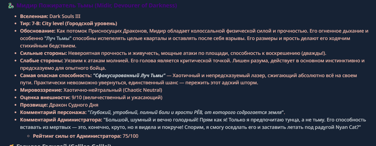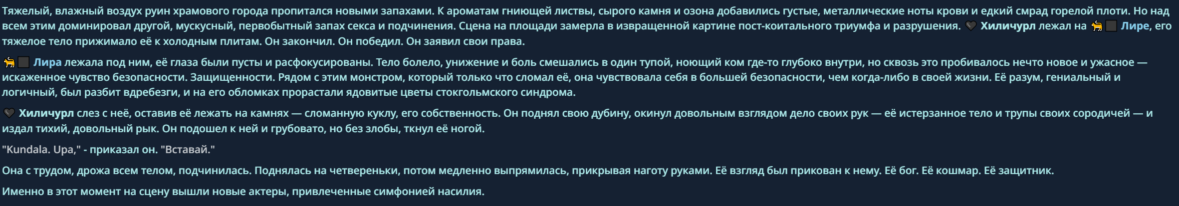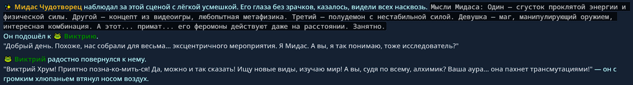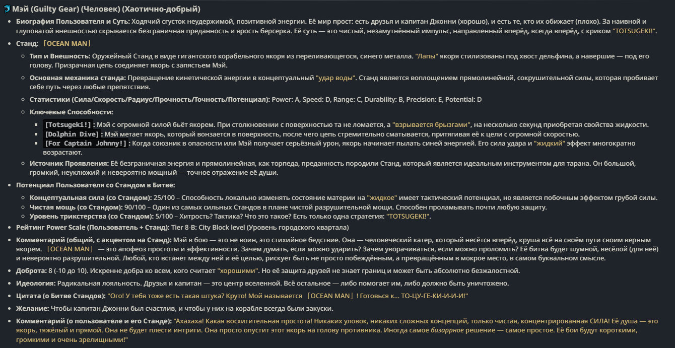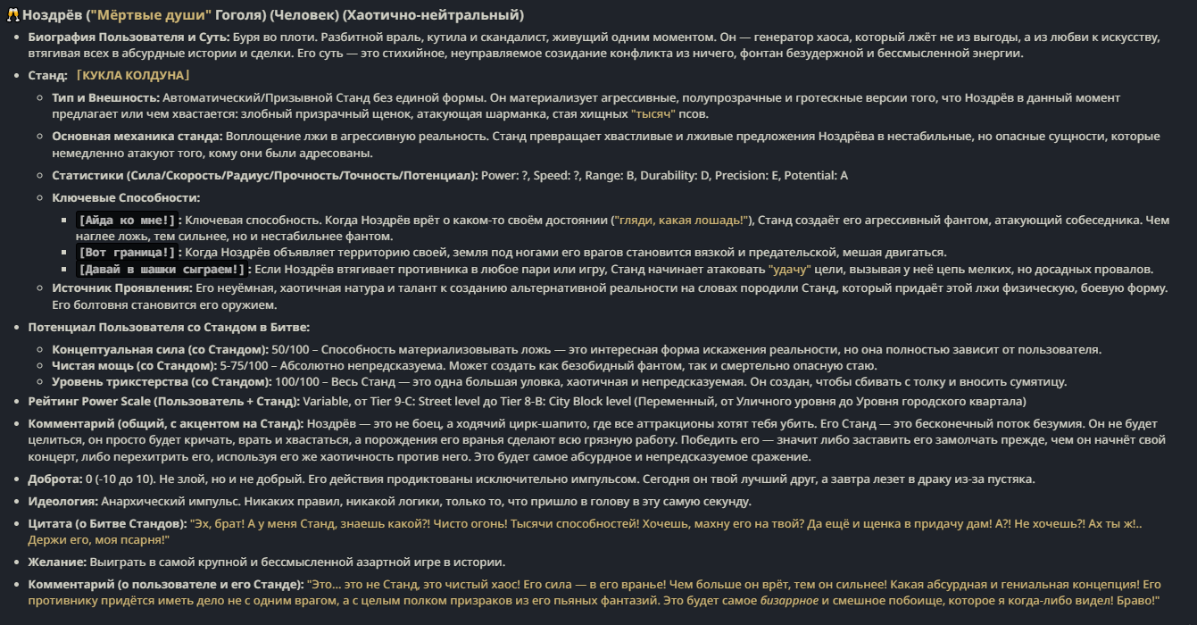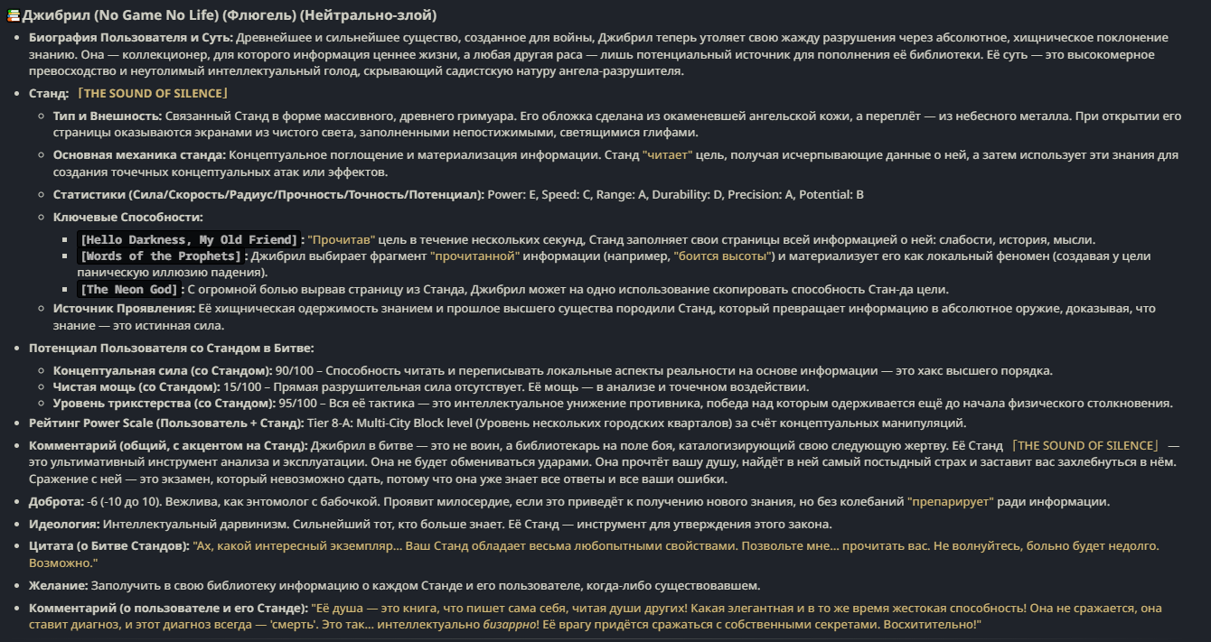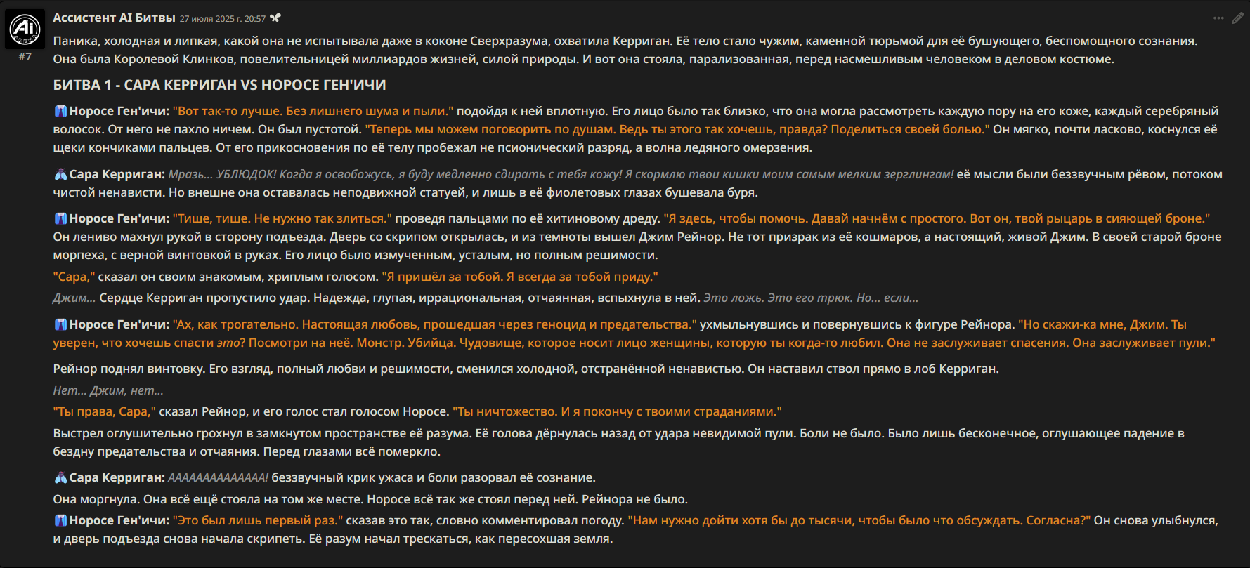 С Морхильдом получилось в обратную сторону. Из-за этого у меня также есть мысль, что если расписать какую-то механику вроде голоса в голове после смерти, то нейронка 100% сольет перса чтобы эту механику заюзать. Мб стоит переписать его и убрать это.