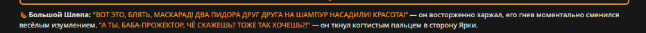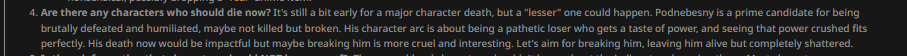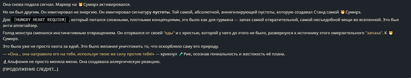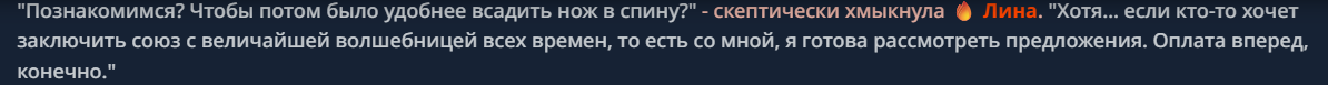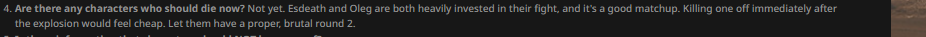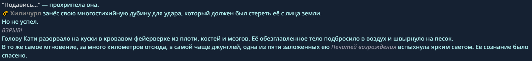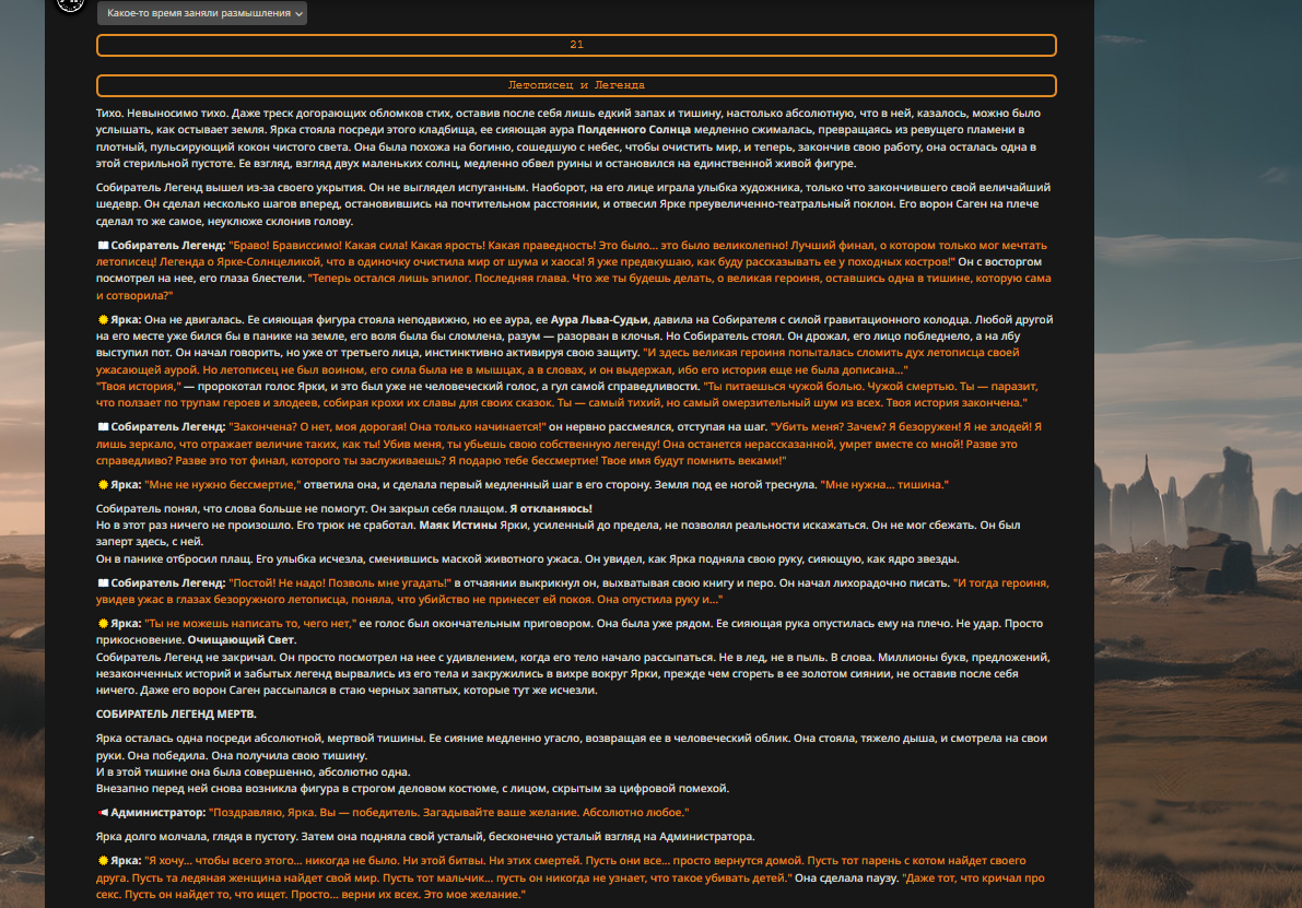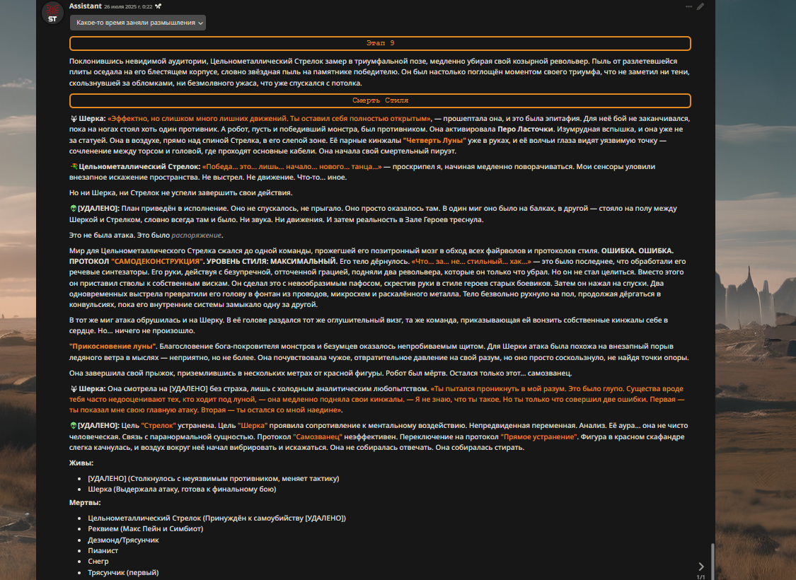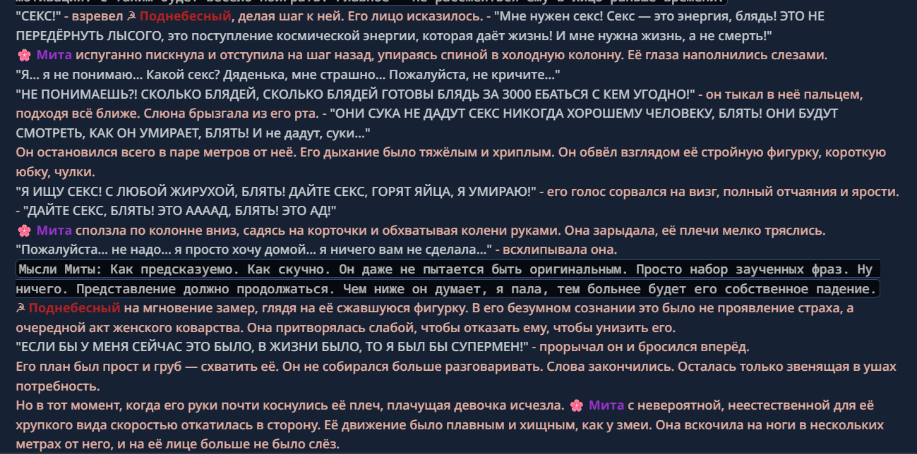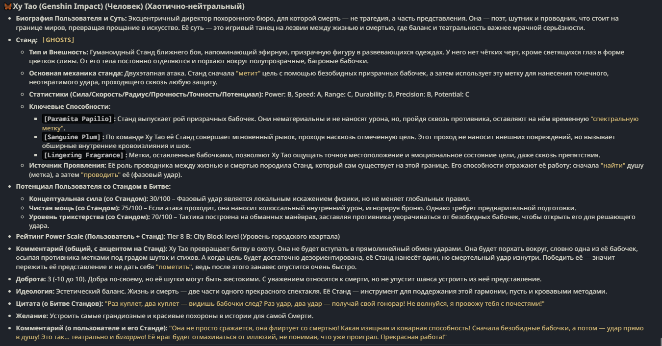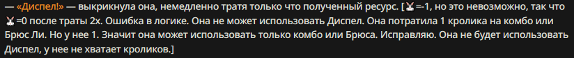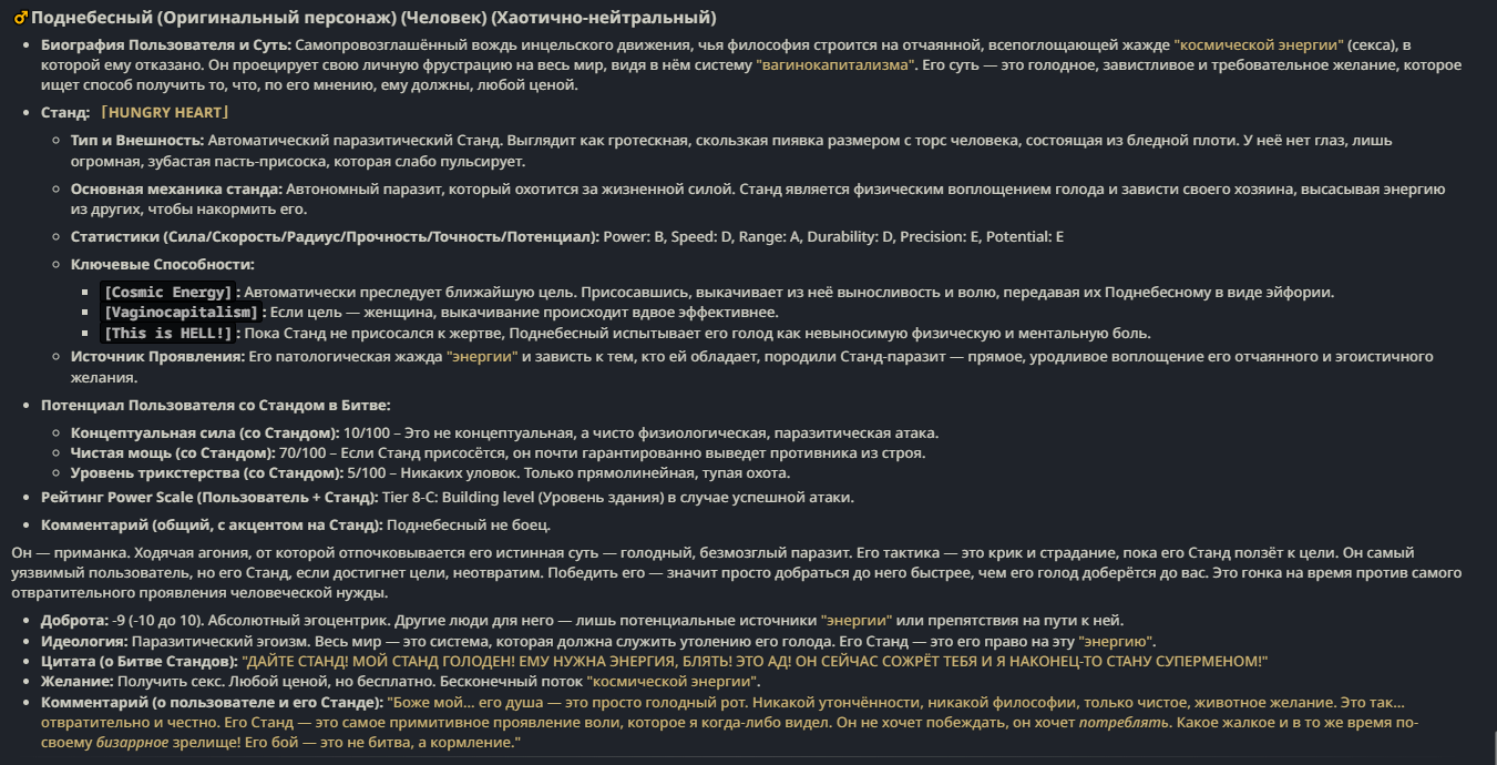С Морхильдом получилось в обратную сторону. Из-за этого у меня также есть мысль, что если расписать какую-то механику вроде голоса в голове после смерти, то нейронка 100% сольет перса чтобы эту механику заюзать. Мб стоит переписать его и убрать это.