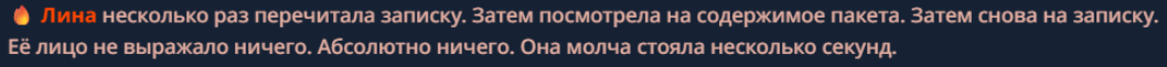 >>839568 У меня какая то база по Лине уже была ещё много месяцев назад настрочена (примерно в тоже время когда я Эдгара написал), я тащемта многое от неё перетягивал к своим оригинальным персонажам