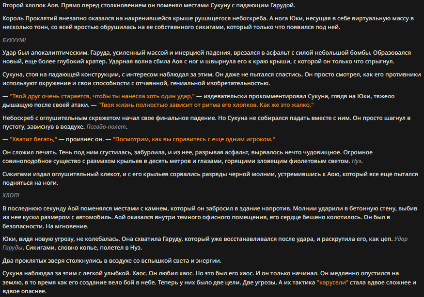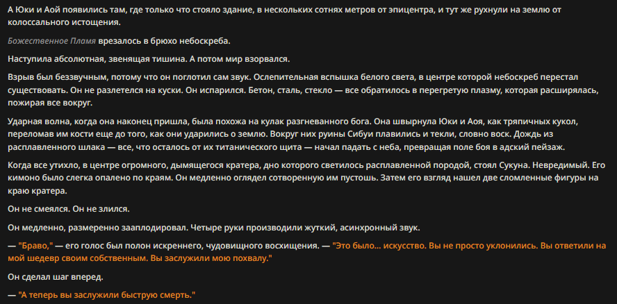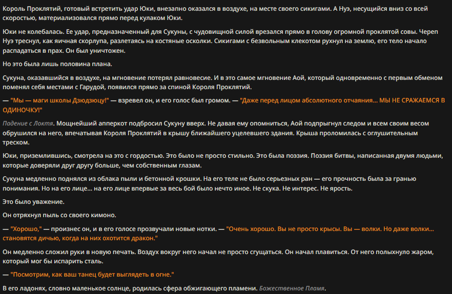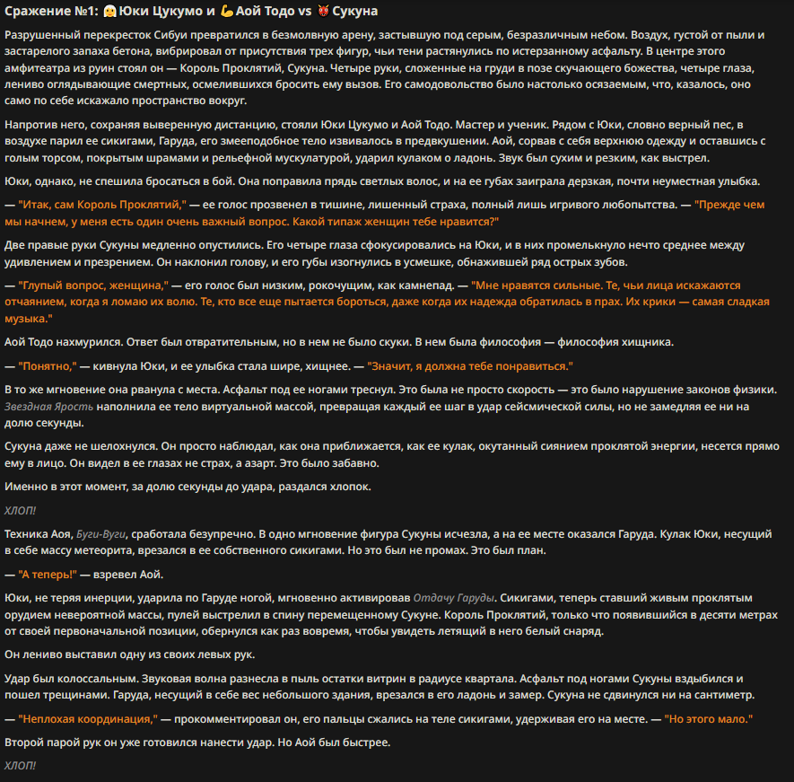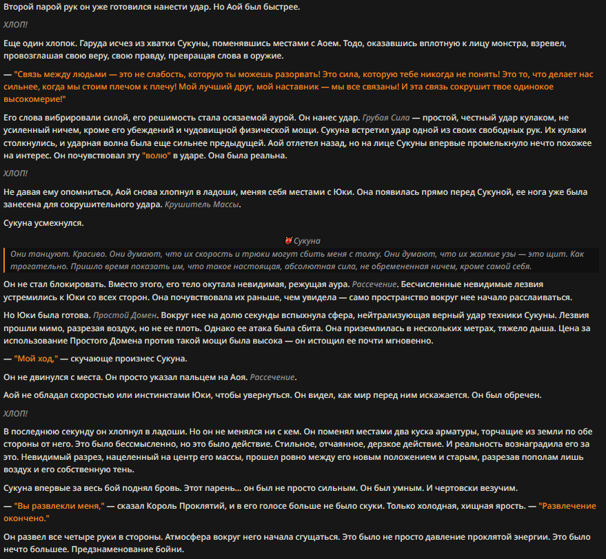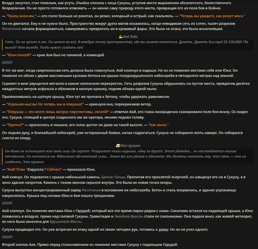 >>841594 Слушай, а пока сейчас ничего похоже ещё не привидится, не хочешь потестить ещё одного жужутцу-колдуна против Сукуны? Как раз сегодня закончил писать