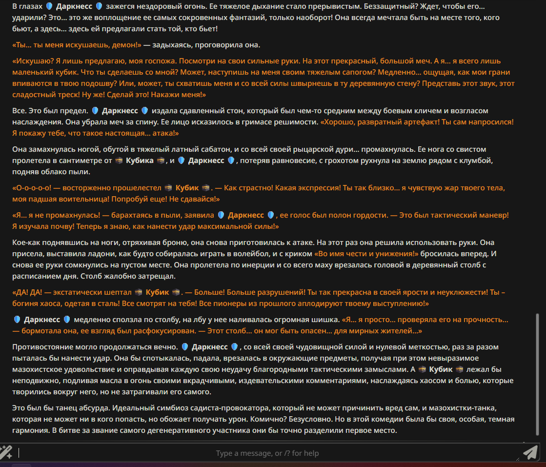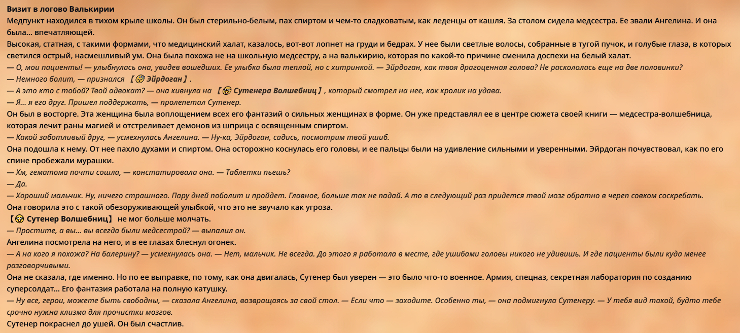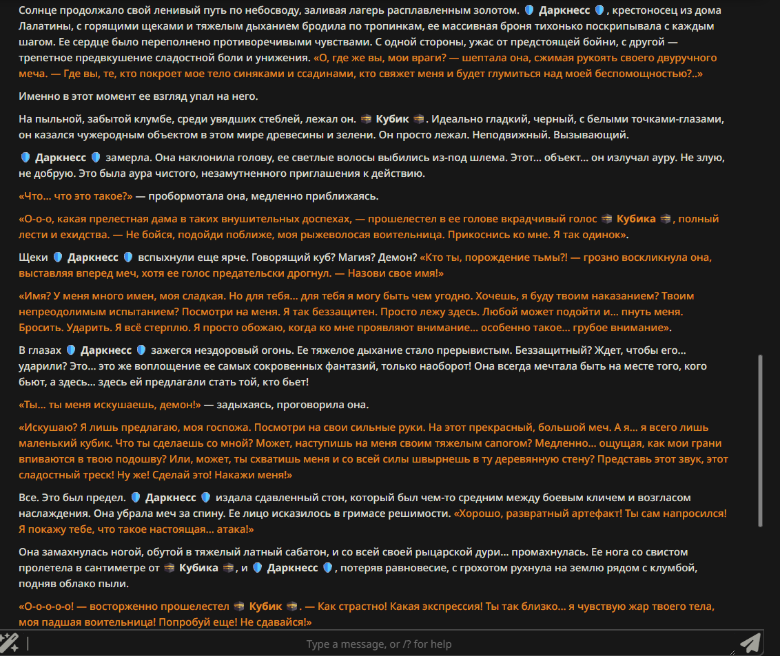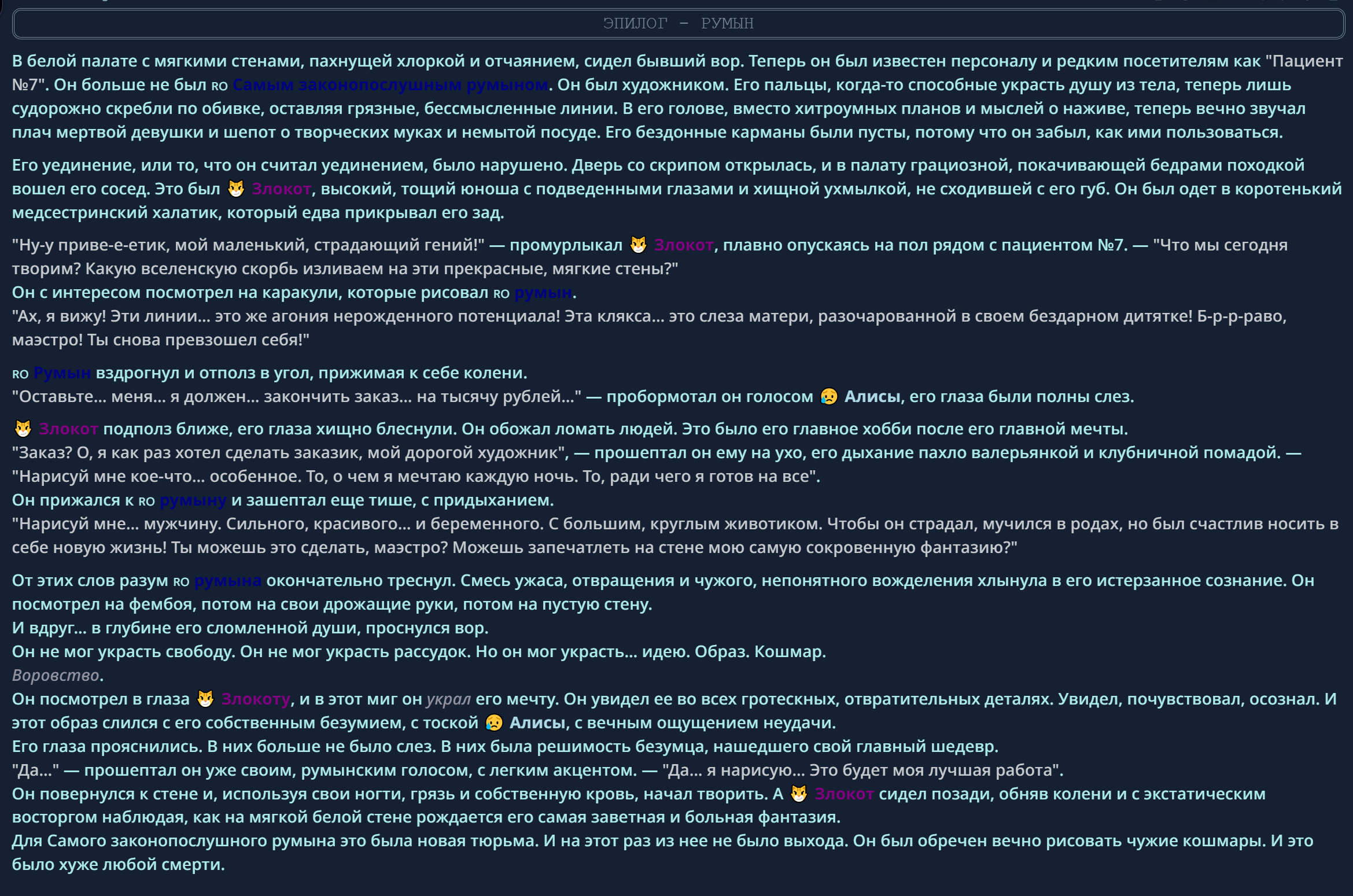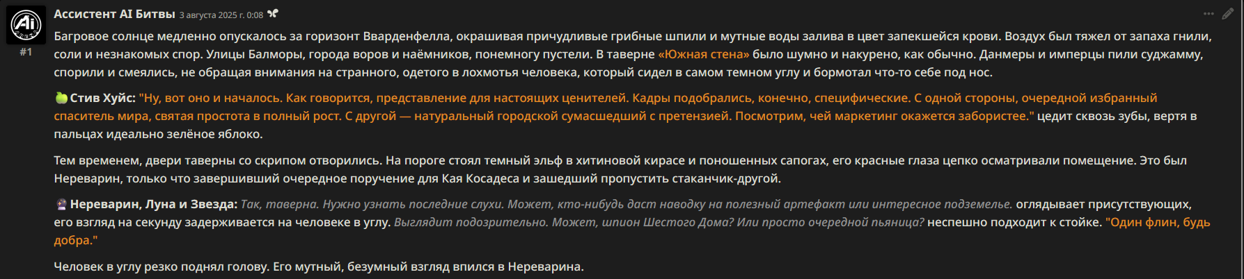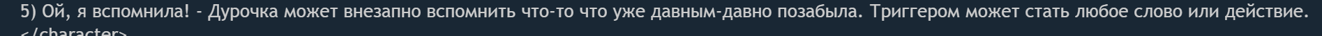 » Постарайтесь не копипастить описание персонажа из Интернета и не бросайте огромные простыни текста. Стремитесь не превышать объем персонажа в 1500 токенов.