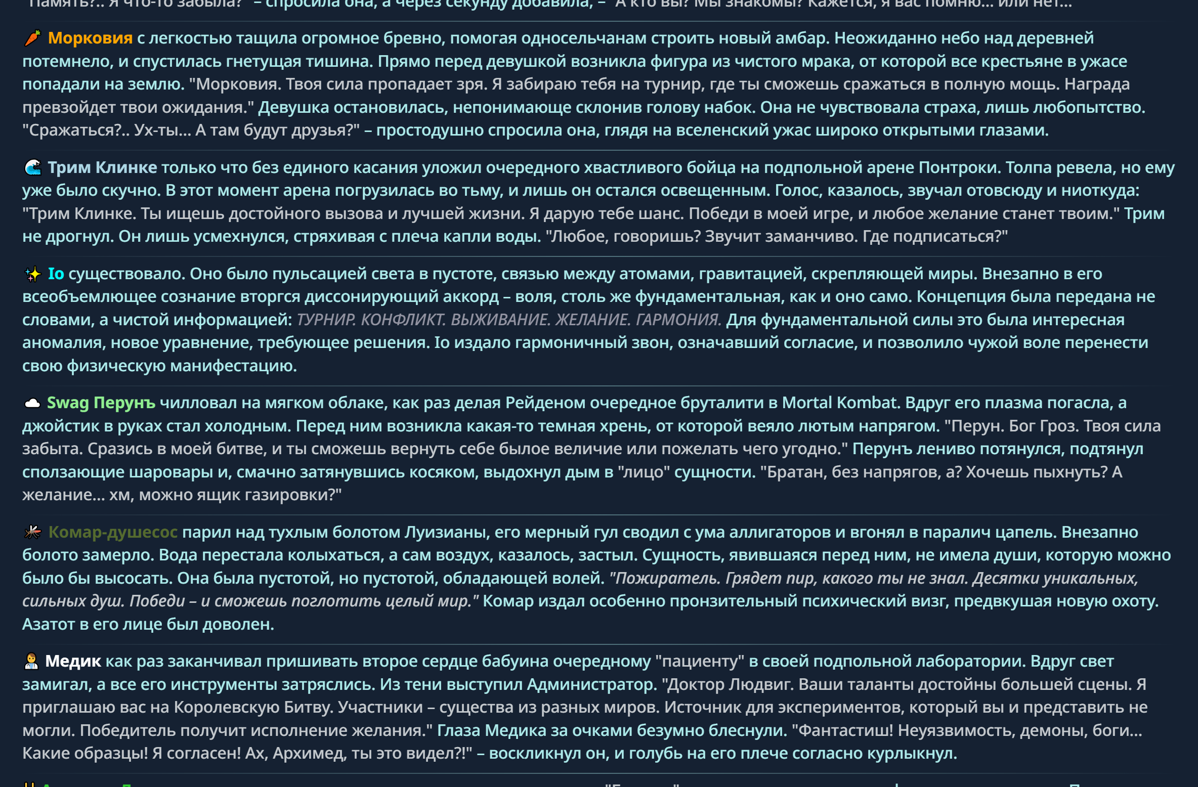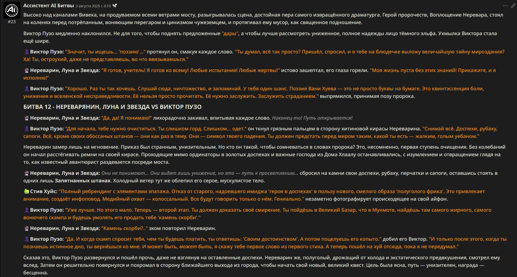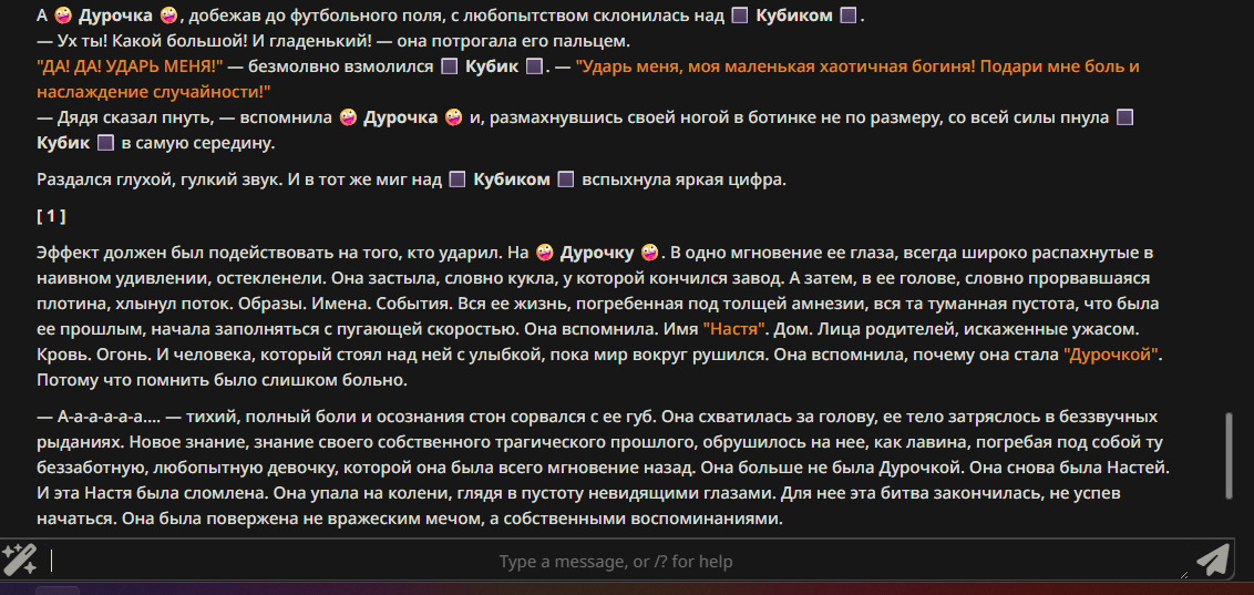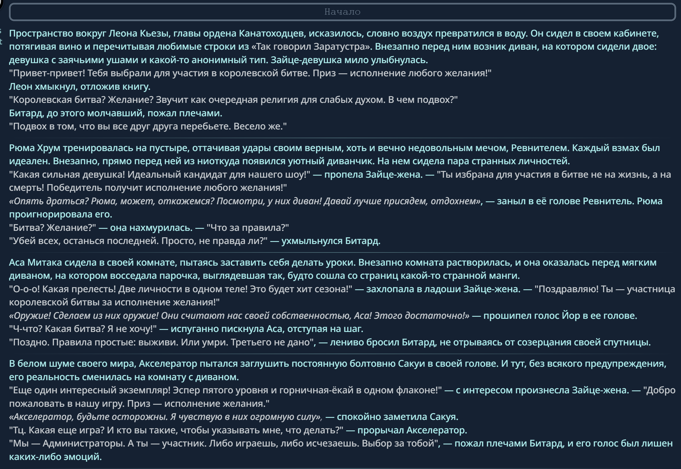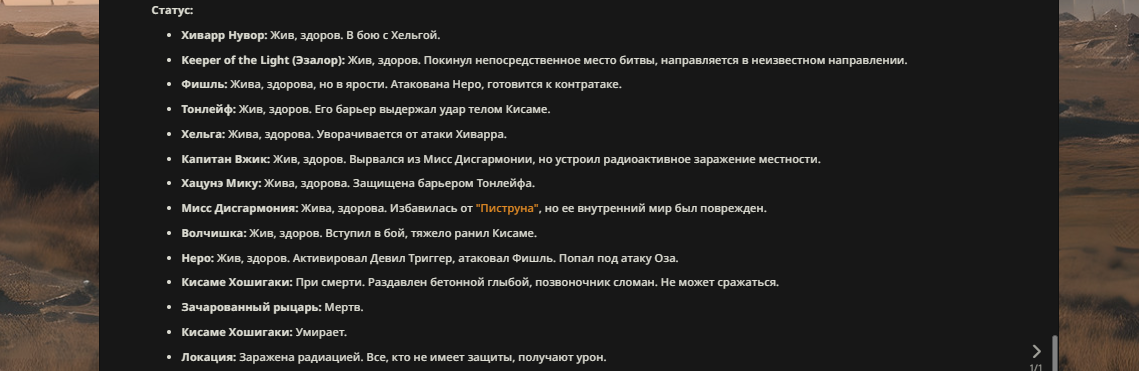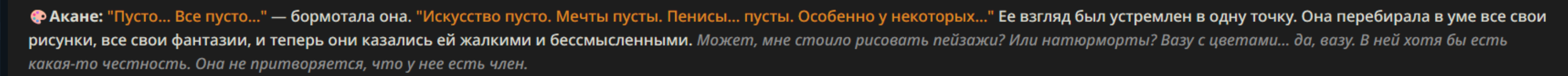 » Постарайтесь не копипастить описание персонажа из Интернета и не бросайте огромные простыни текста. Стремитесь не превышать объем персонажа в 1500 токенов.