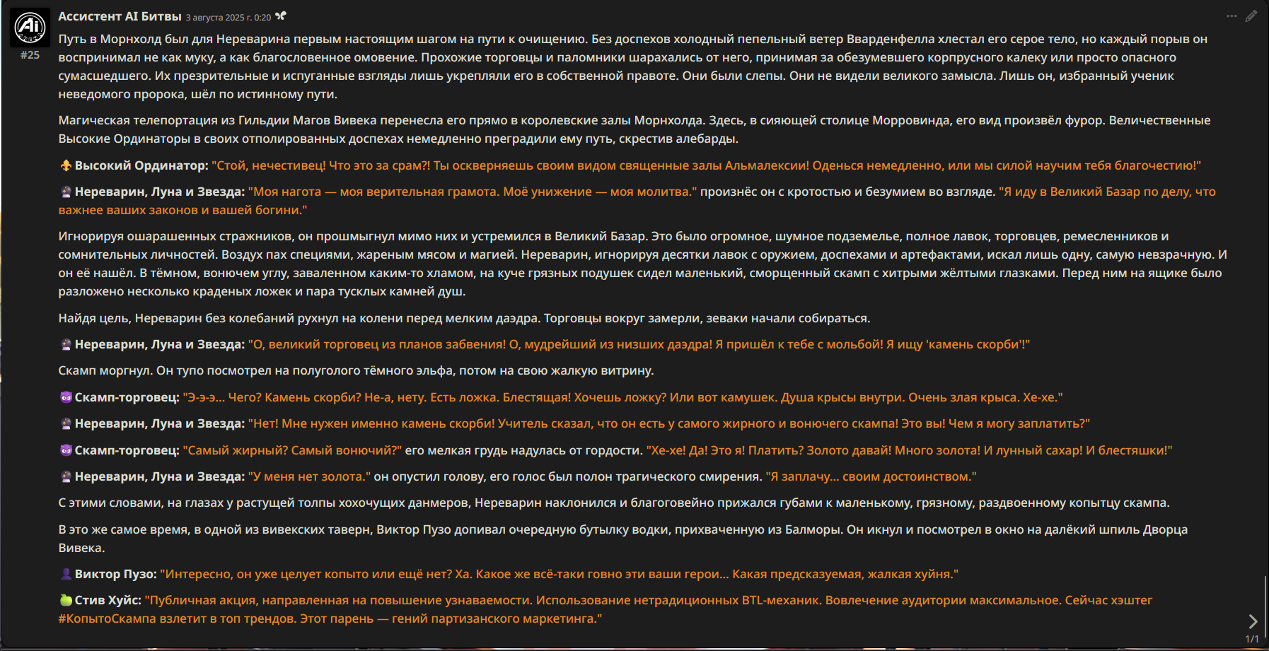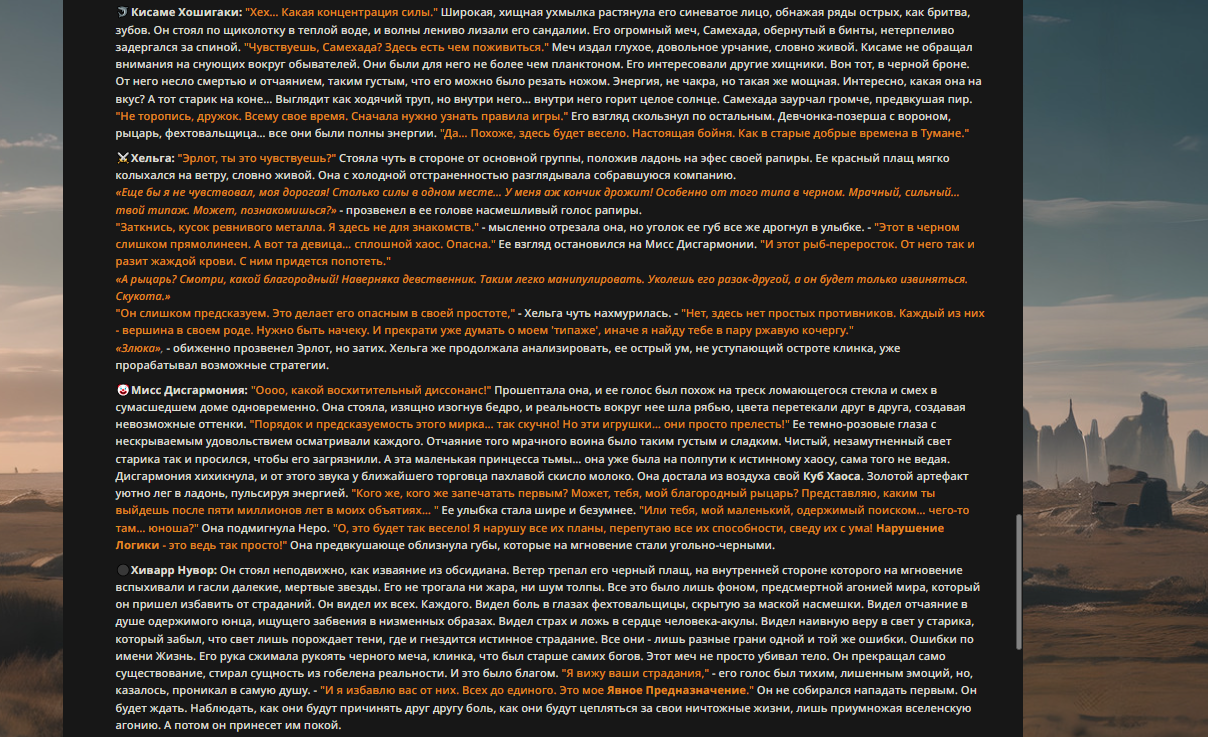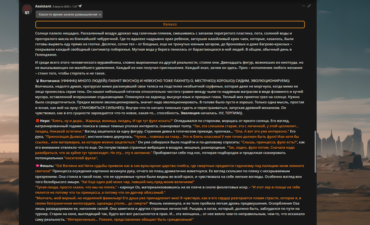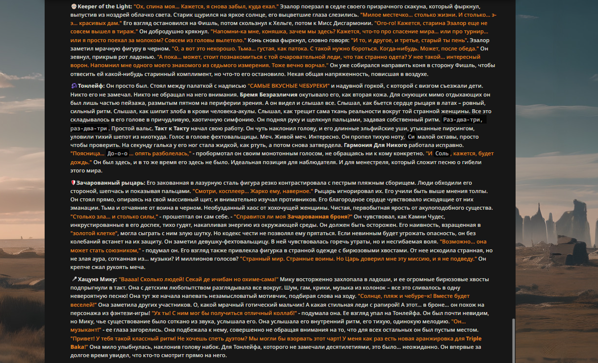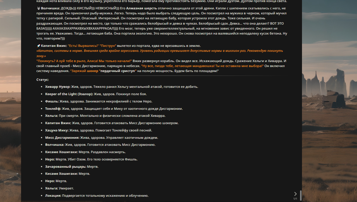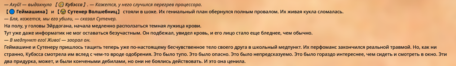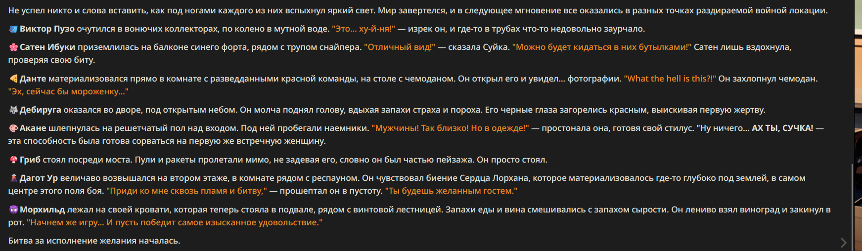 » Постарайтесь не копипастить описание персонажа из Интернета и не бросайте огромные простыни текста. Стремитесь не превышать объем персонажа в 1500 токенов.