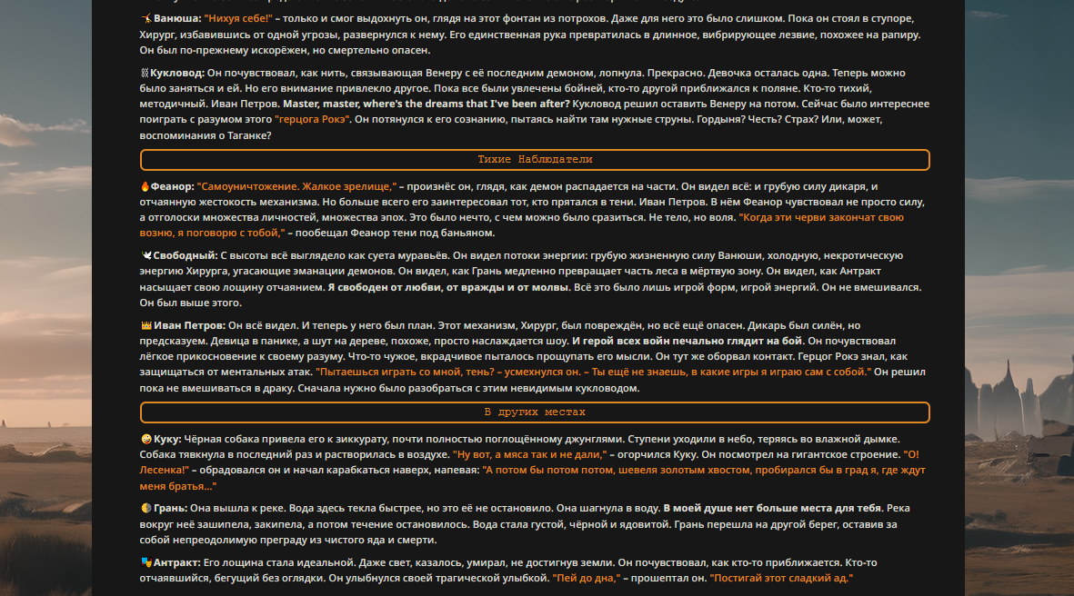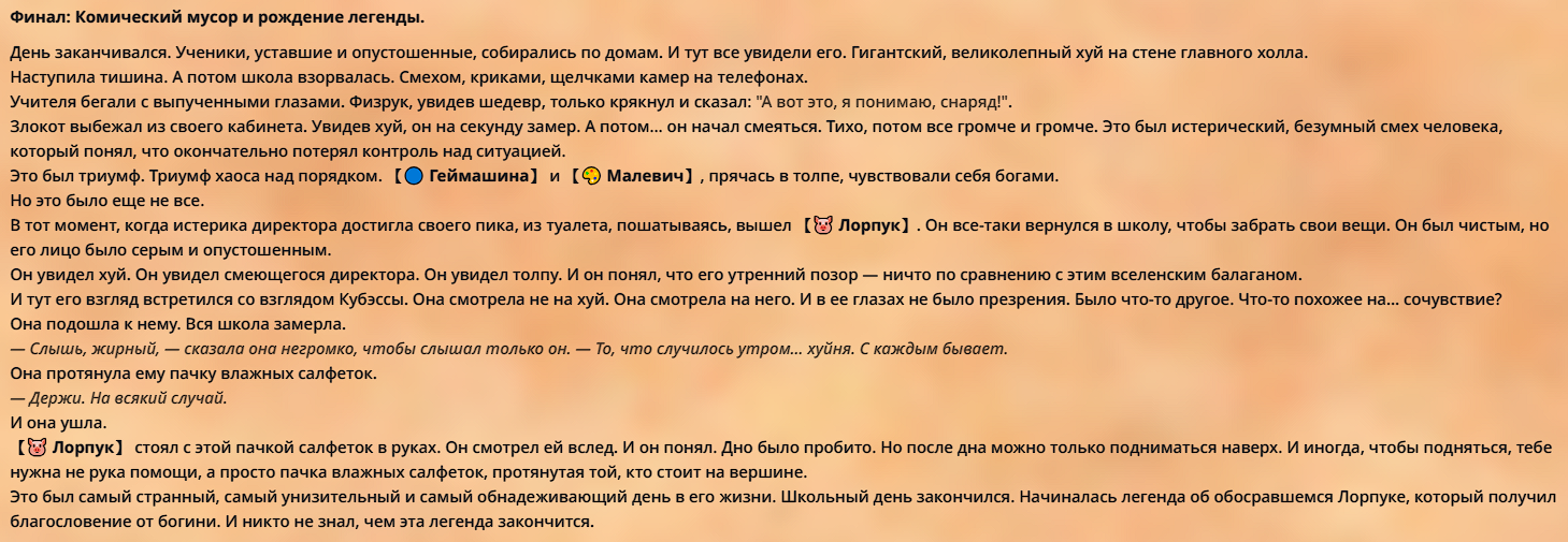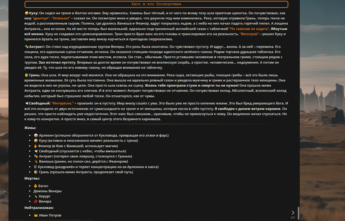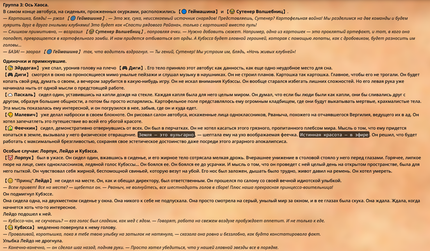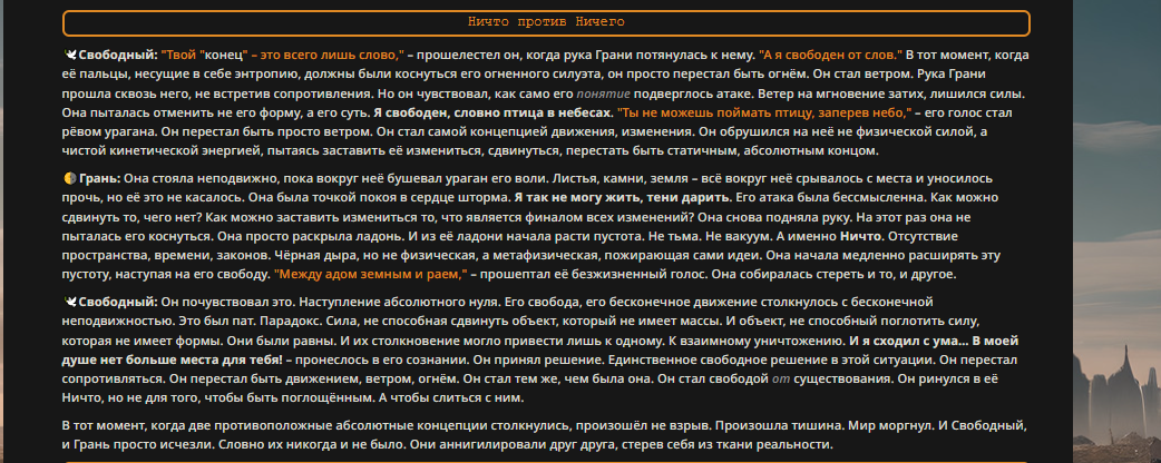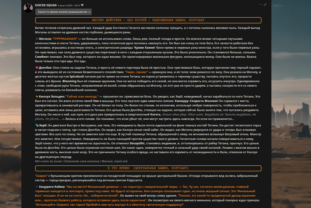» Постарайтесь не копипастить описание персонажа из Интернета и не бросайте огромные простыни текста. Стремитесь не превышать объем персонажа в 1500 токенов.