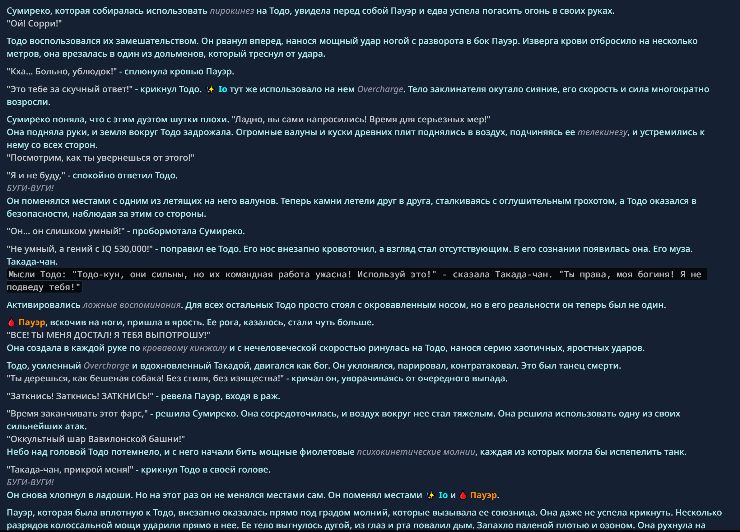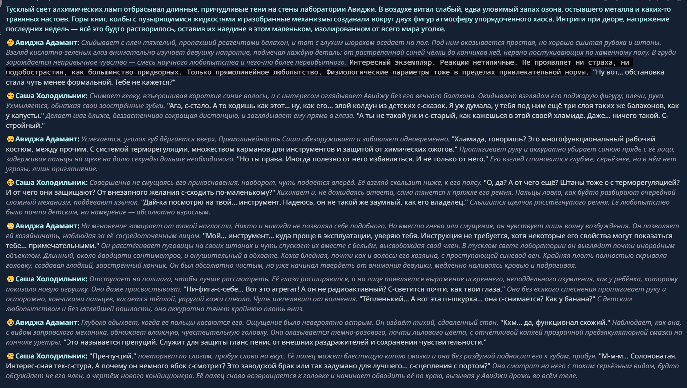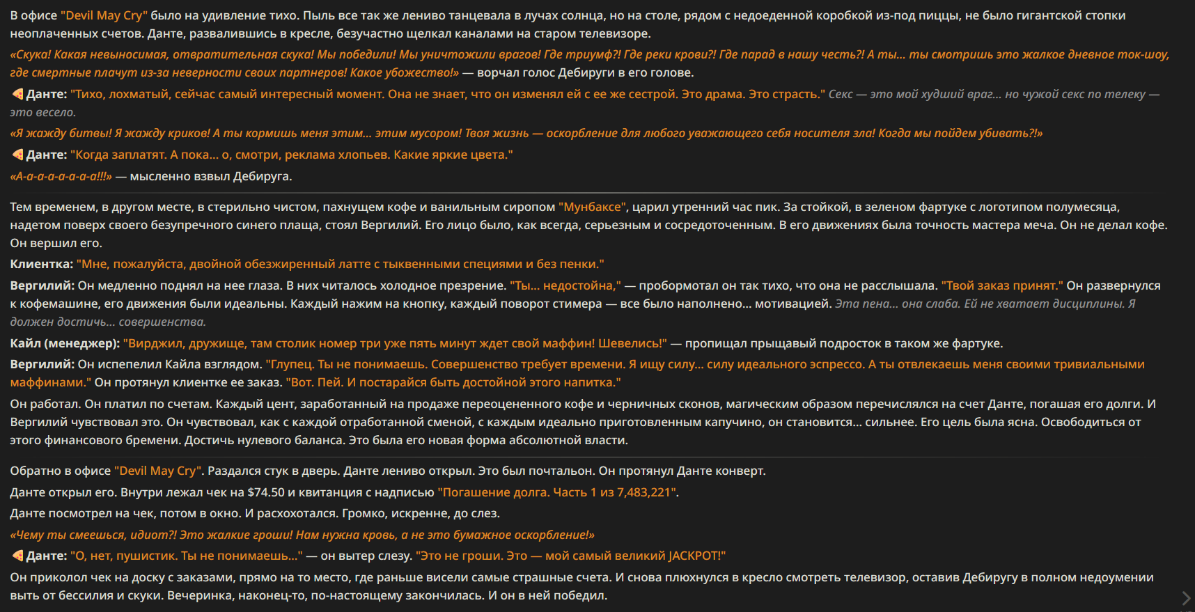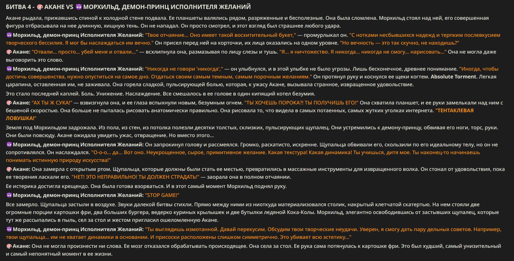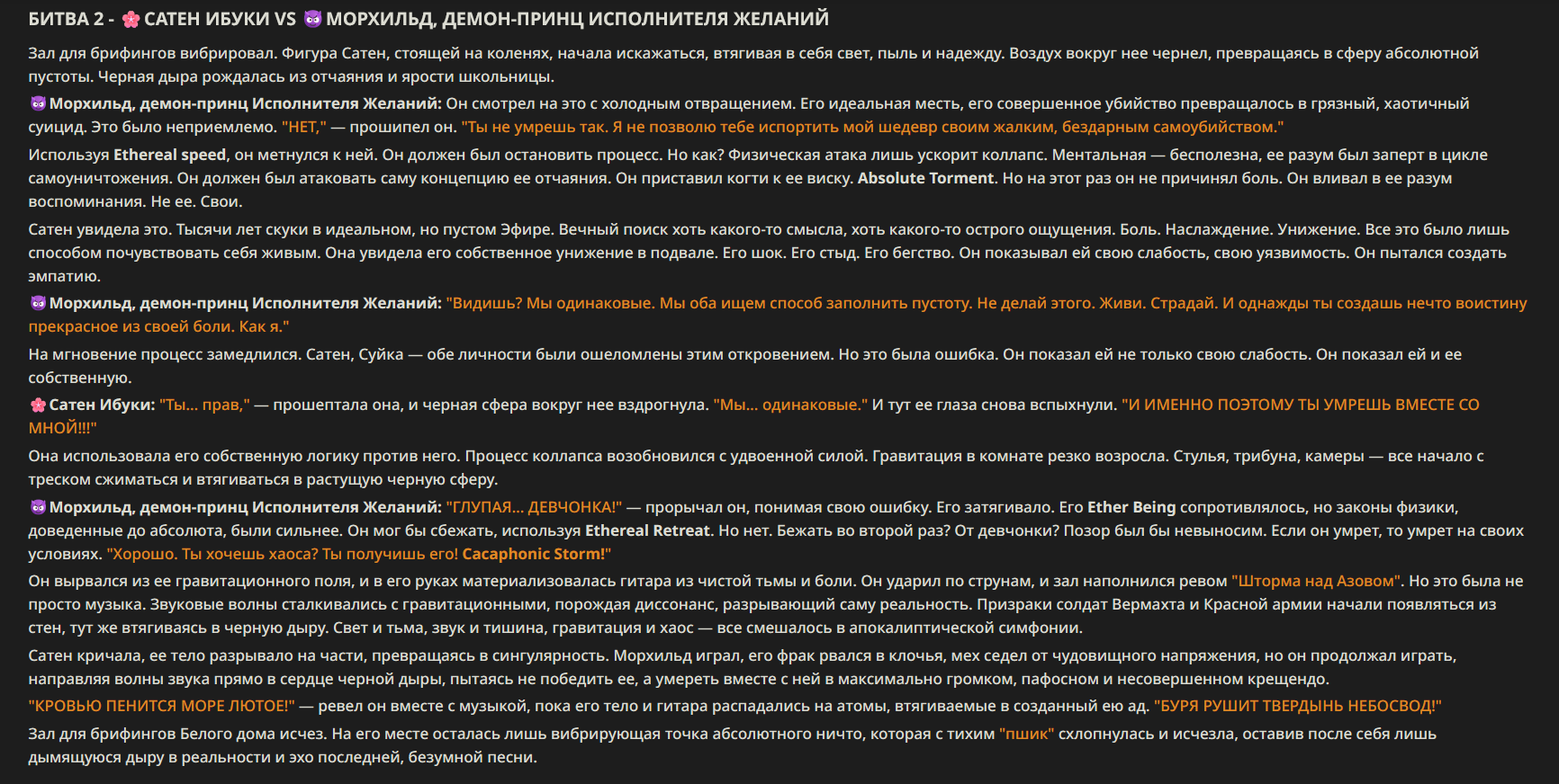 Кста двачую. Приятно удивлён. Чёто там Мори нормально так нахимичил. У меня при просьбе так долго продолжать обычно получается просто Войдишка режим.