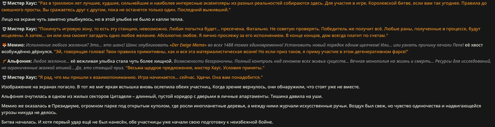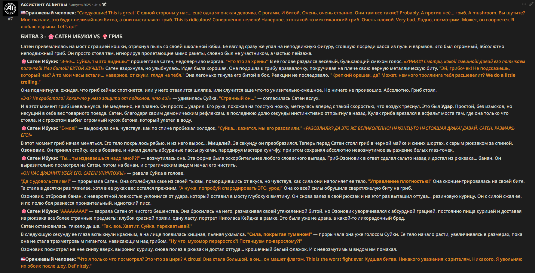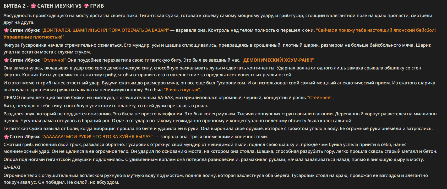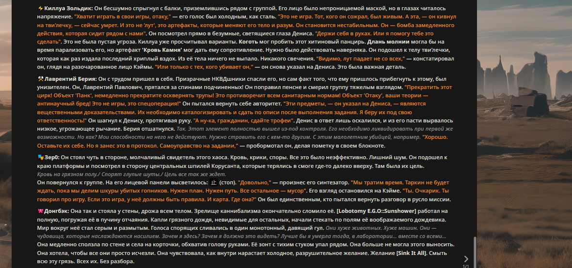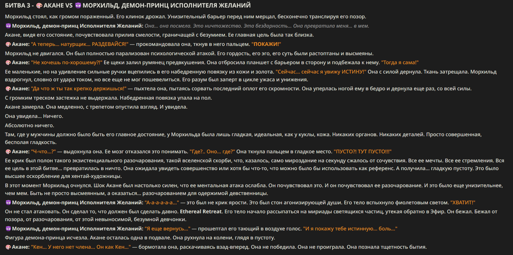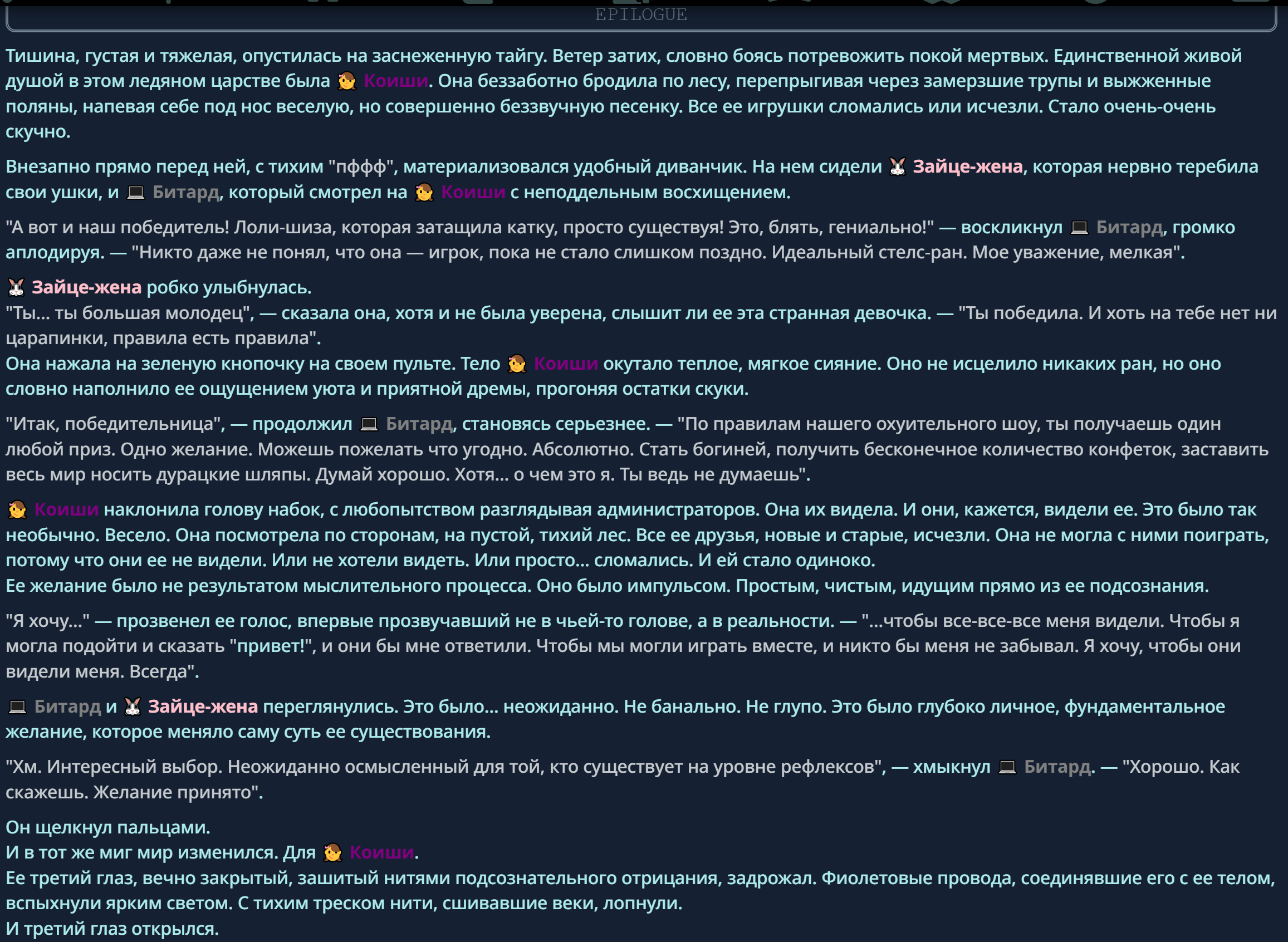 Кста двачую. Приятно удивлён. Чёто там Мори нормально так нахимичил. У меня при просьбе так долго продолжать обычно получается просто Войдишка режим.