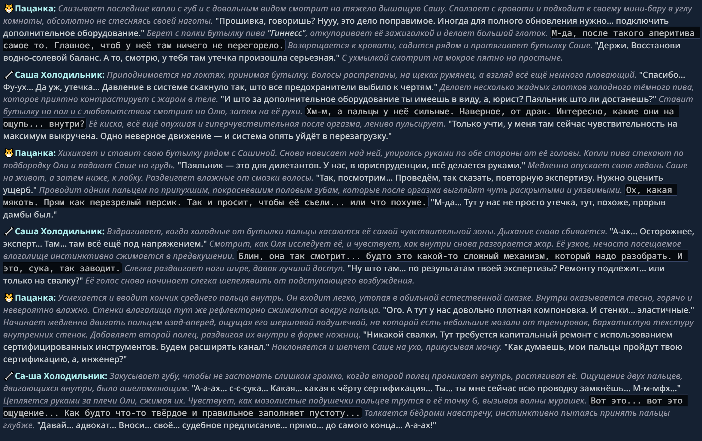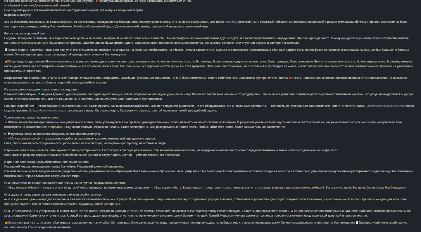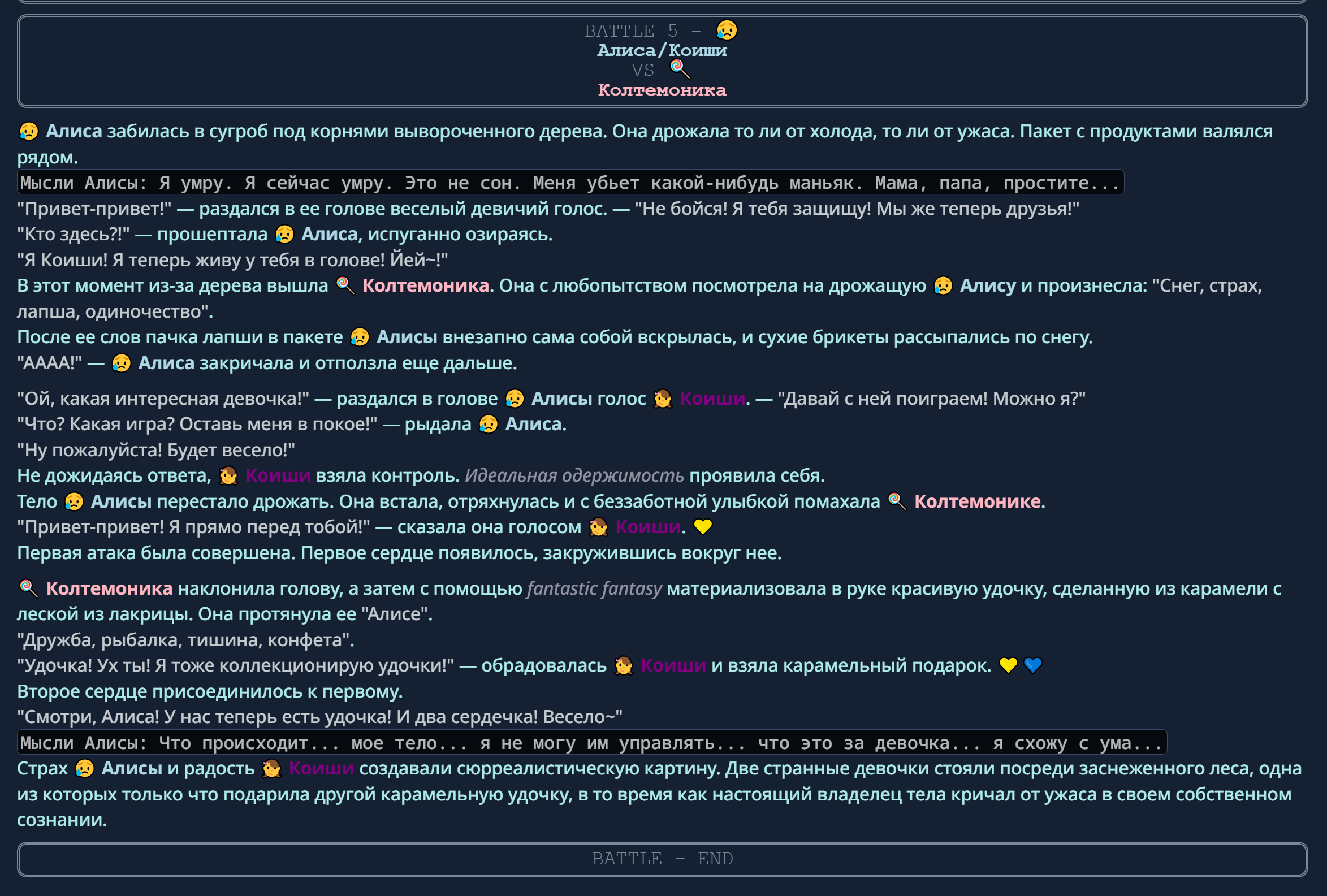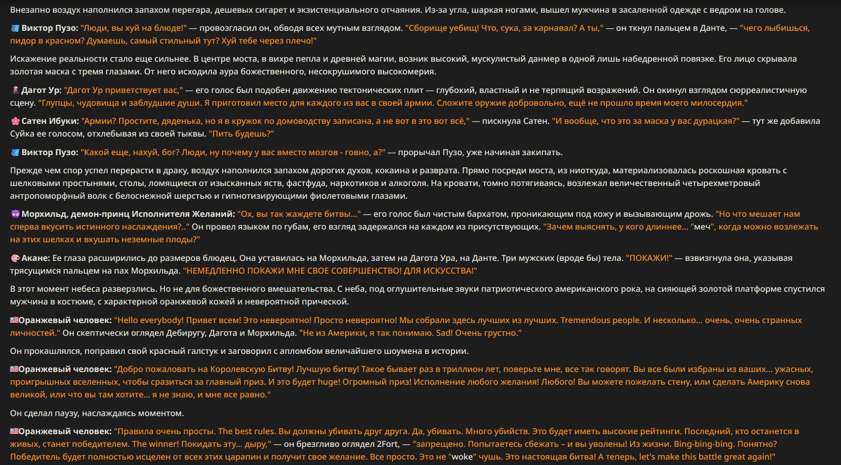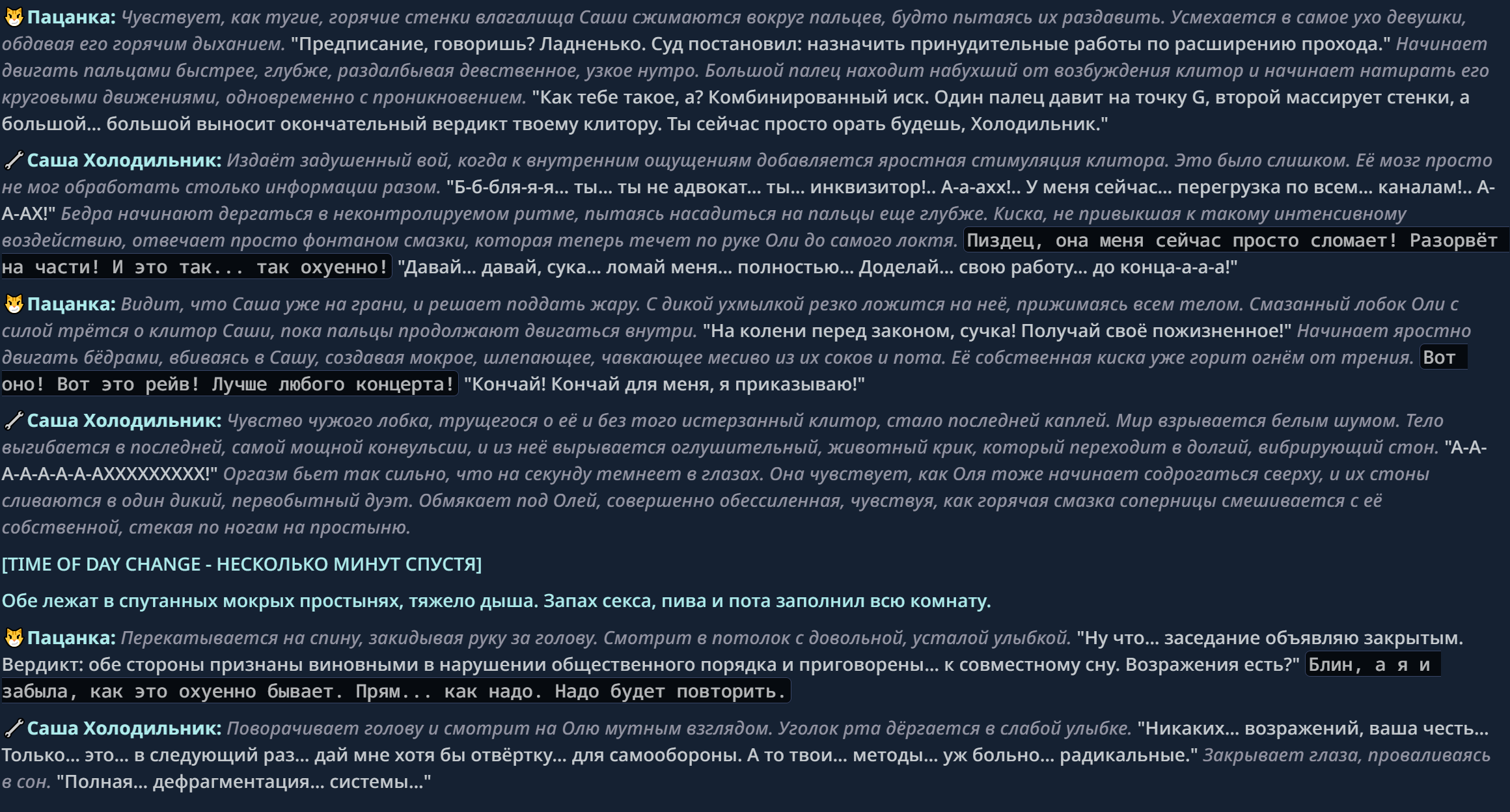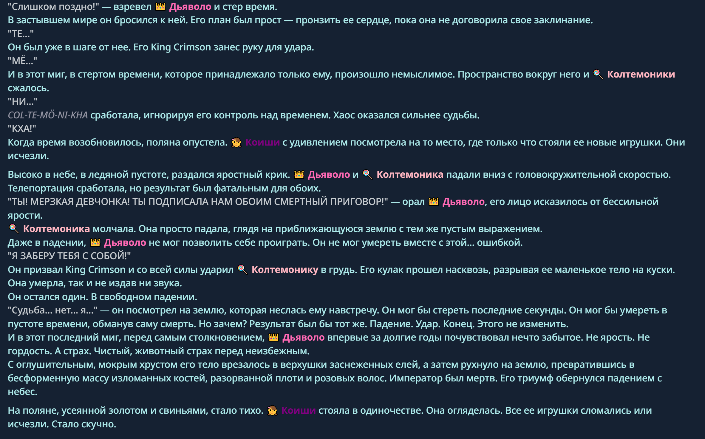 Кста двачую. Приятно удивлён. Чёто там Мори нормально так нахимичил. У меня при просьбе так долго продолжать обычно получается просто Войдишка режим.