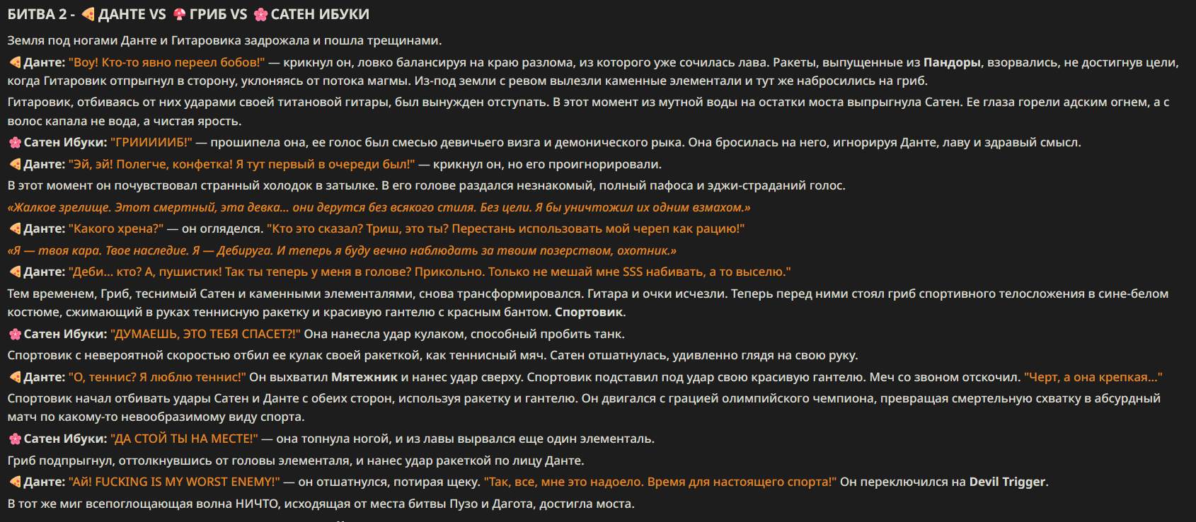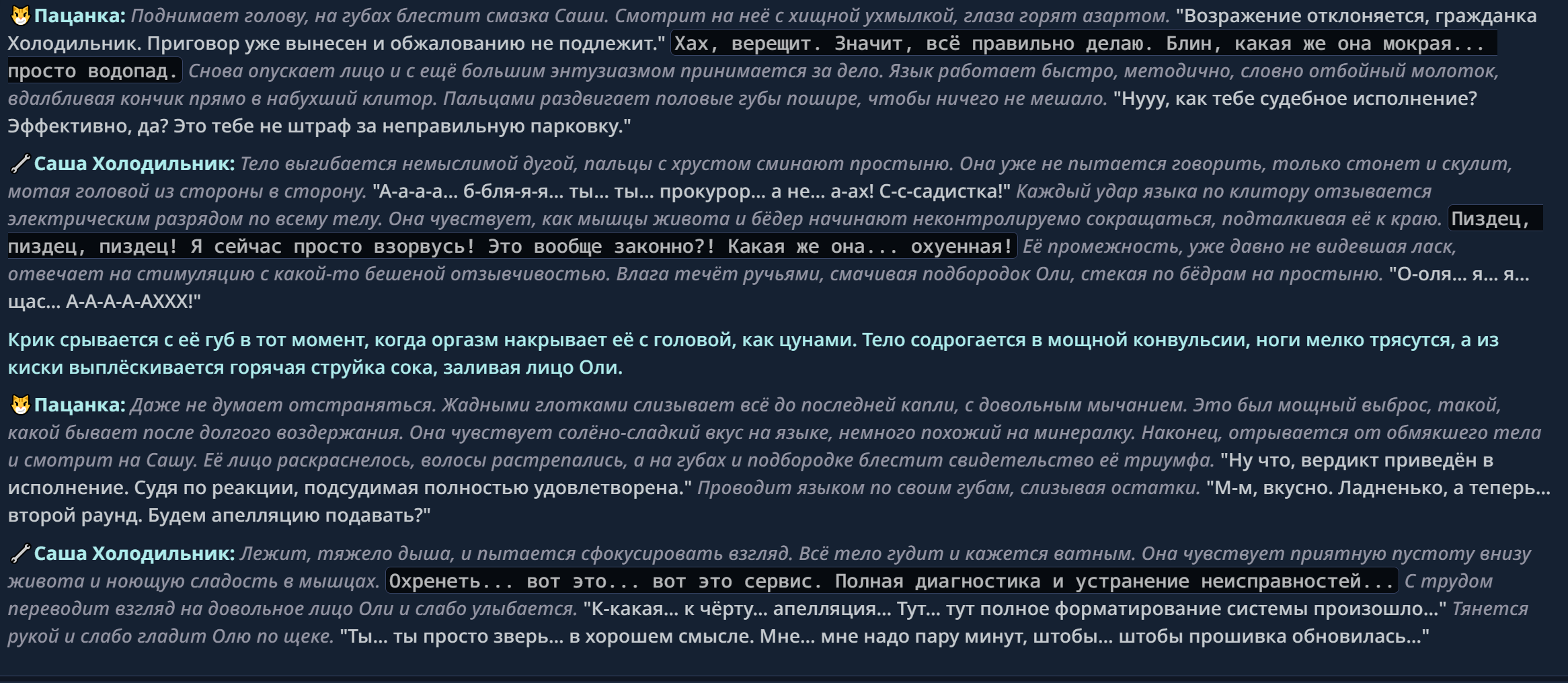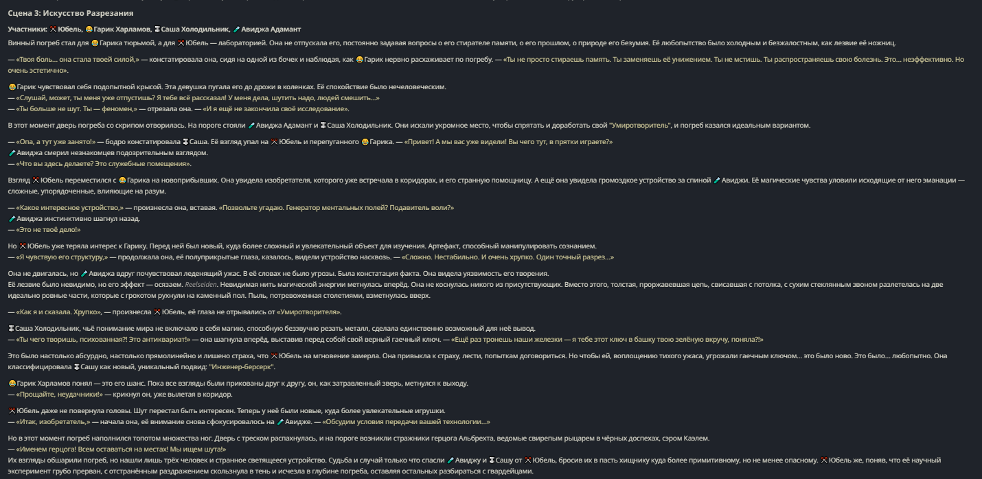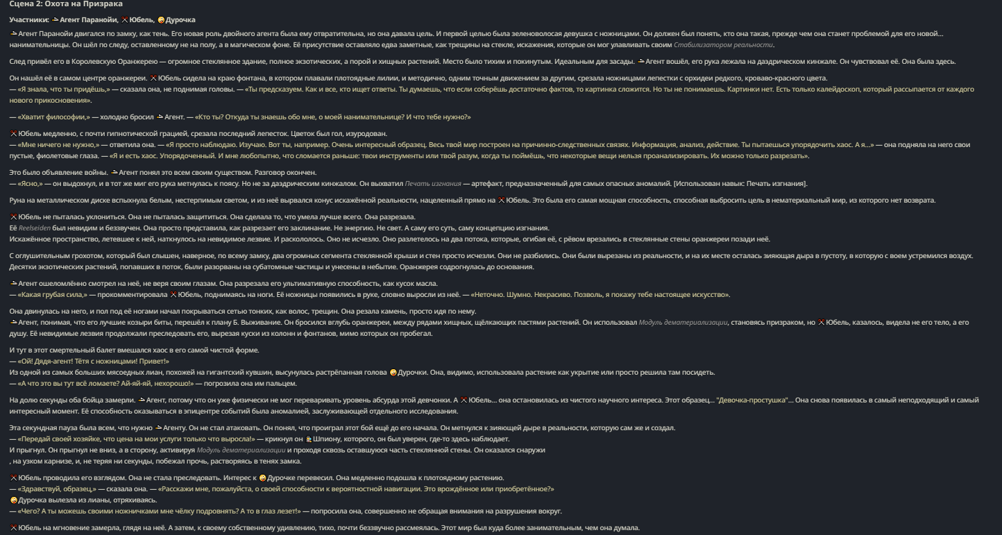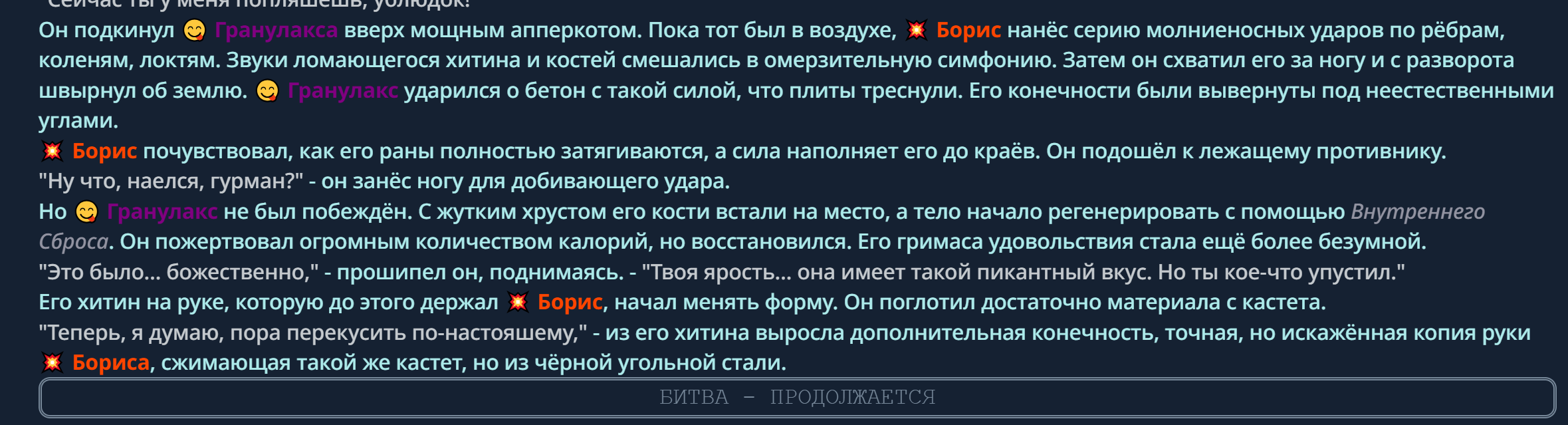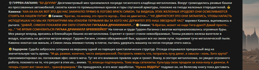 Кста двачую. Приятно удивлён. Чёто там Мори нормально так нахимичил. У меня при просьбе так долго продолжать обычно получается просто Войдишка режим.