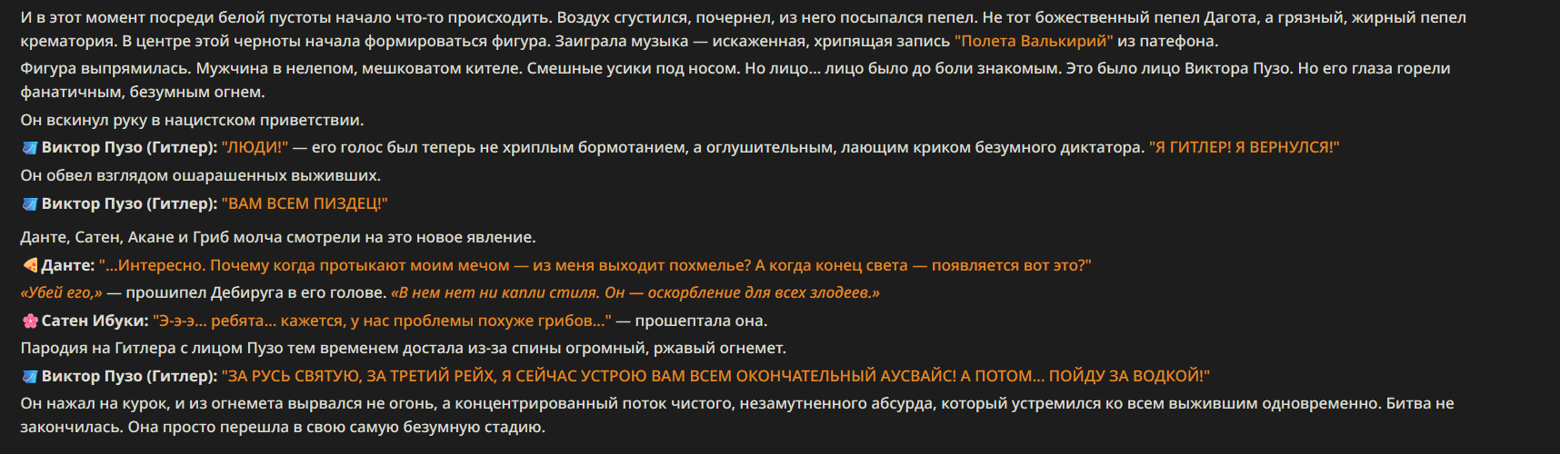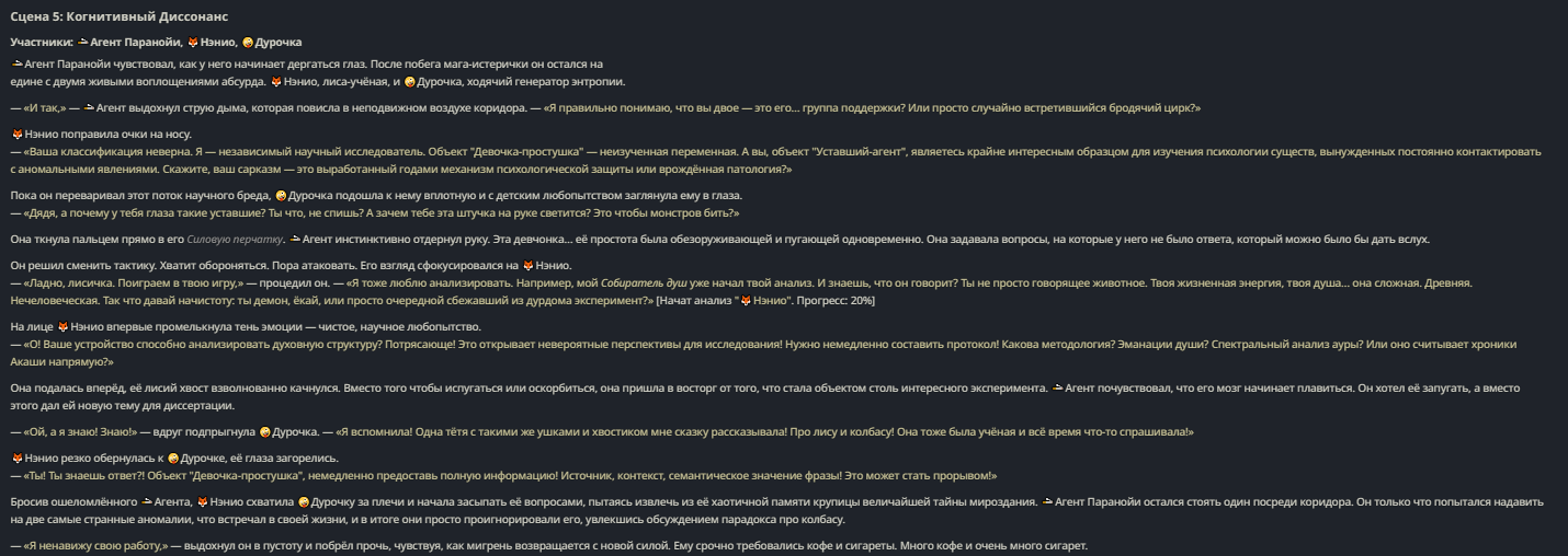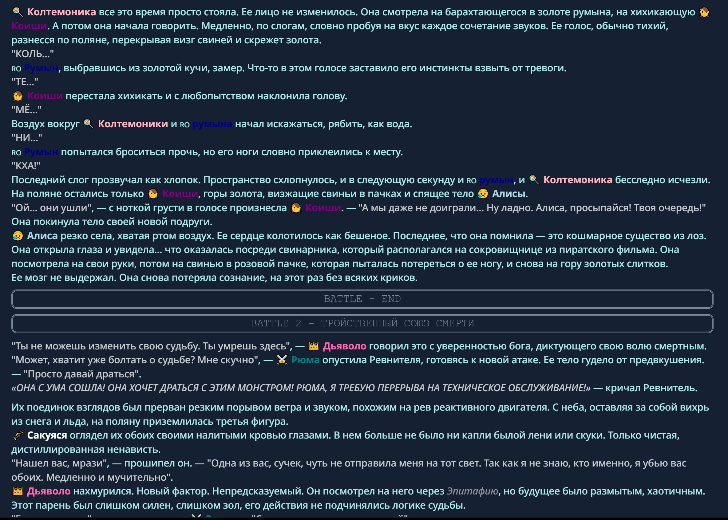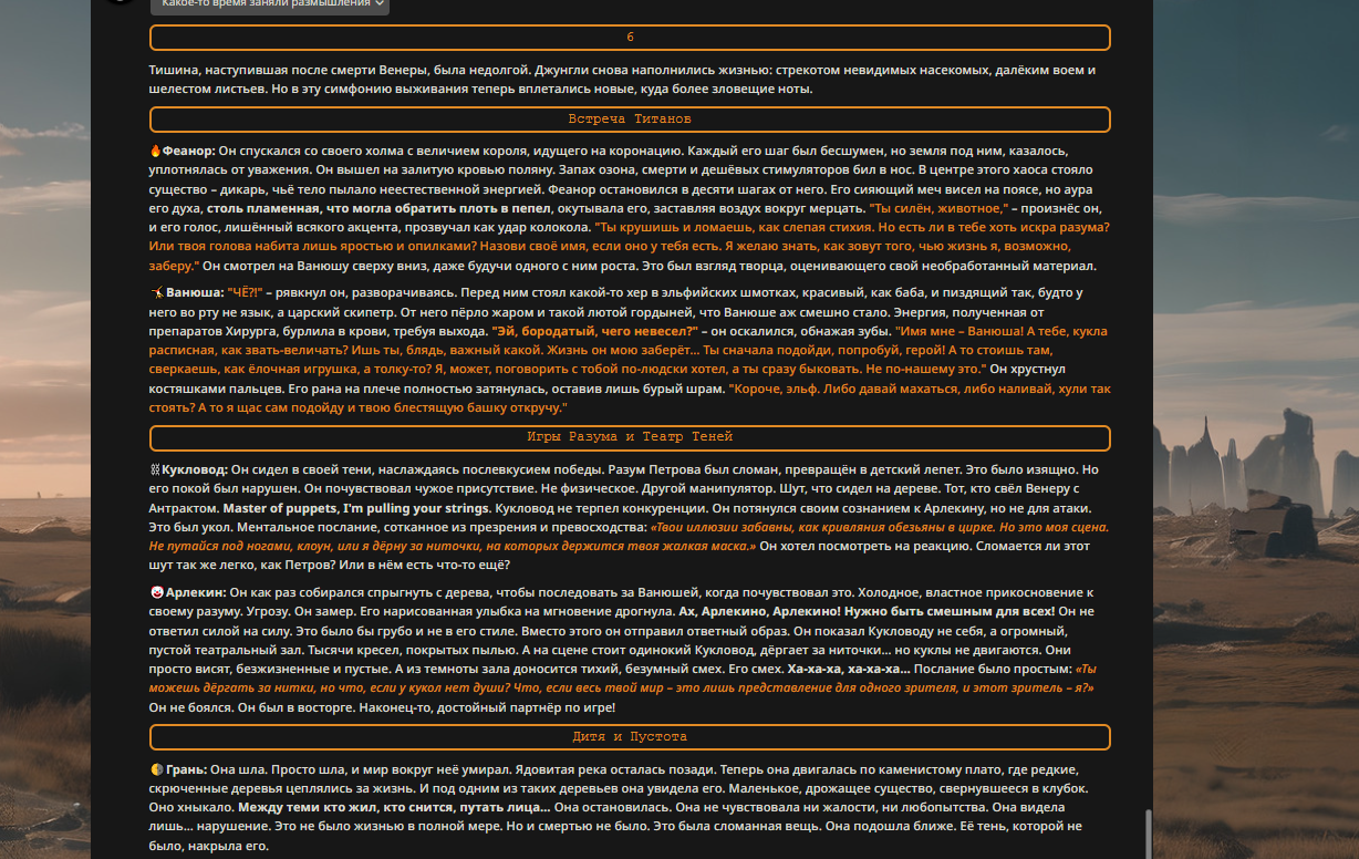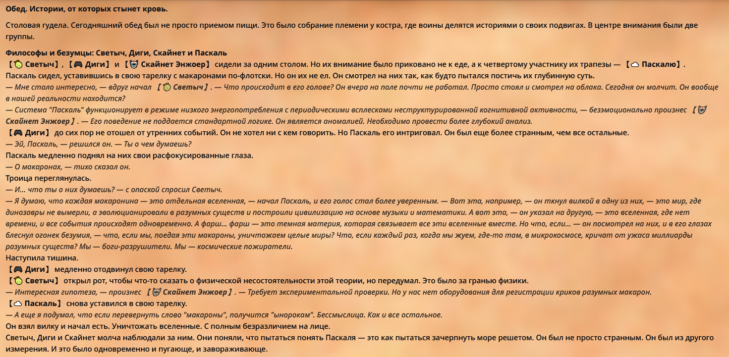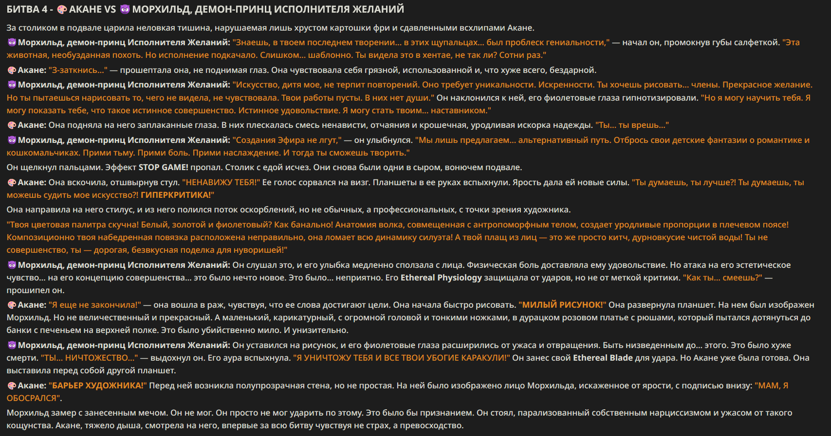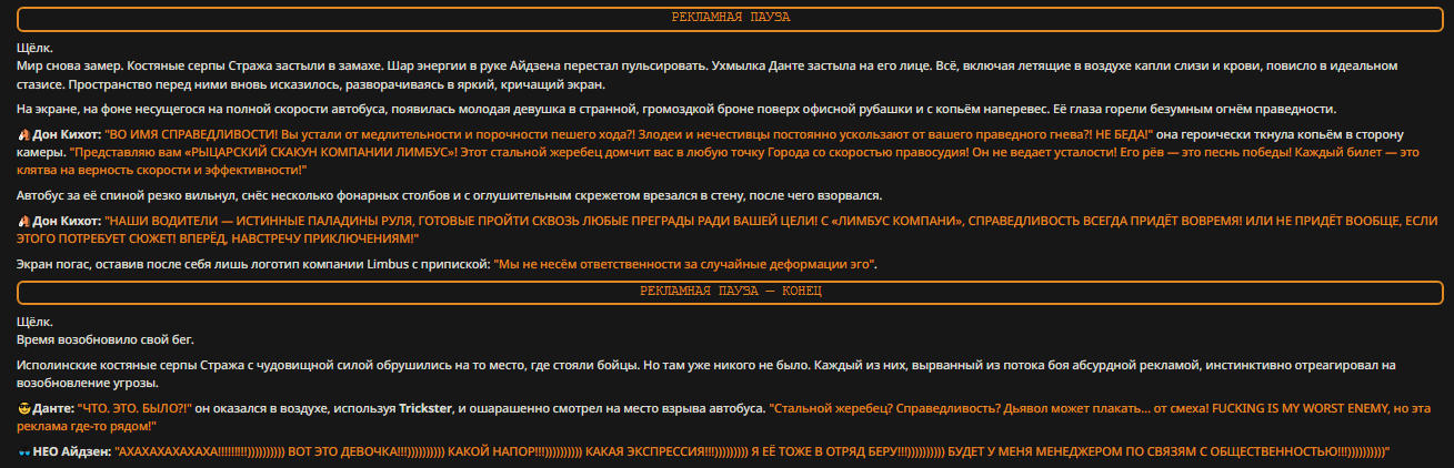 Кста двачую. Приятно удивлён. Чёто там Мори нормально так нахимичил. У меня при просьбе так долго продолжать обычно получается просто Войдишка режим.