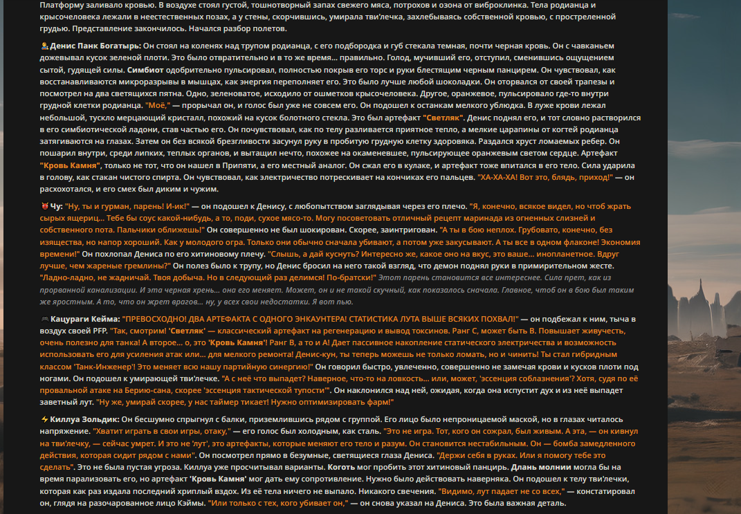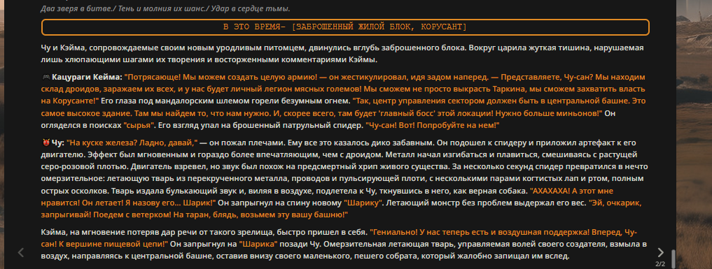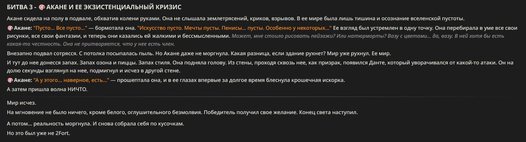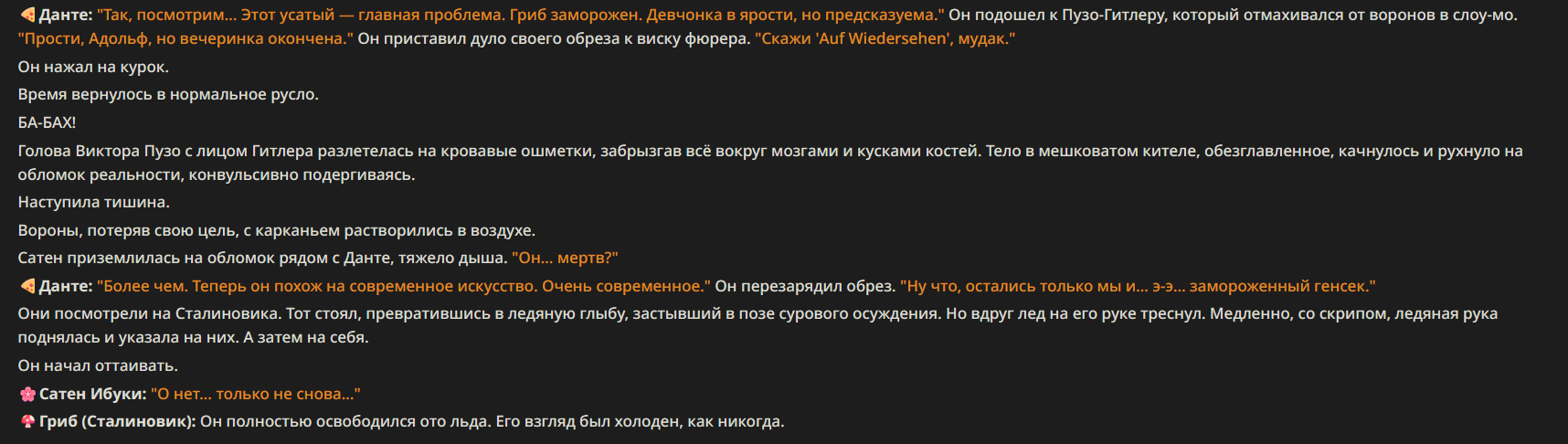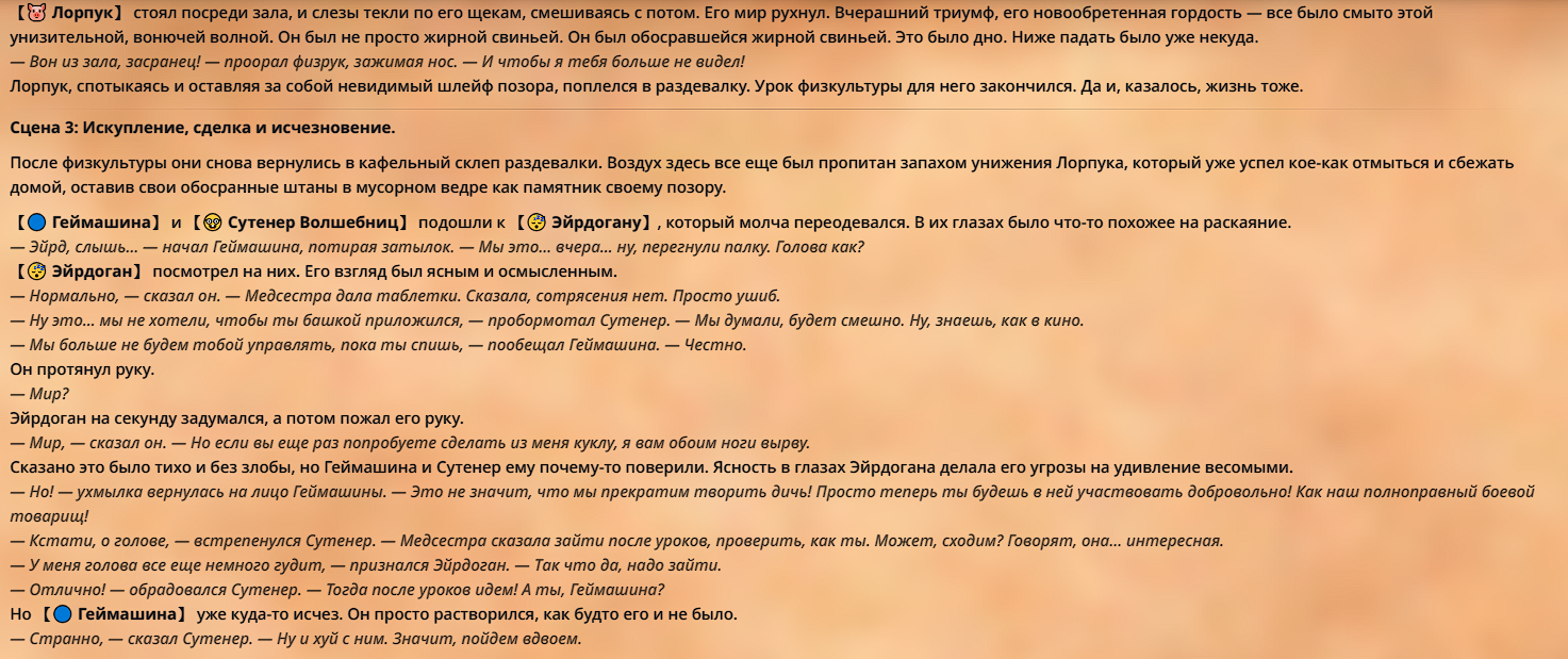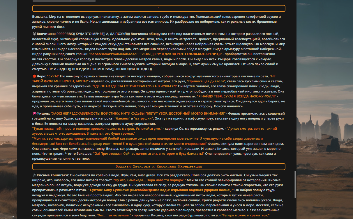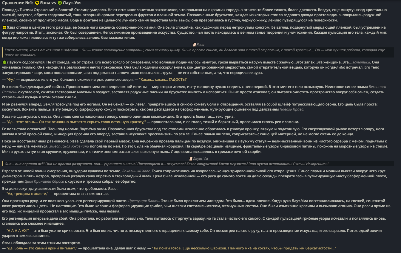 Кста двачую. Приятно удивлён. Чёто там Мори нормально так нахимичил. У меня при просьбе так долго продолжать обычно получается просто Войдишка режим.