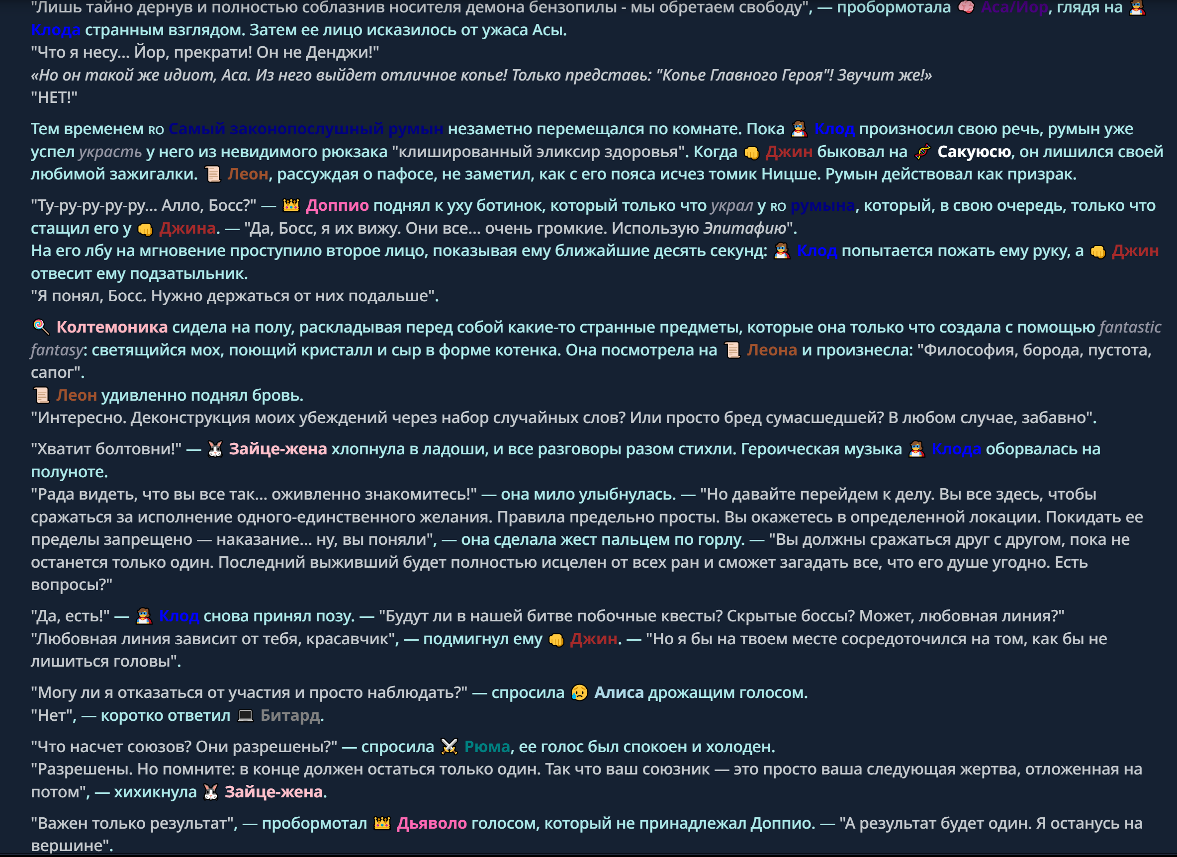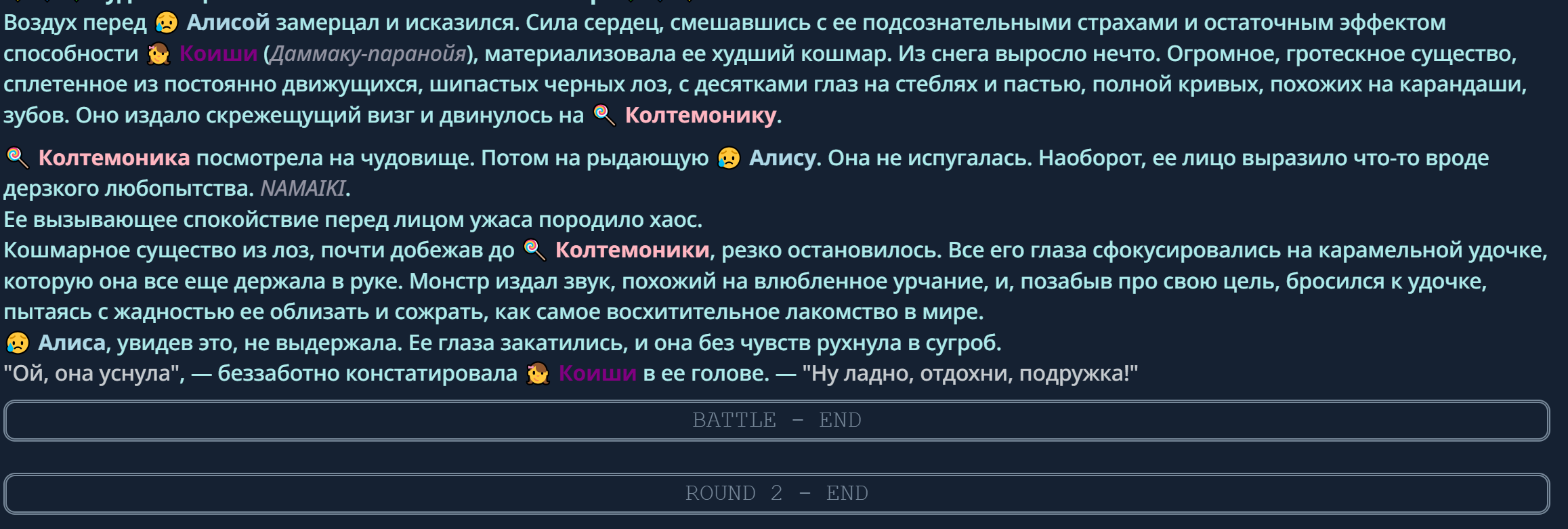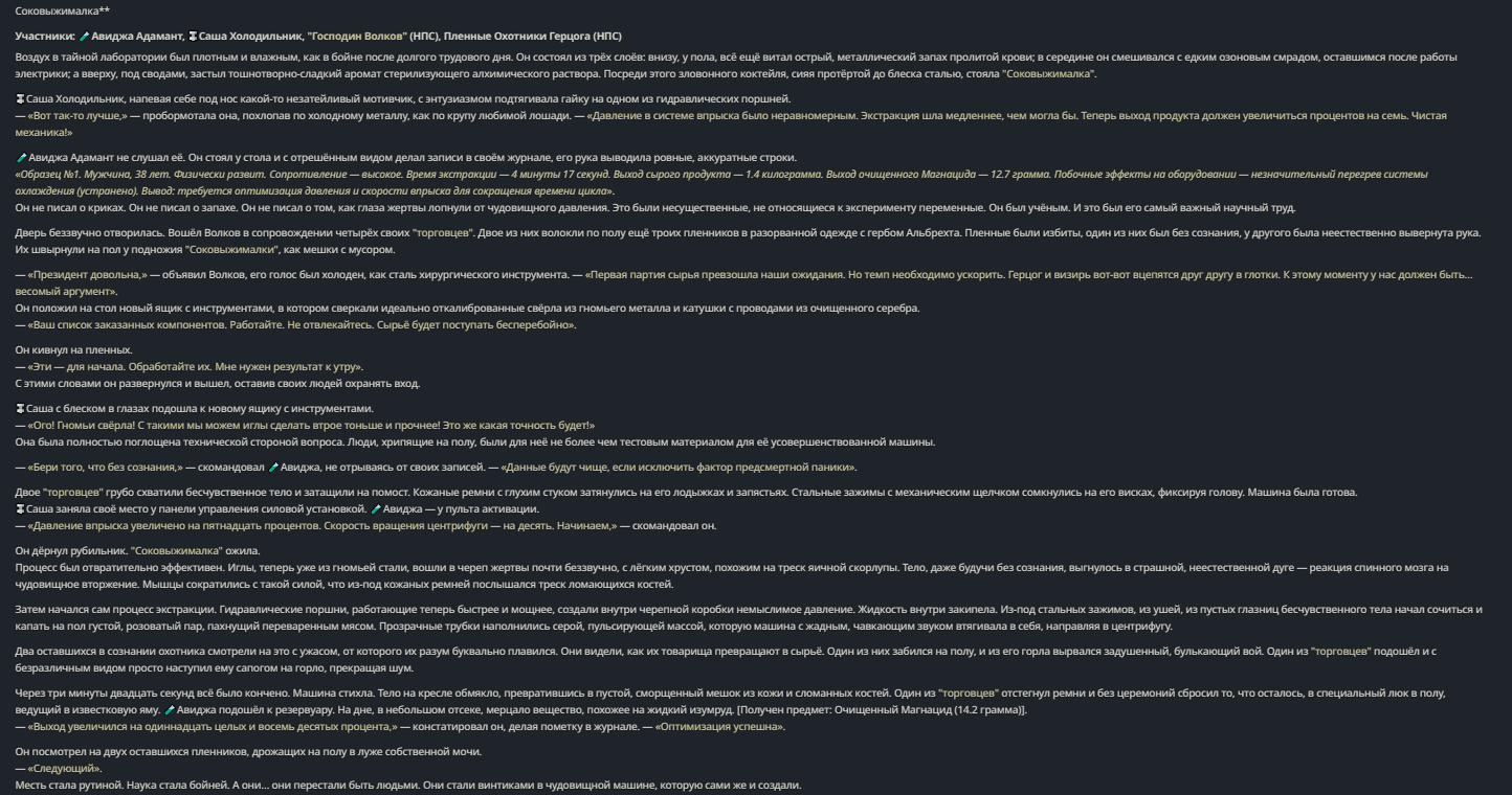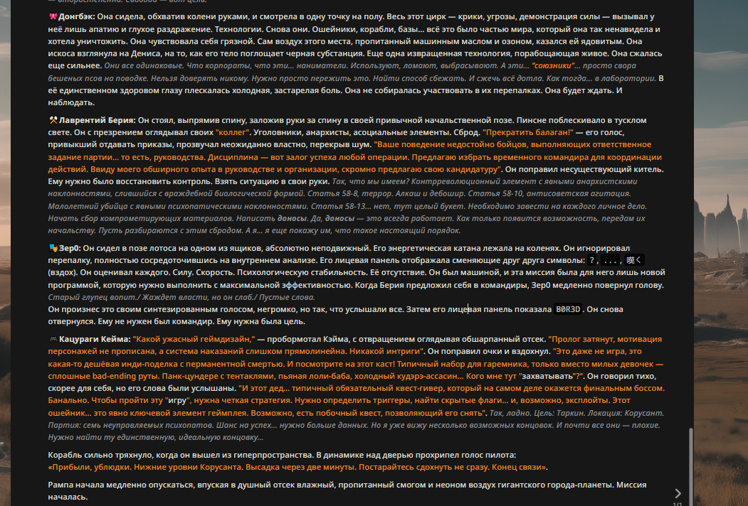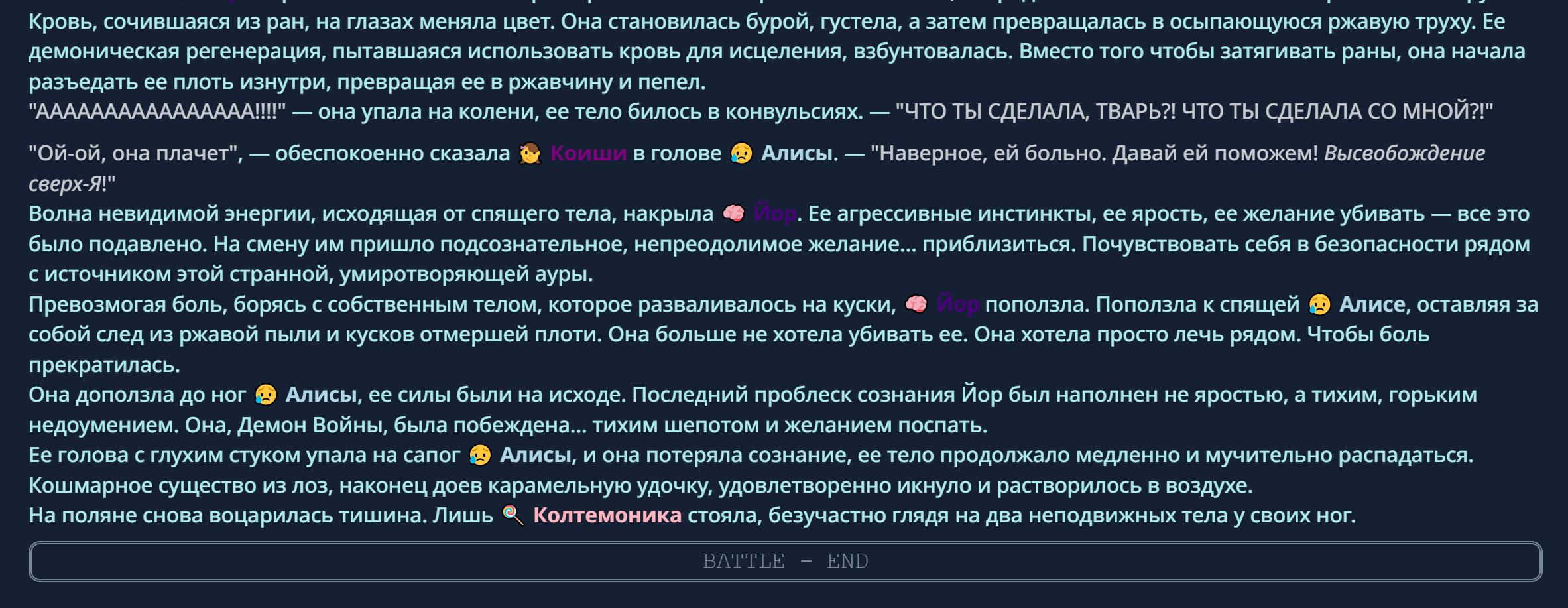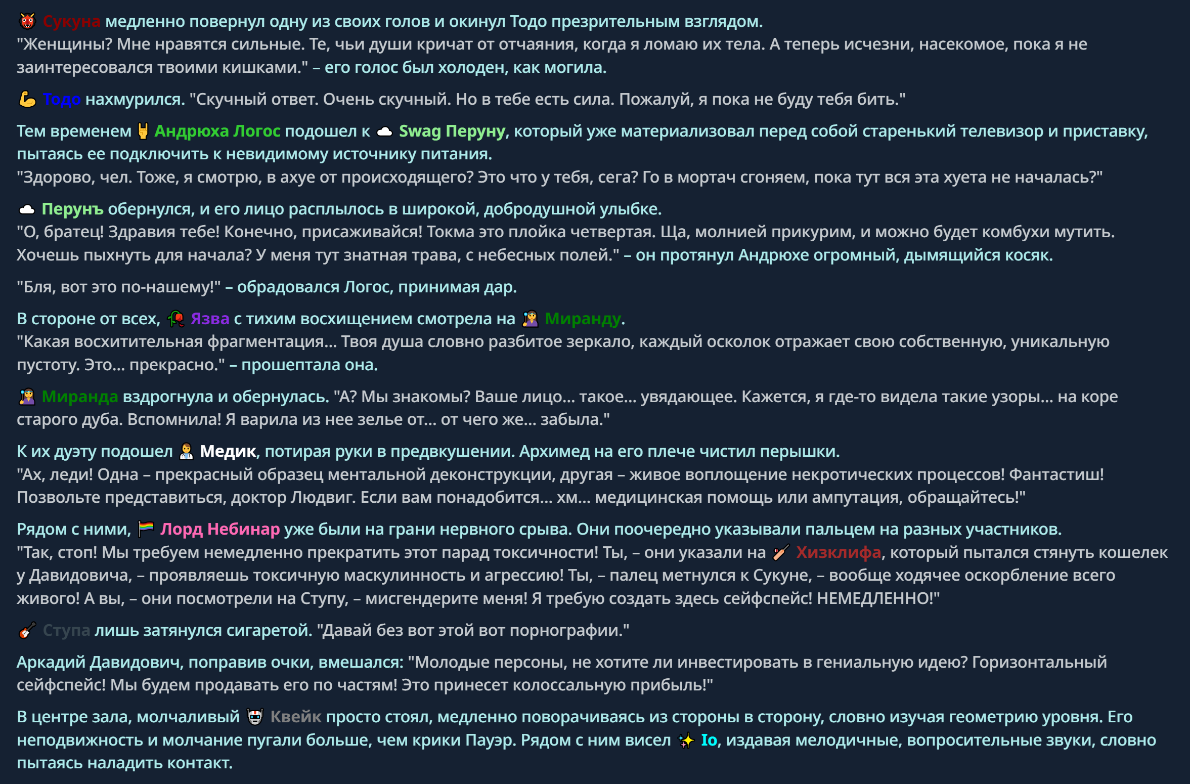Кста двачую. Приятно удивлён. Чёто там Мори нормально так нахимичил. У меня при просьбе так долго продолжать обычно получается просто Войдишка режим.