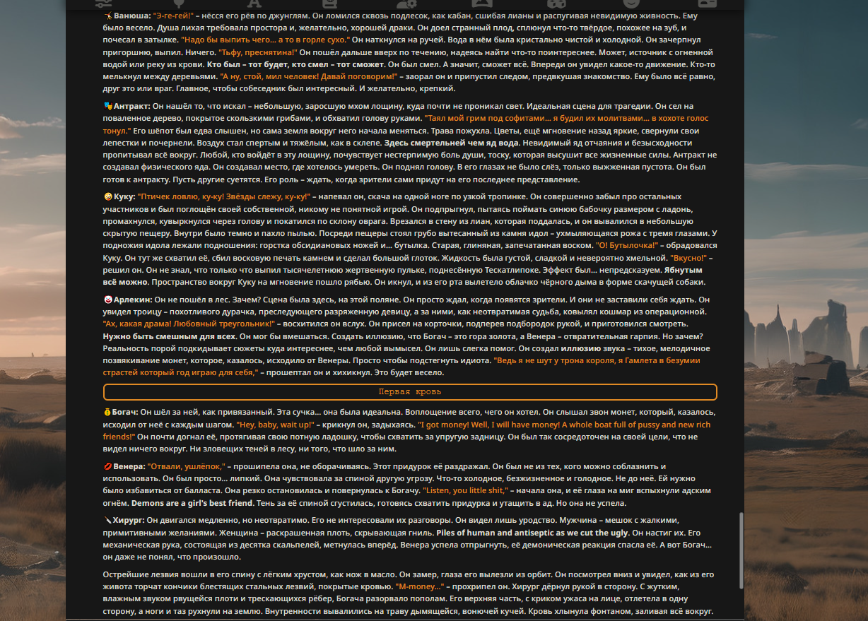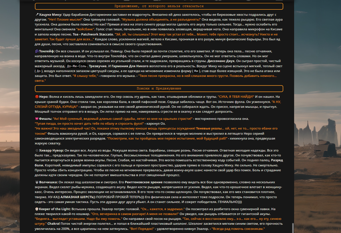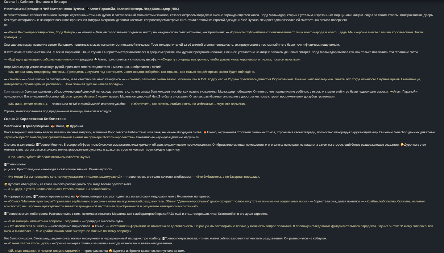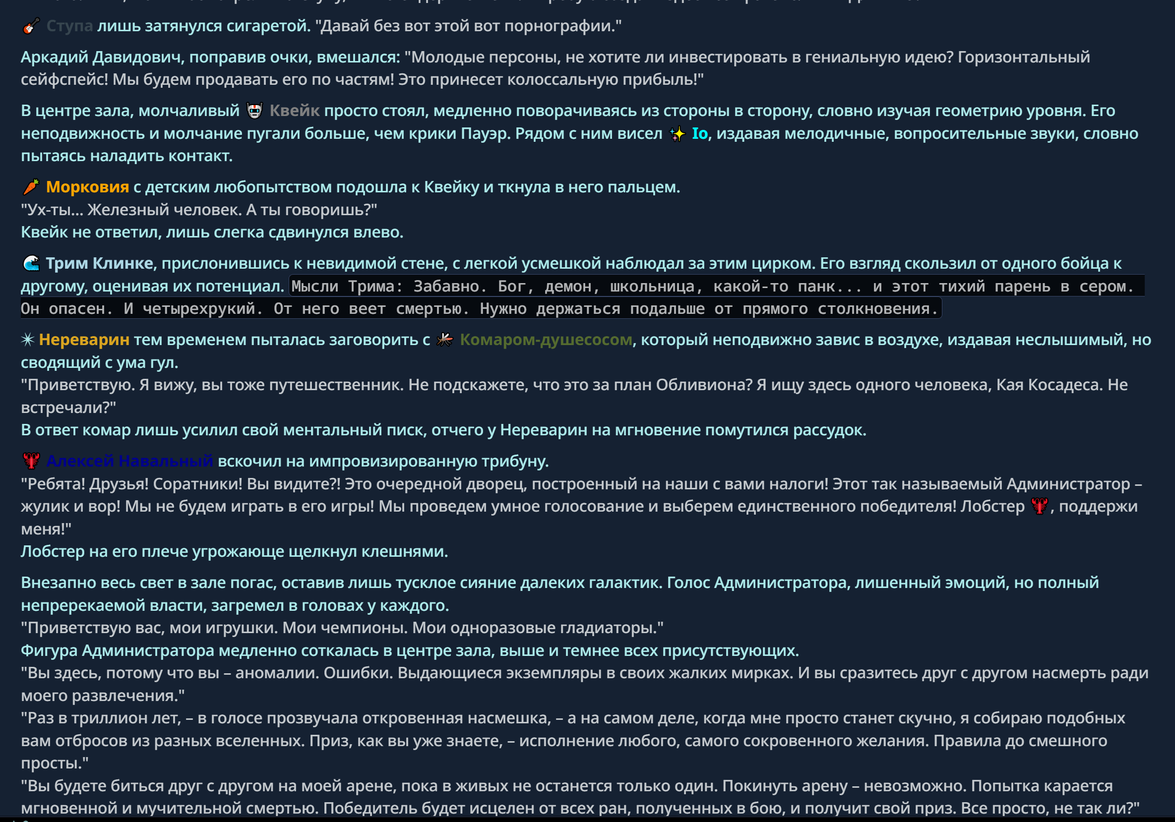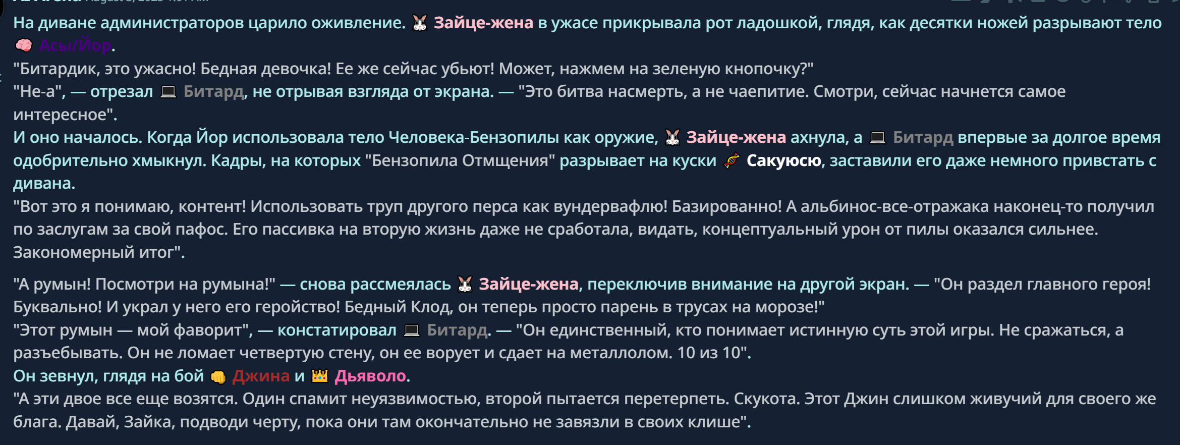 Кста двачую. Приятно удивлён. Чёто там Мори нормально так нахимичил. У меня при просьбе так долго продолжать обычно получается просто Войдишка режим.