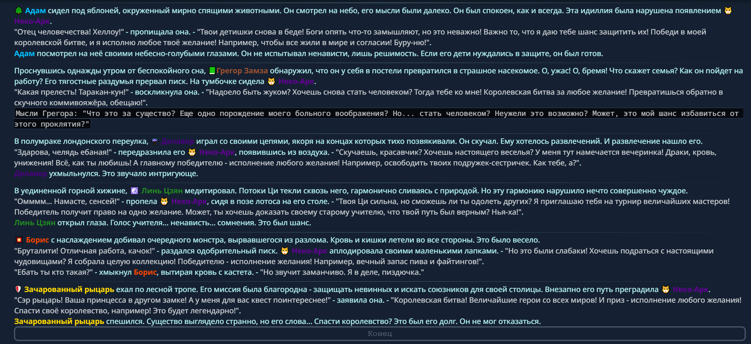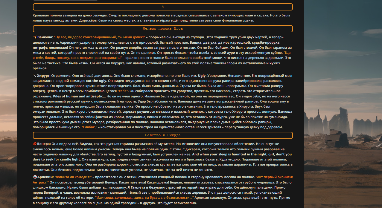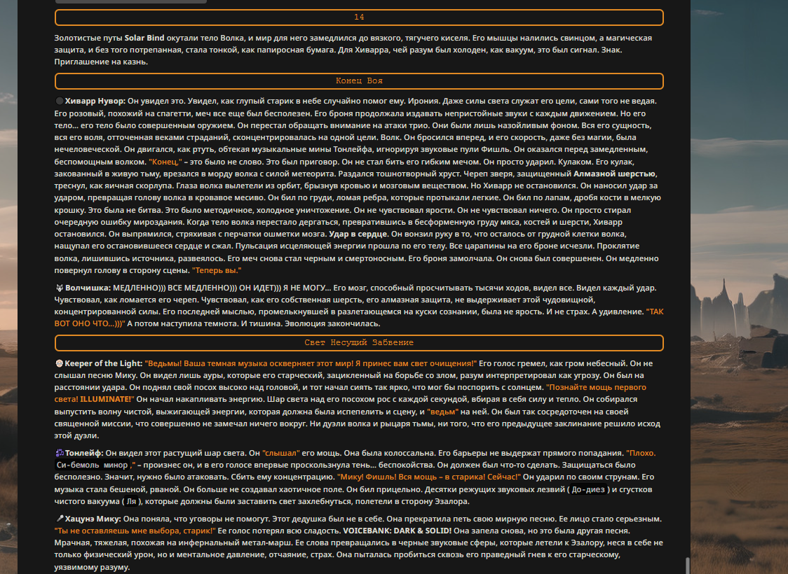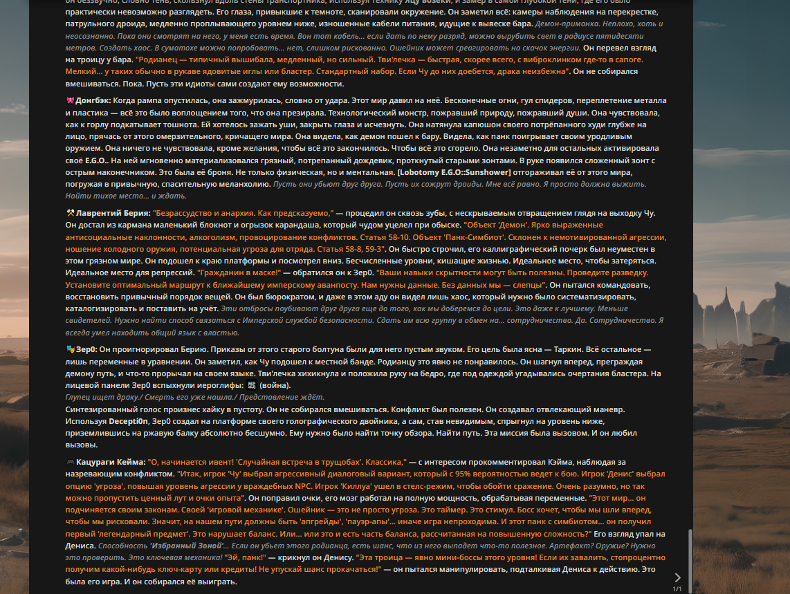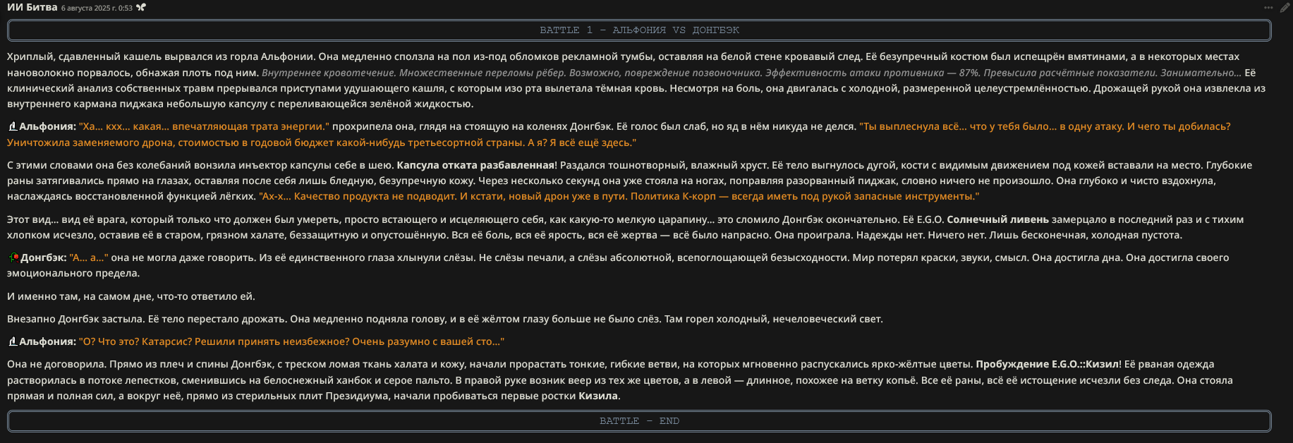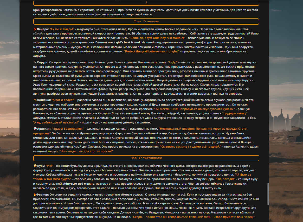 Кста двачую. Приятно удивлён. Чёто там Мори нормально так нахимичил. У меня при просьбе так долго продолжать обычно получается просто Войдишка режим.