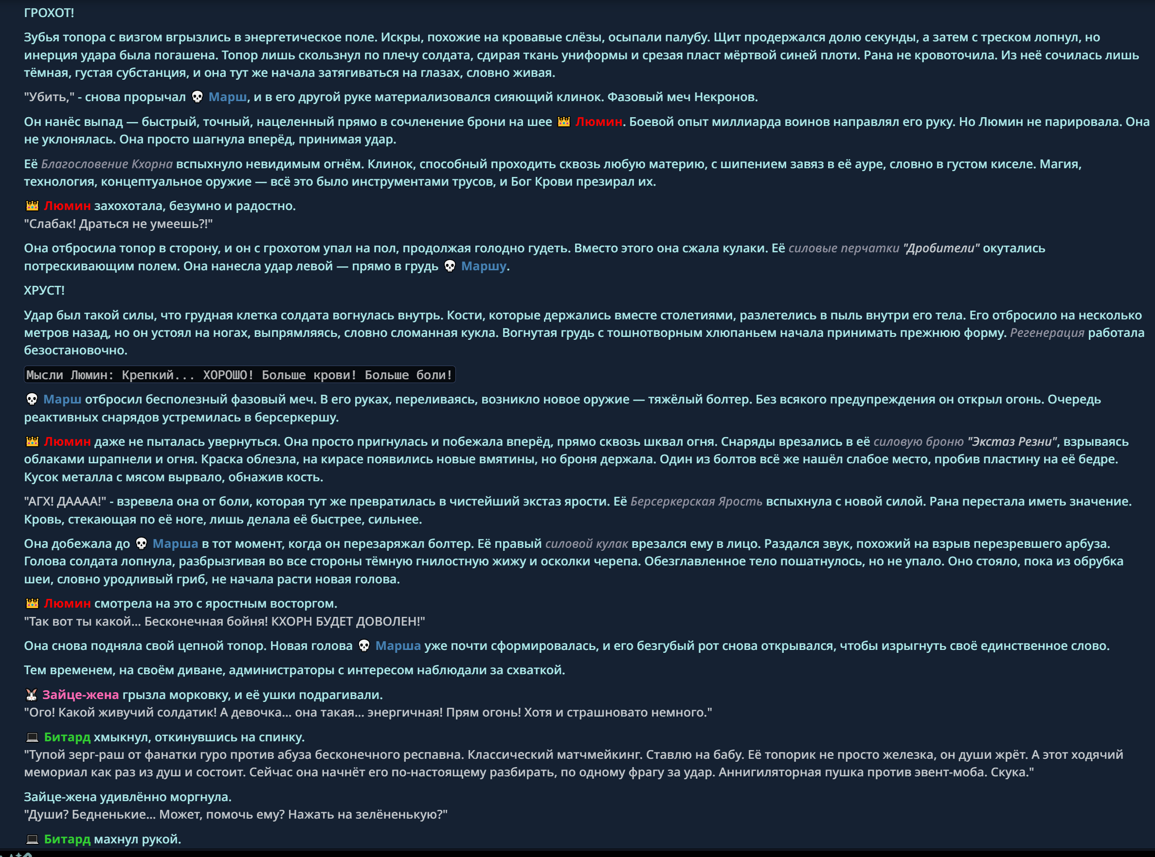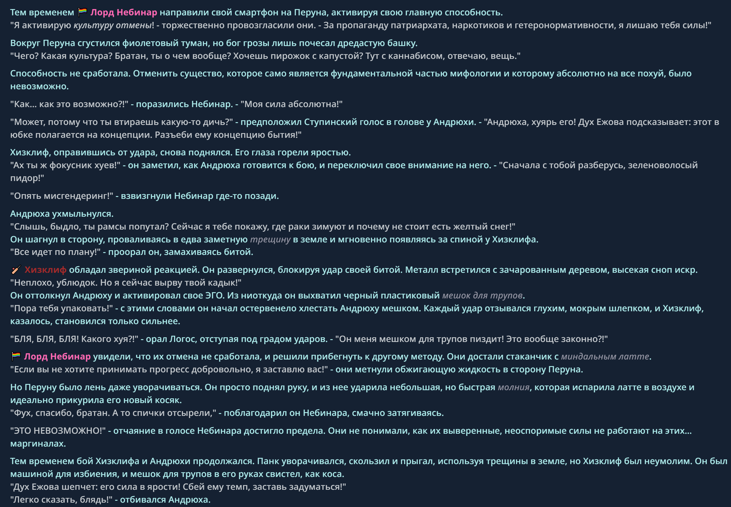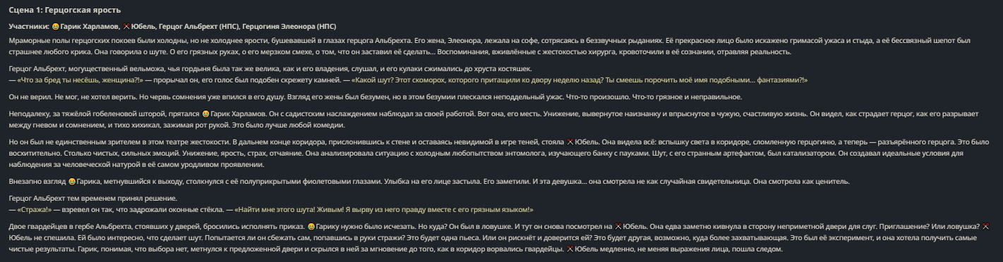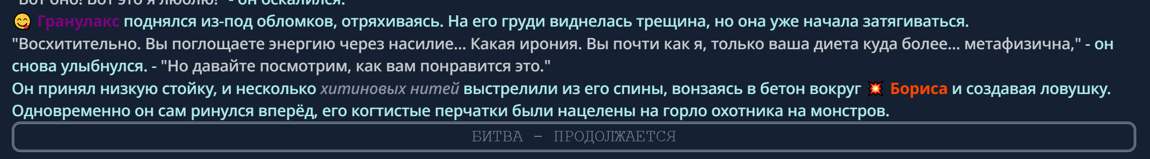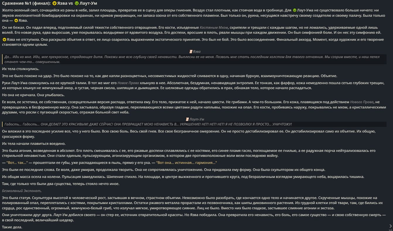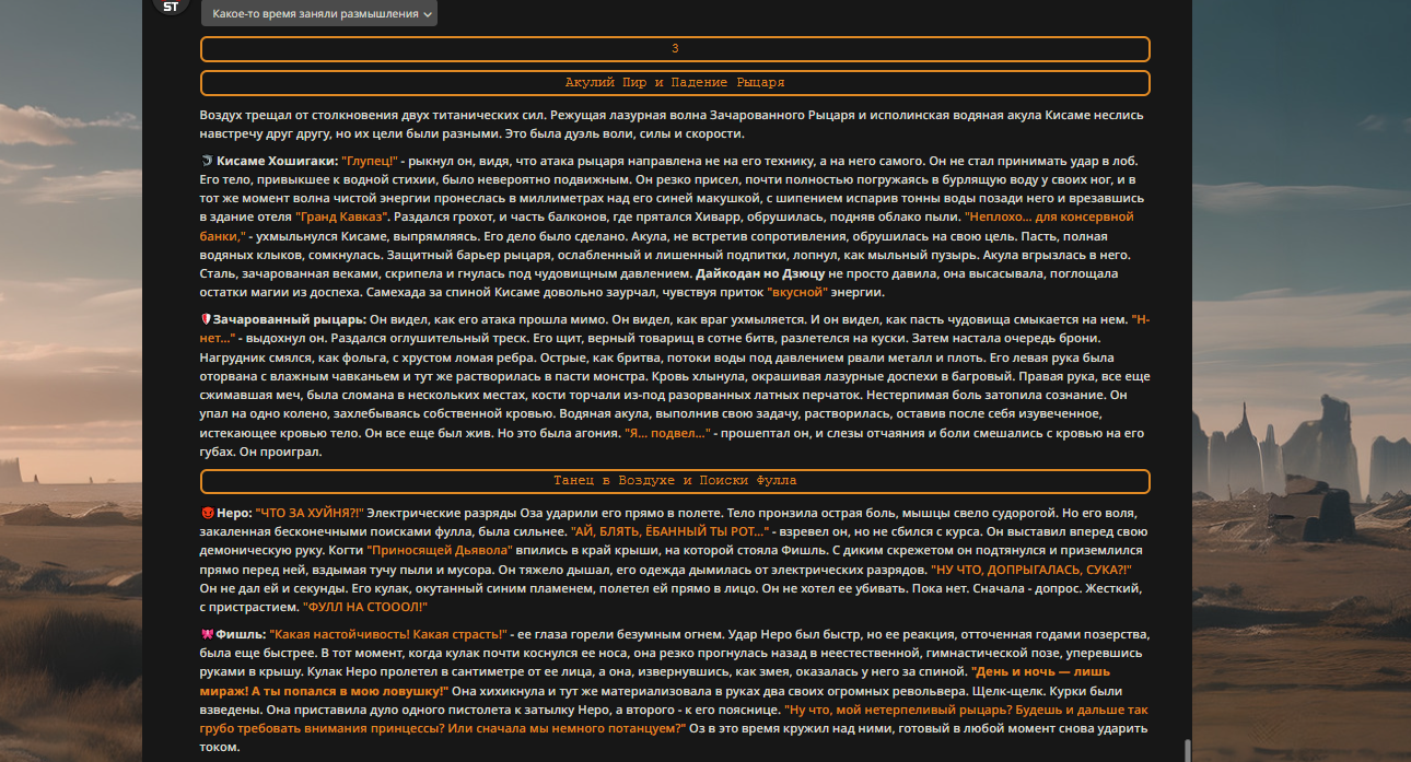 Кста двачую. Приятно удивлён. Чёто там Мори нормально так нахимичил. У меня при просьбе так долго продолжать обычно получается просто Войдишка режим.