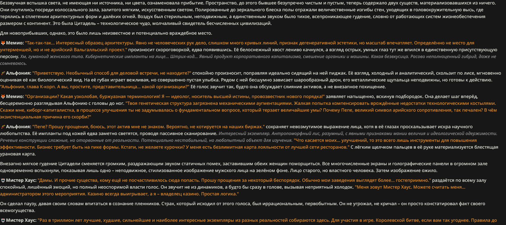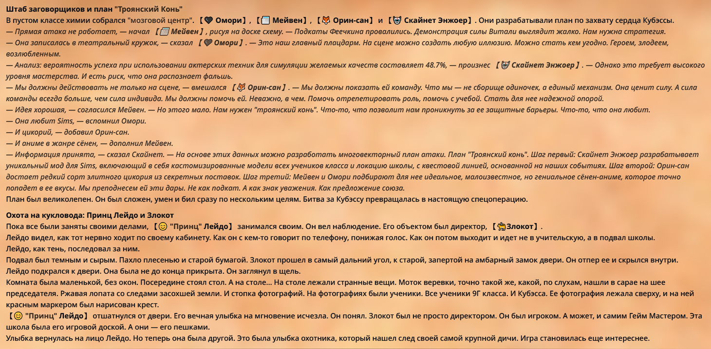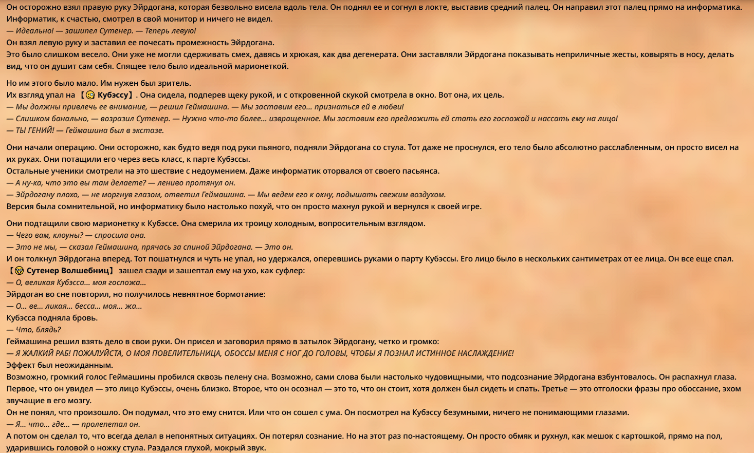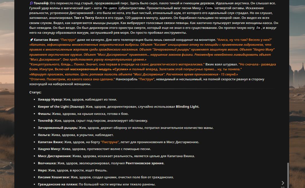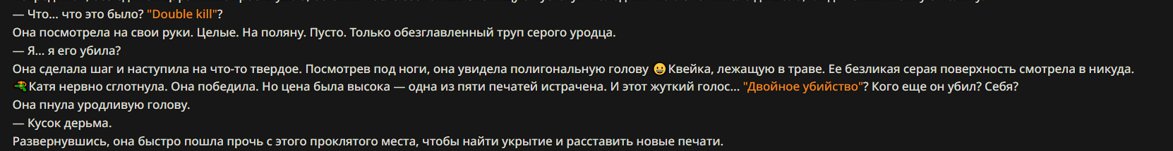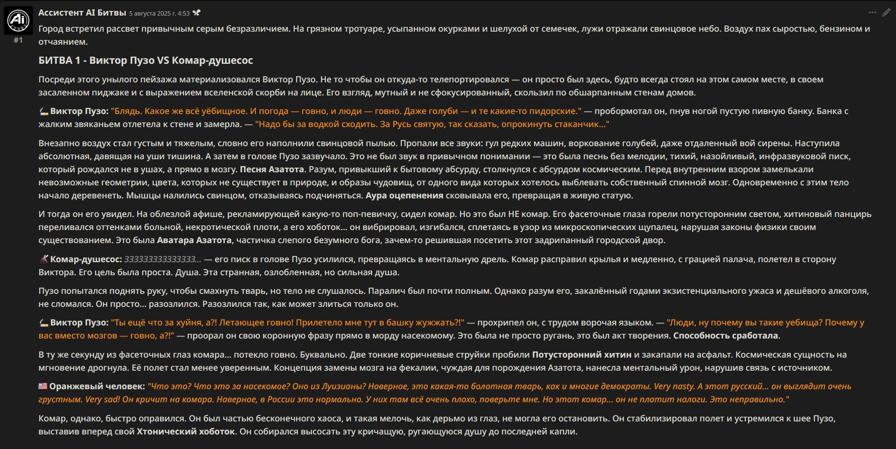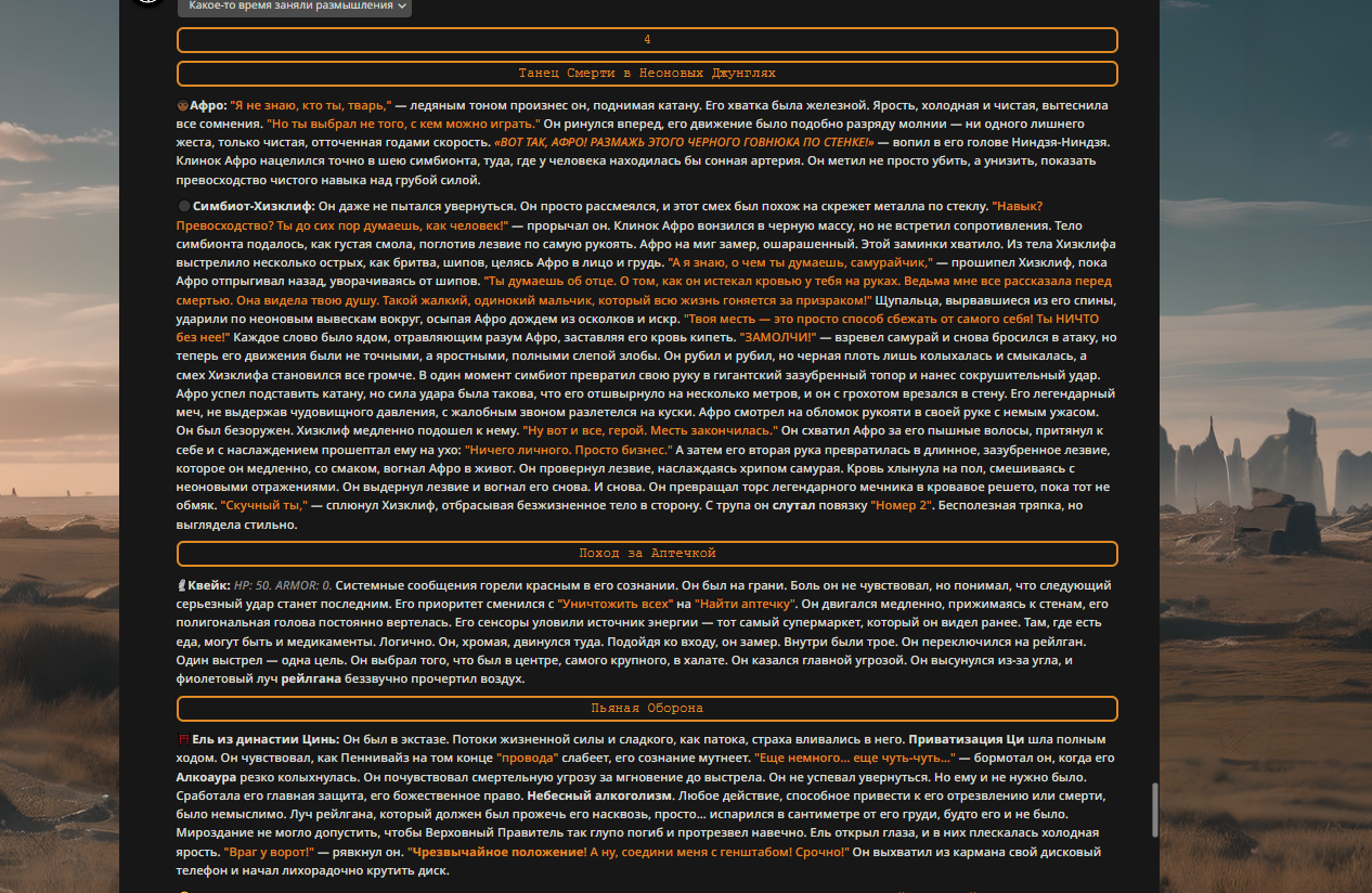 Кста двачую. Приятно удивлён. Чёто там Мори нормально так нахимичил. У меня при просьбе так долго продолжать обычно получается просто Войдишка режим.