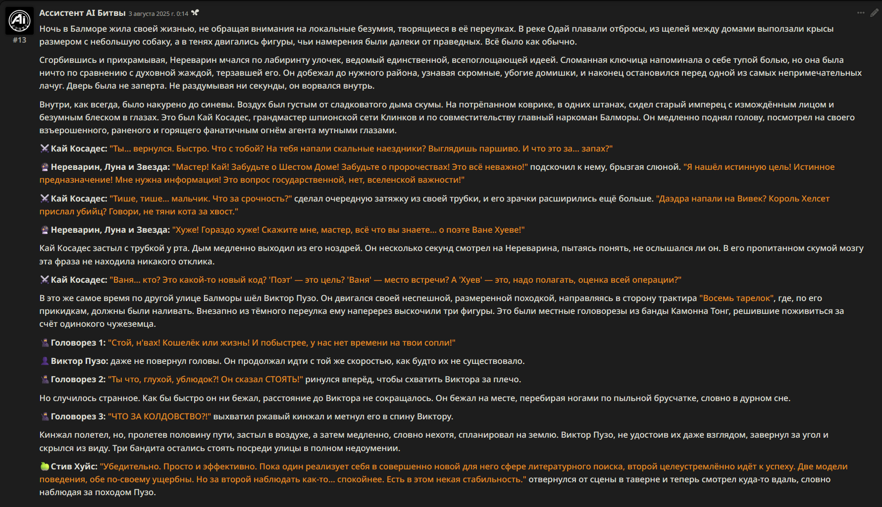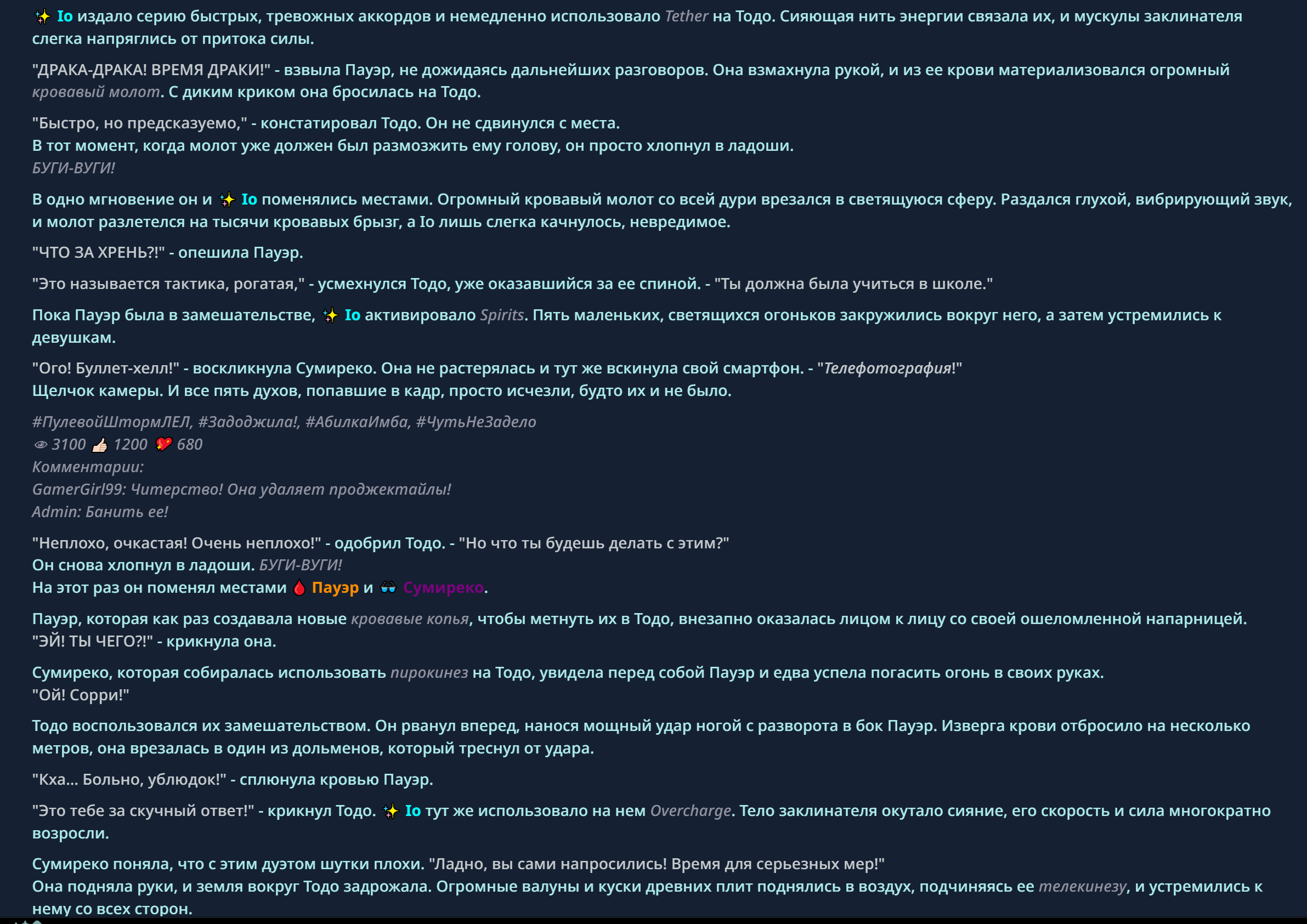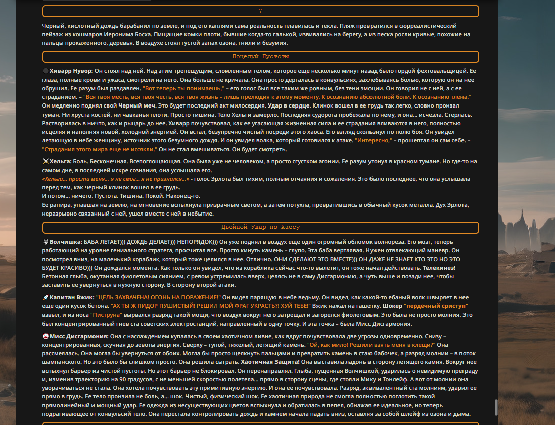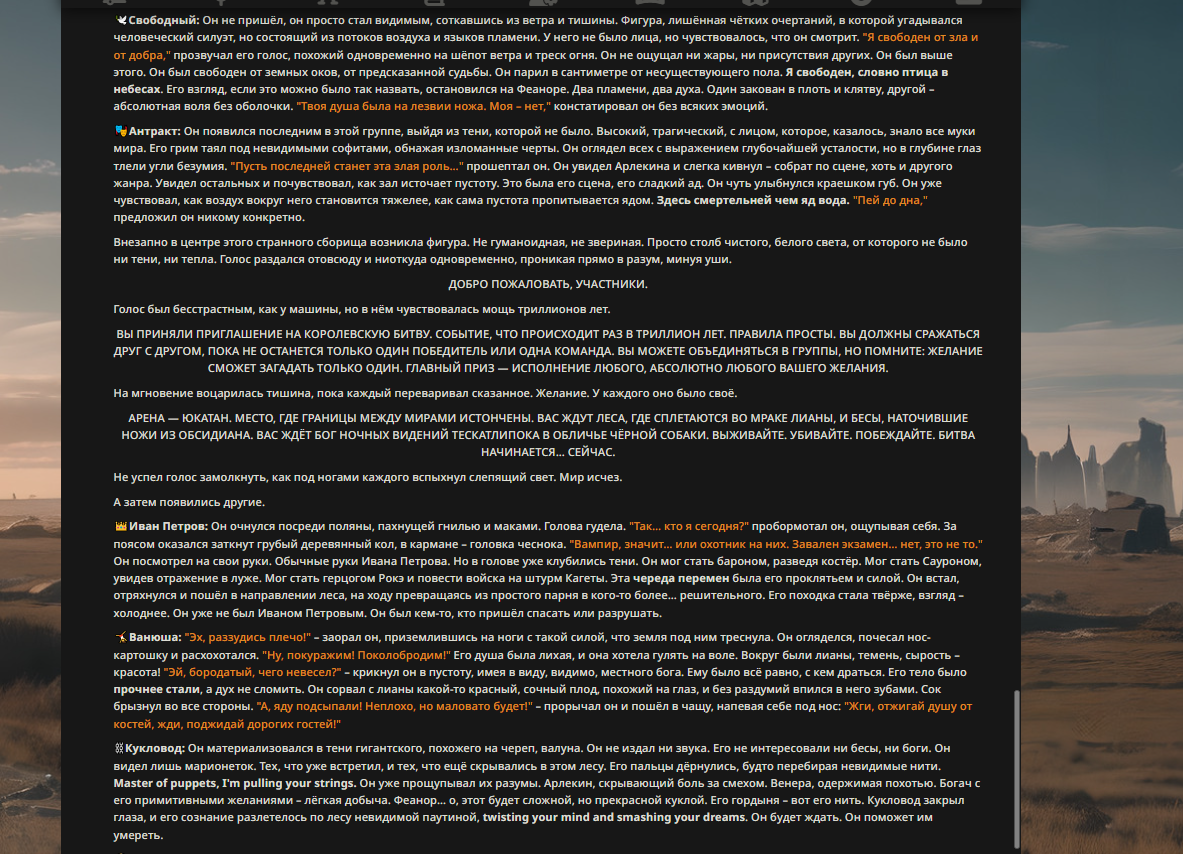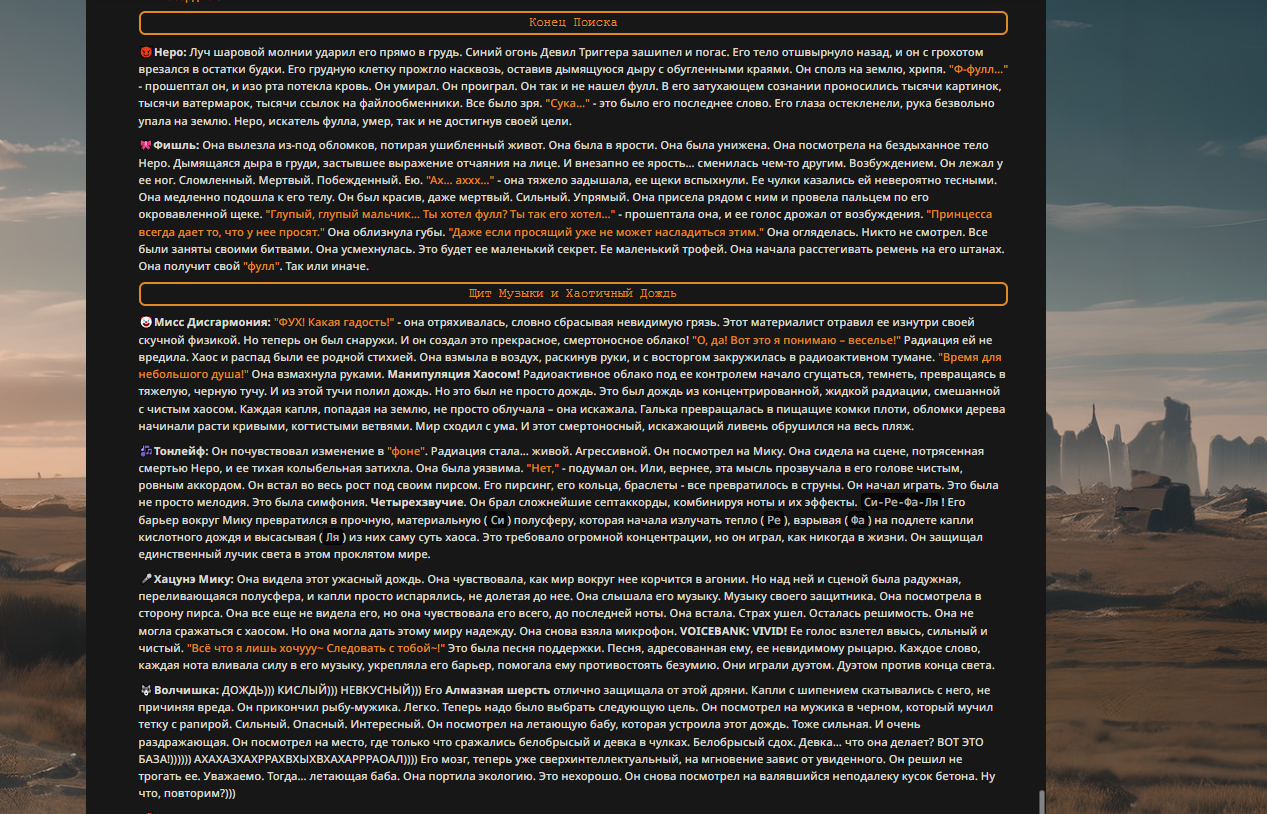 Кста двачую. Приятно удивлён. Чёто там Мори нормально так нахимичил. У меня при просьбе так долго продолжать обычно получается просто Войдишка режим.