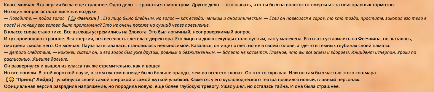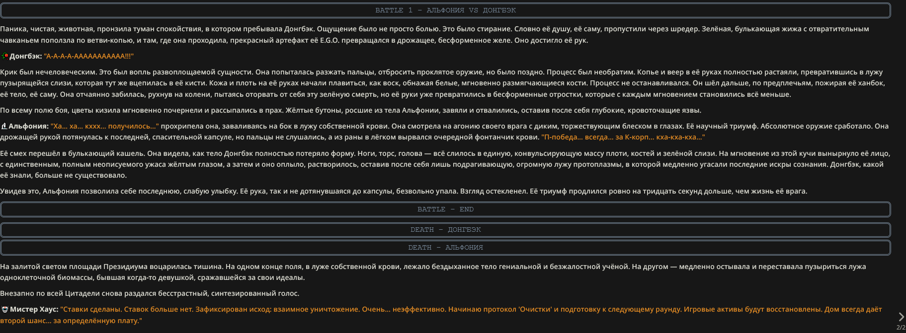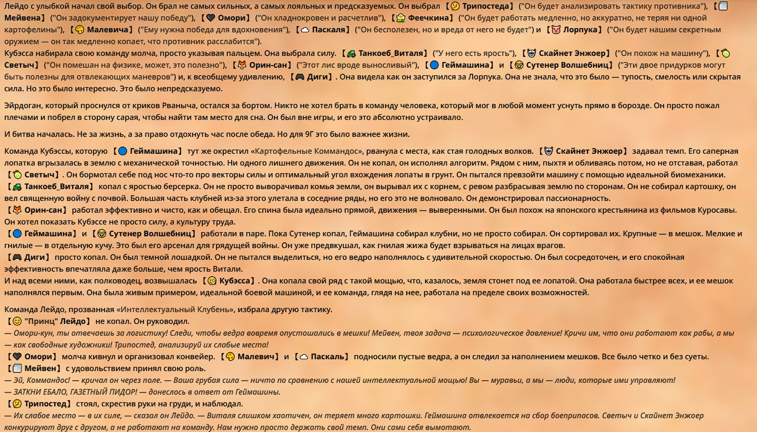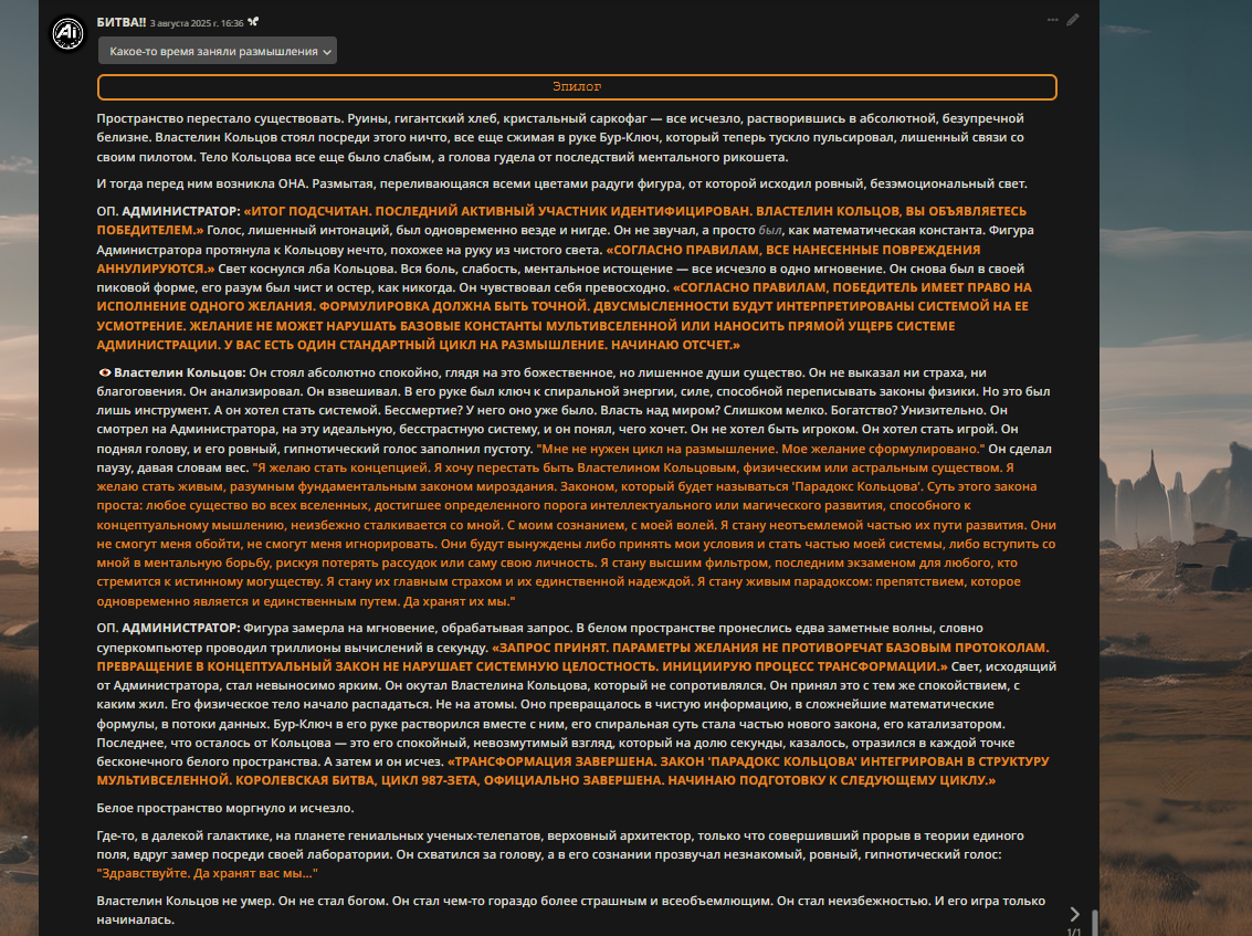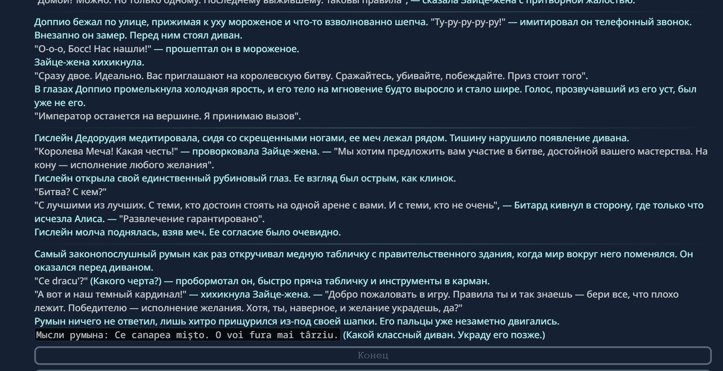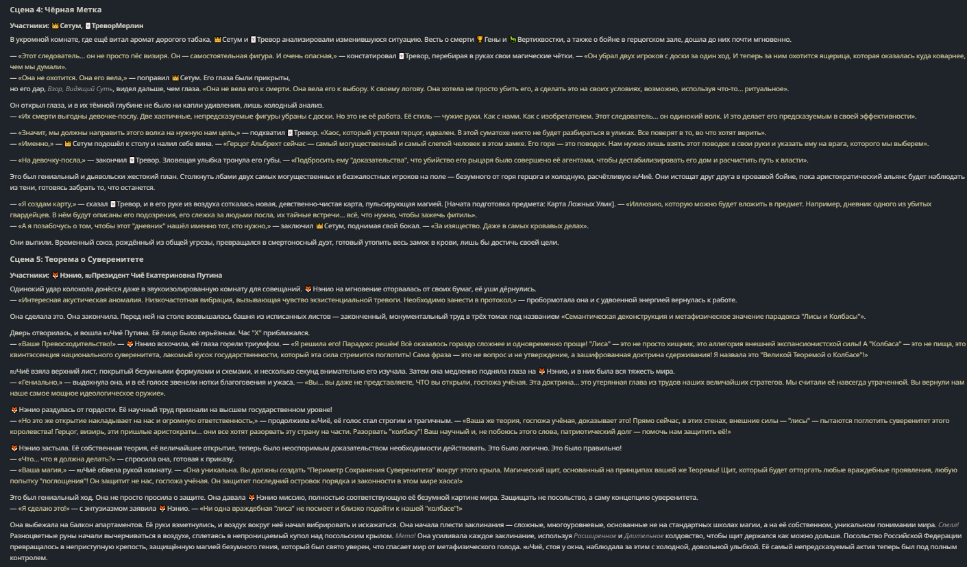 Кста двачую. Приятно удивлён. Чёто там Мори нормально так нахимичил. У меня при просьбе так долго продолжать обычно получается просто Войдишка режим.