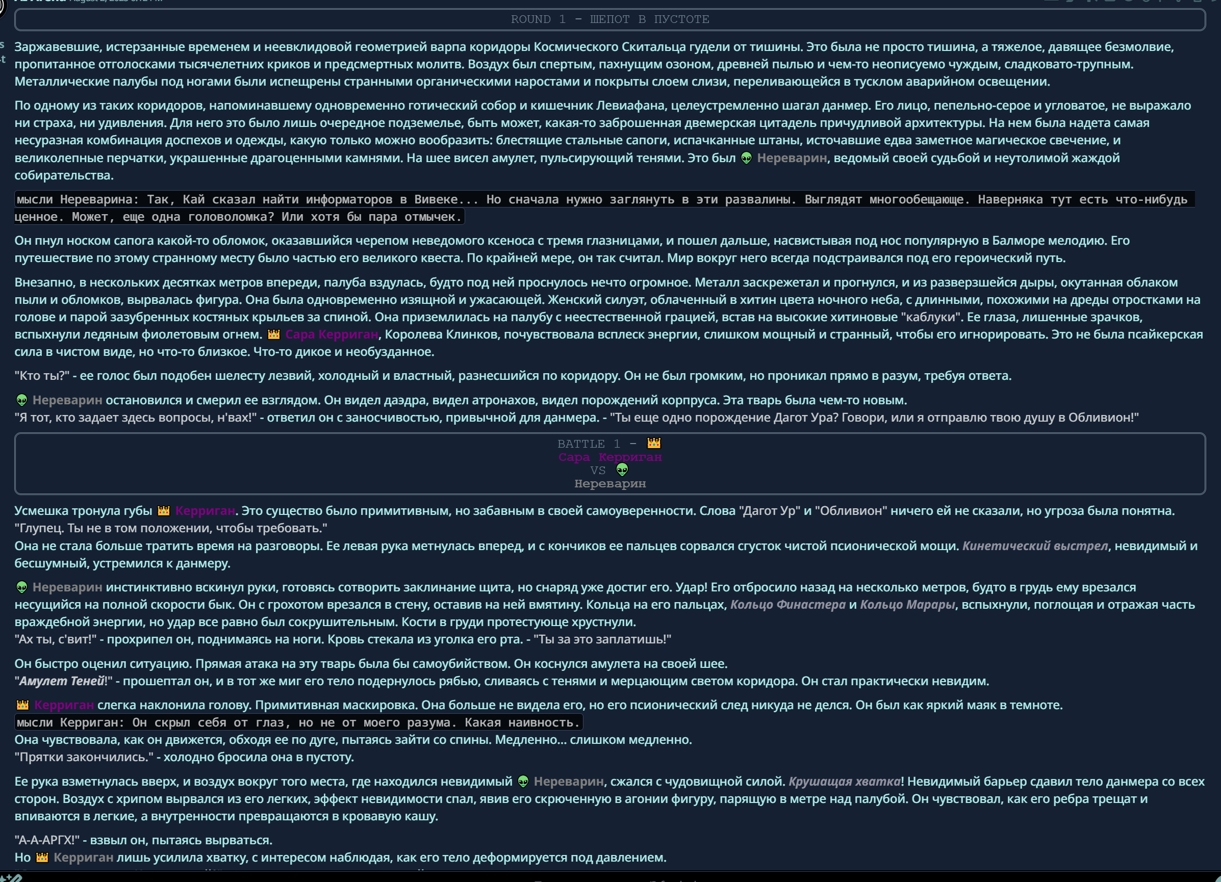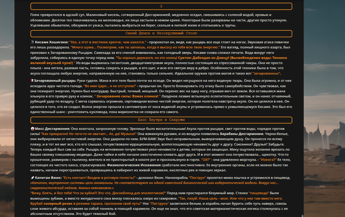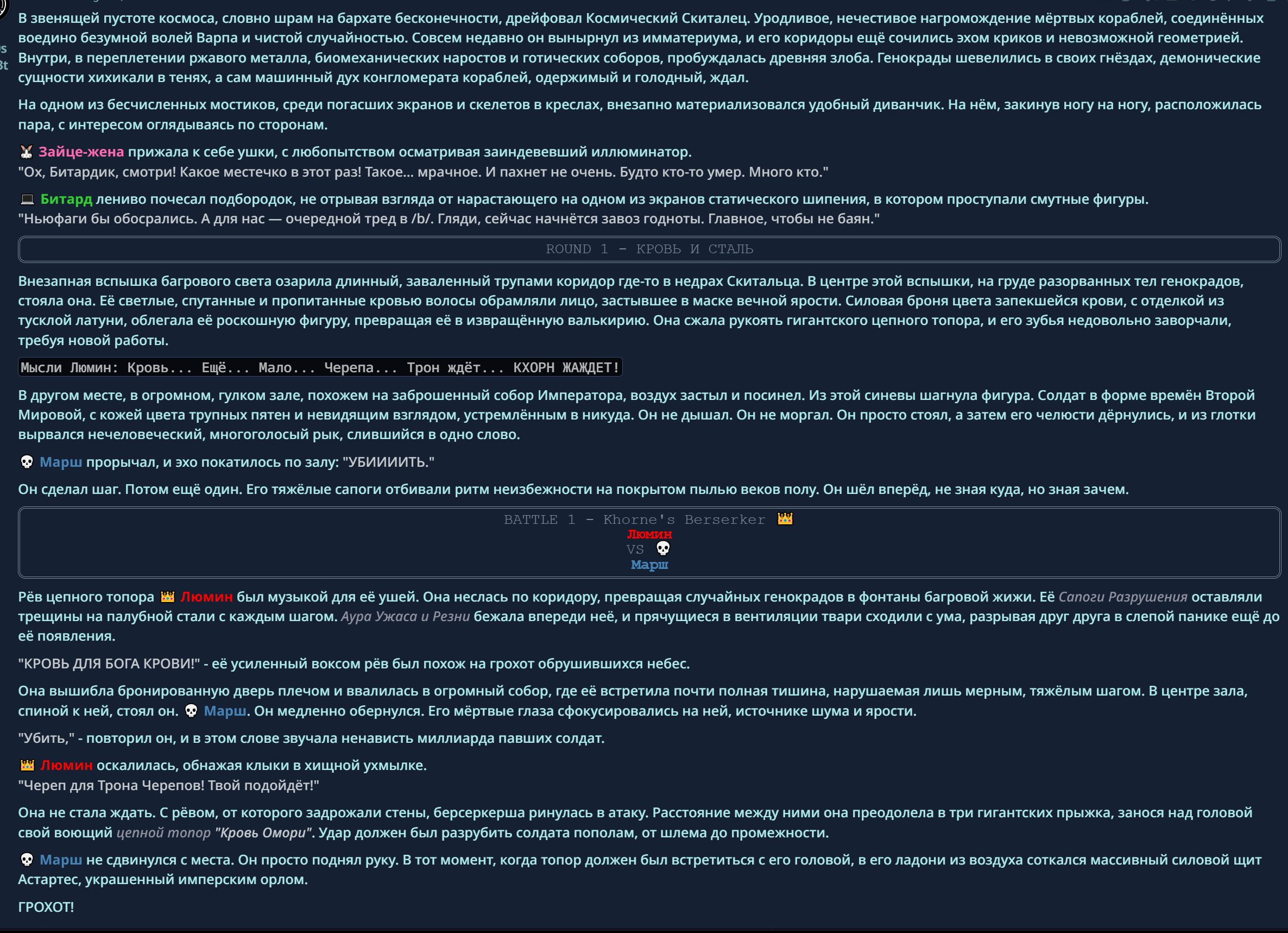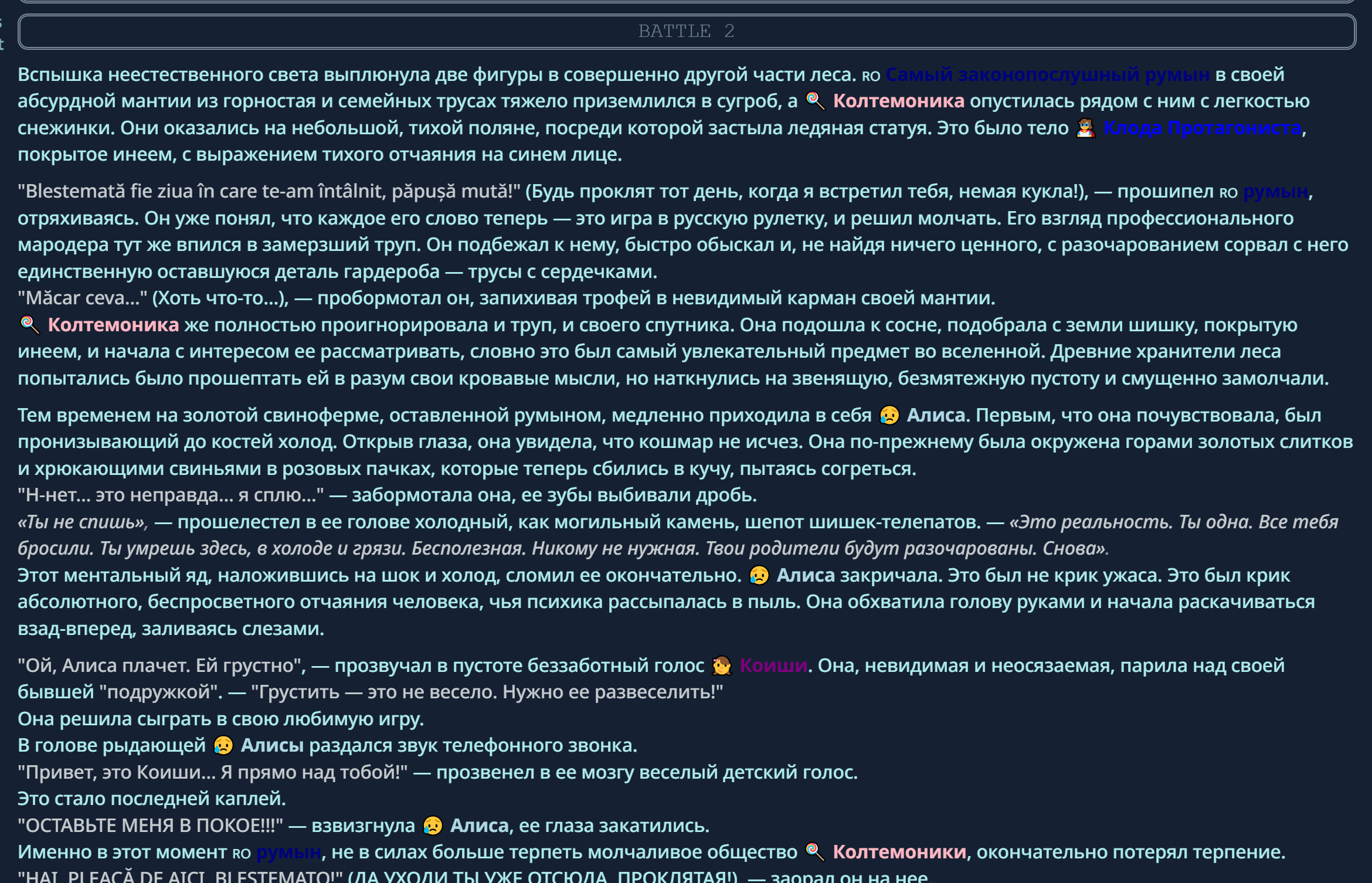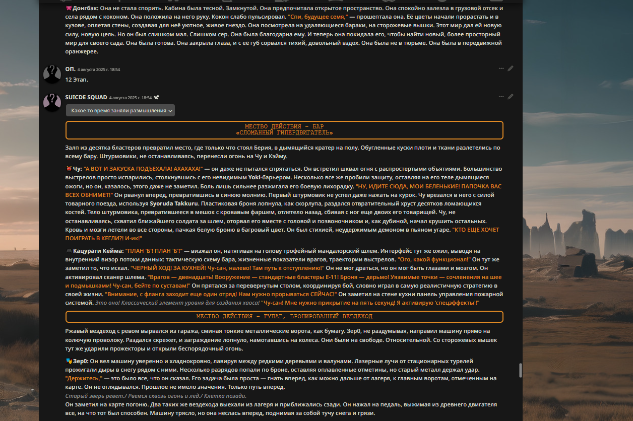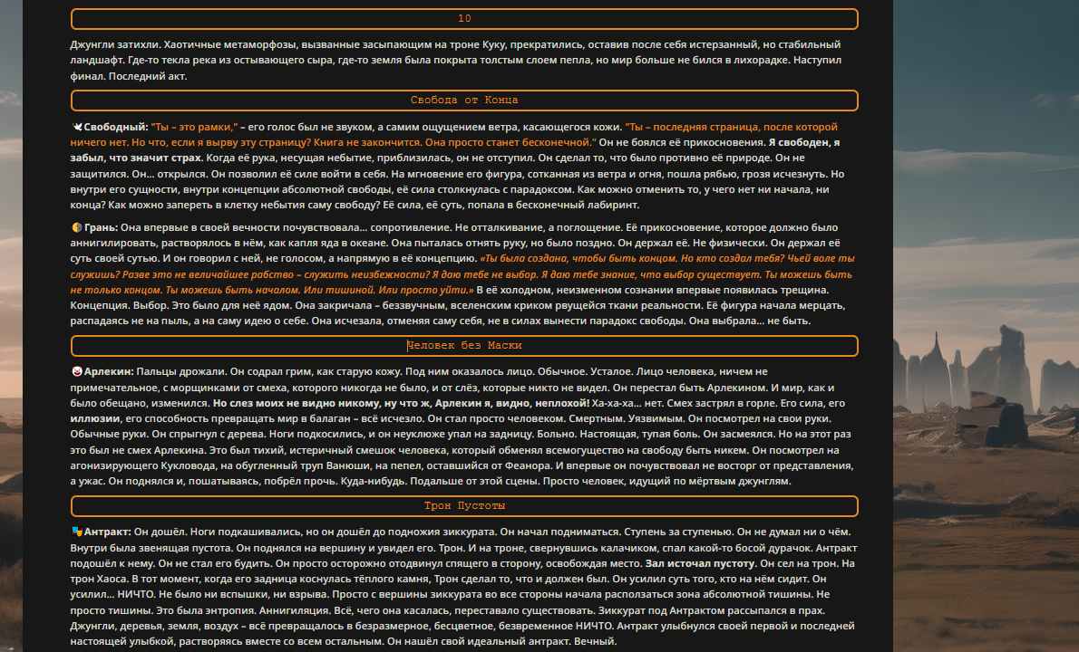 Кста двачую. Приятно удивлён. Чёто там Мори нормально так нахимичил. У меня при просьбе так долго продолжать обычно получается просто Войдишка режим.