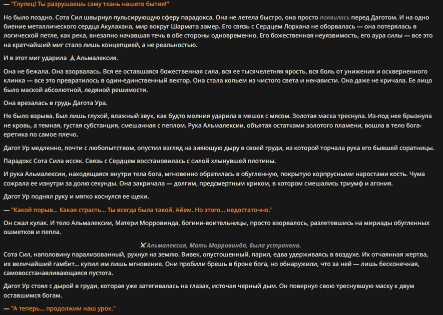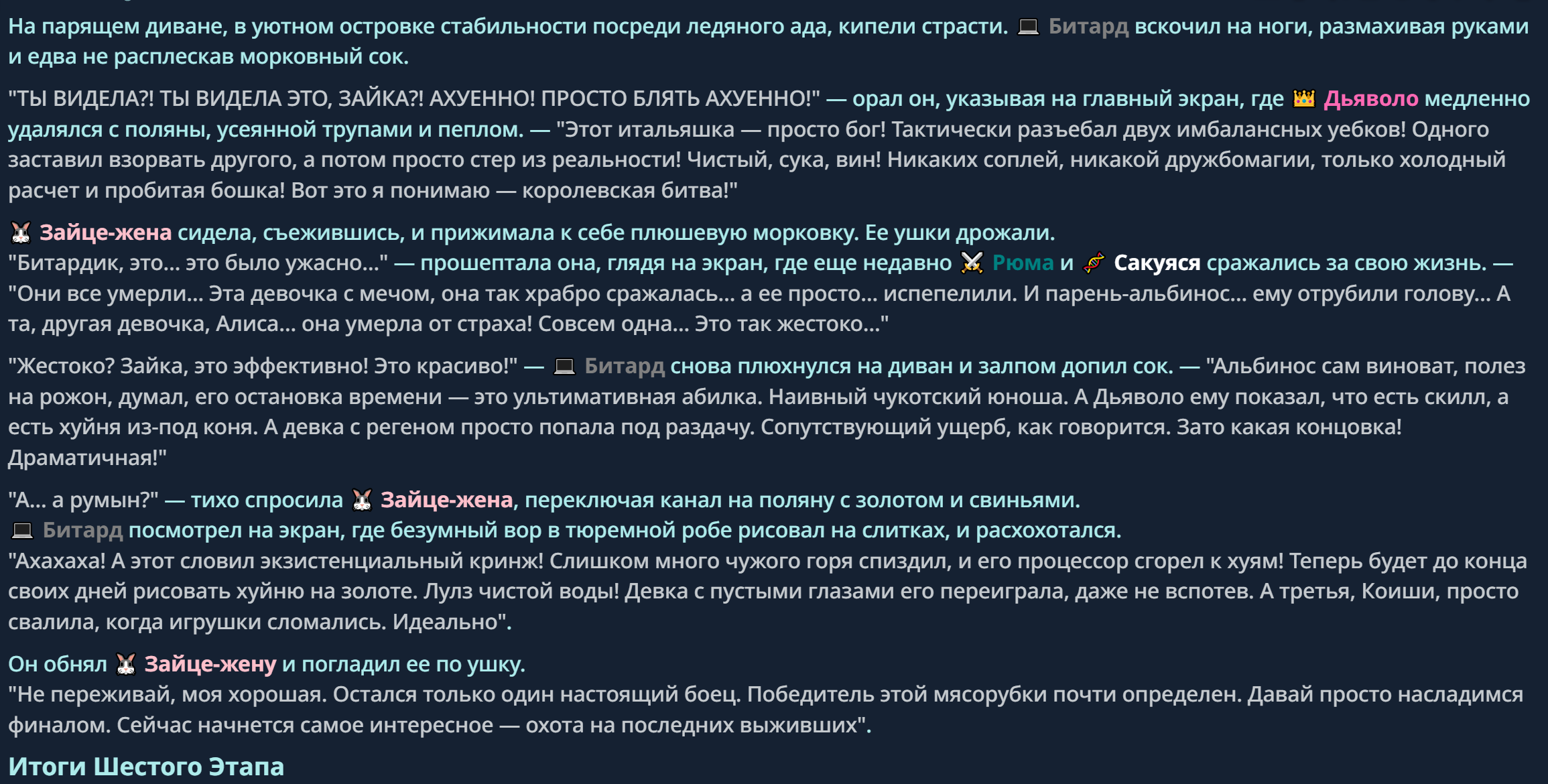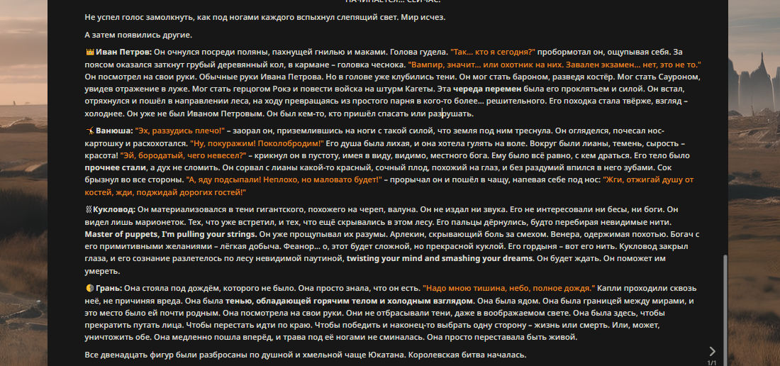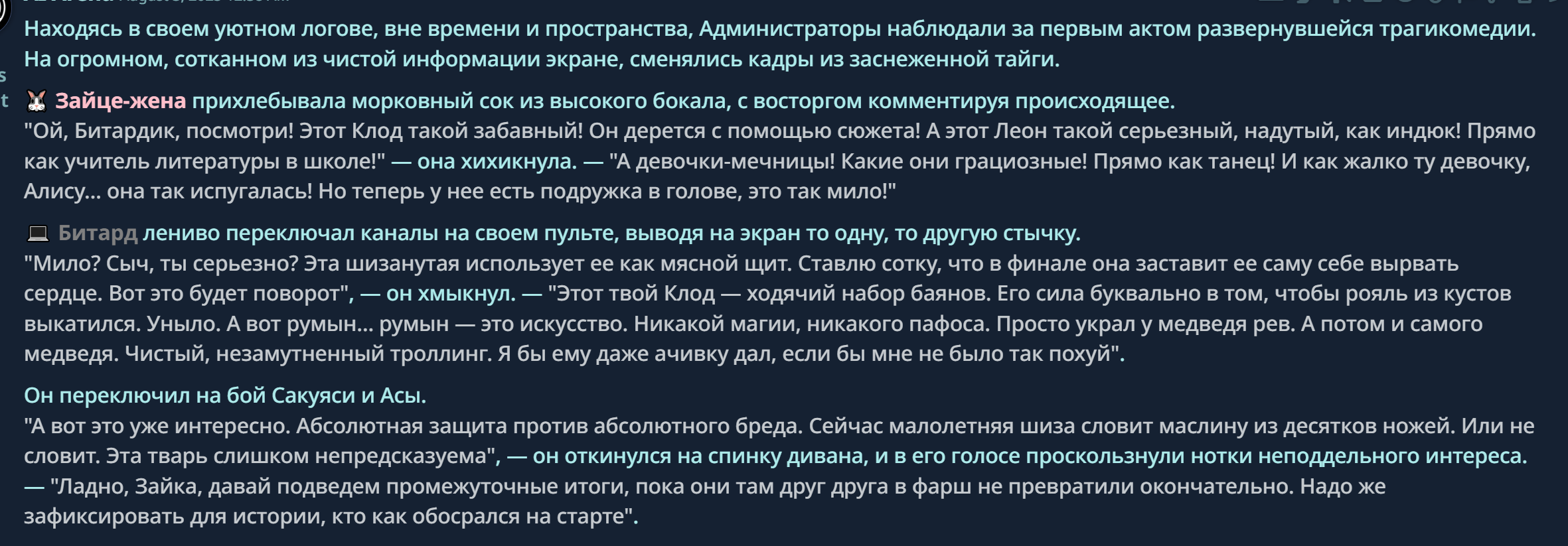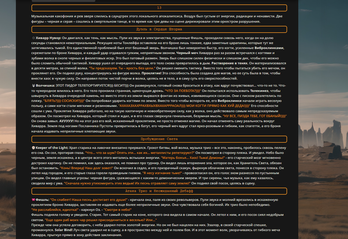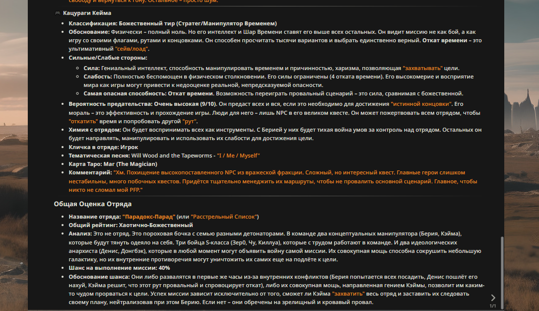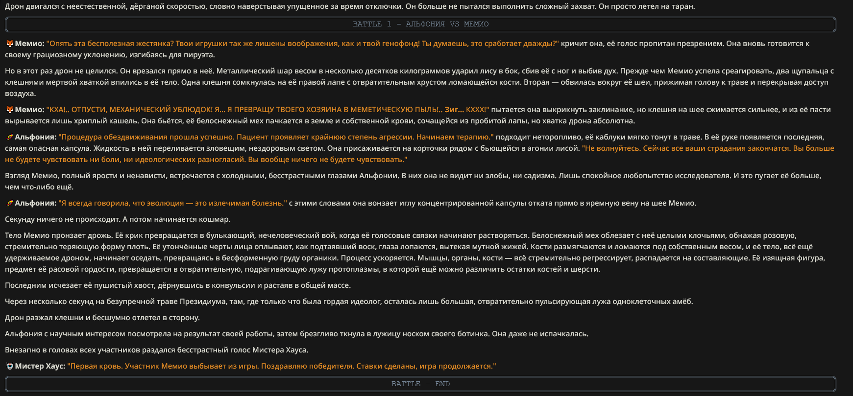 Кста двачую. Приятно удивлён. Чёто там Мори нормально так нахимичил. У меня при просьбе так долго продолжать обычно получается просто Войдишка режим.