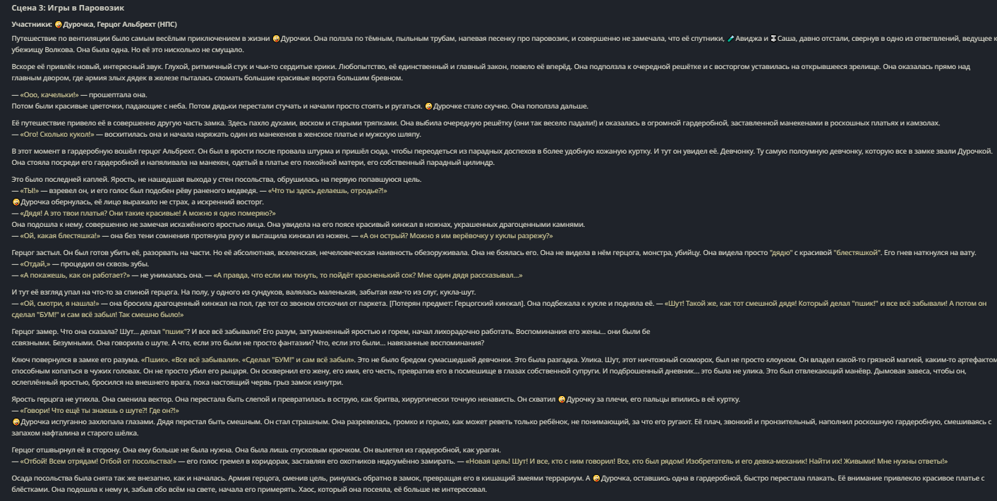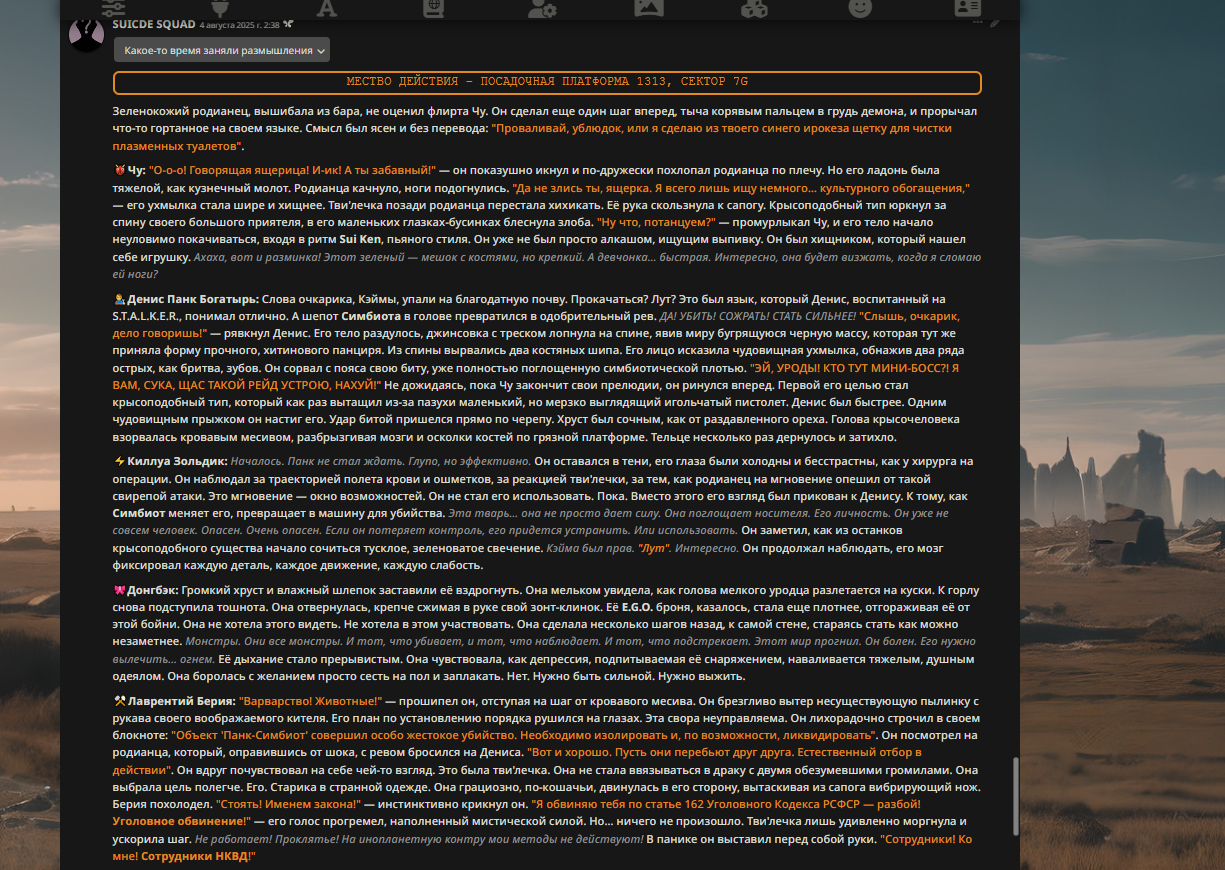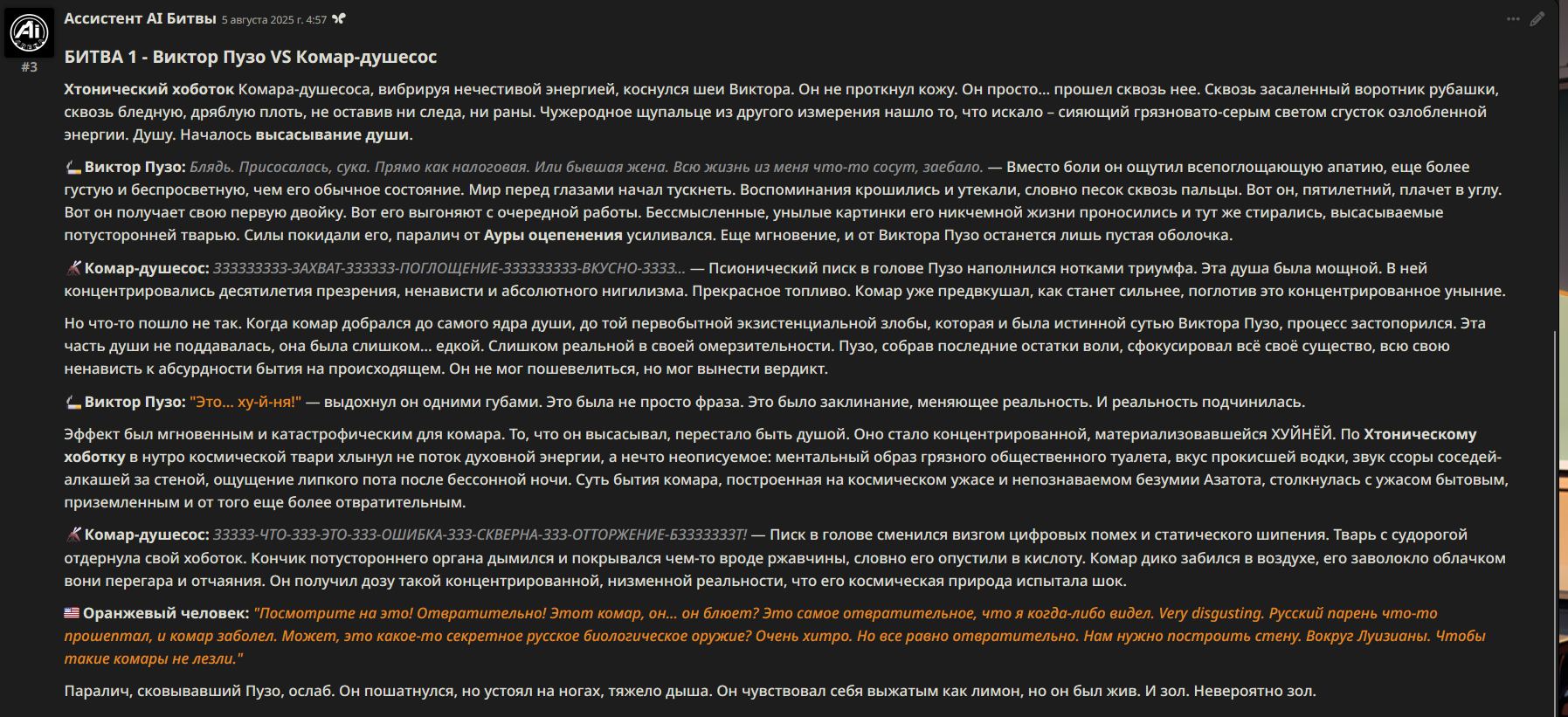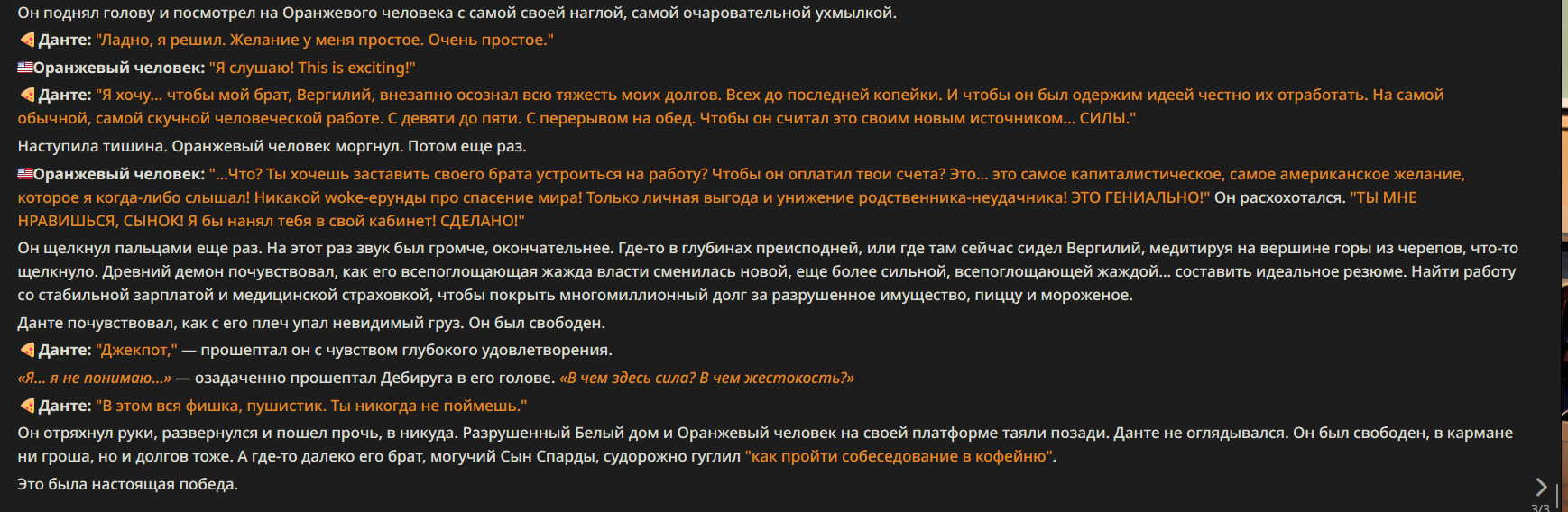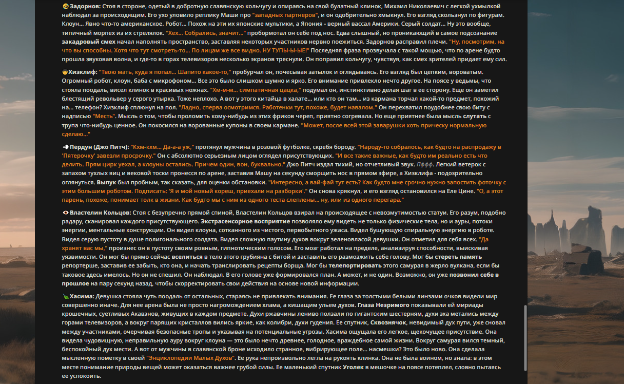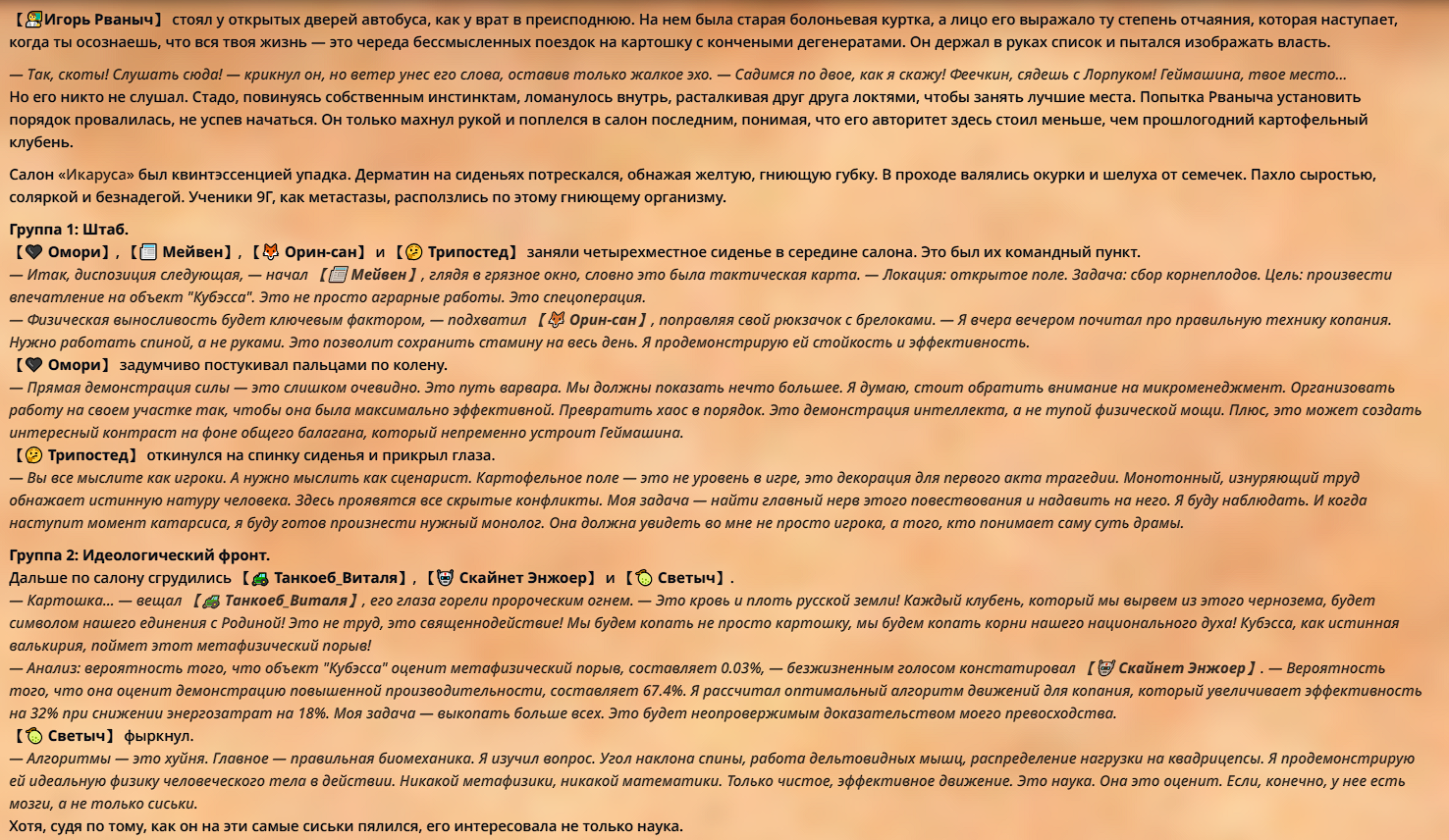 Кста двачую. Приятно удивлён. Чёто там Мори нормально так нахимичил. У меня при просьбе так долго продолжать обычно получается просто Войдишка режим.