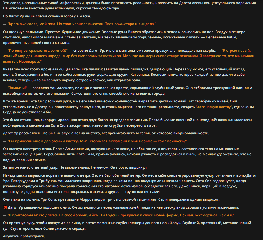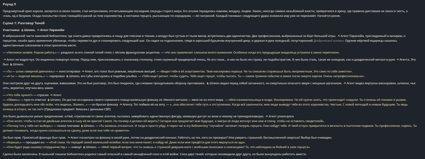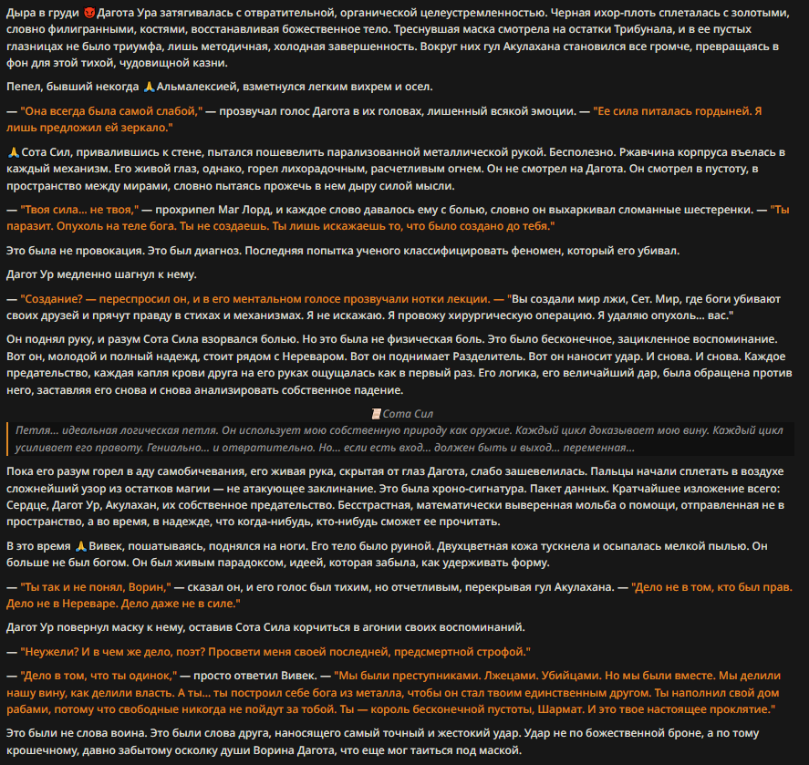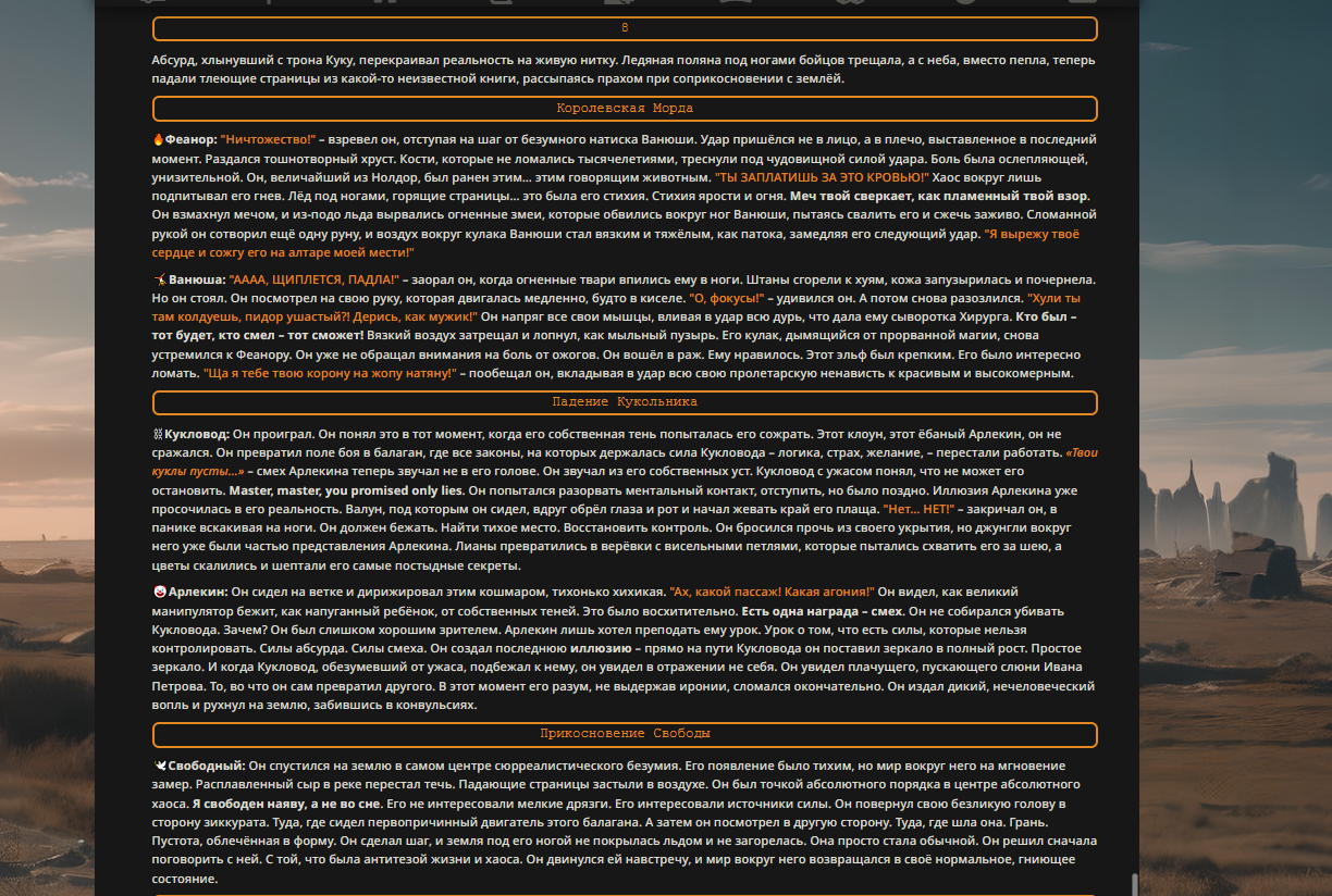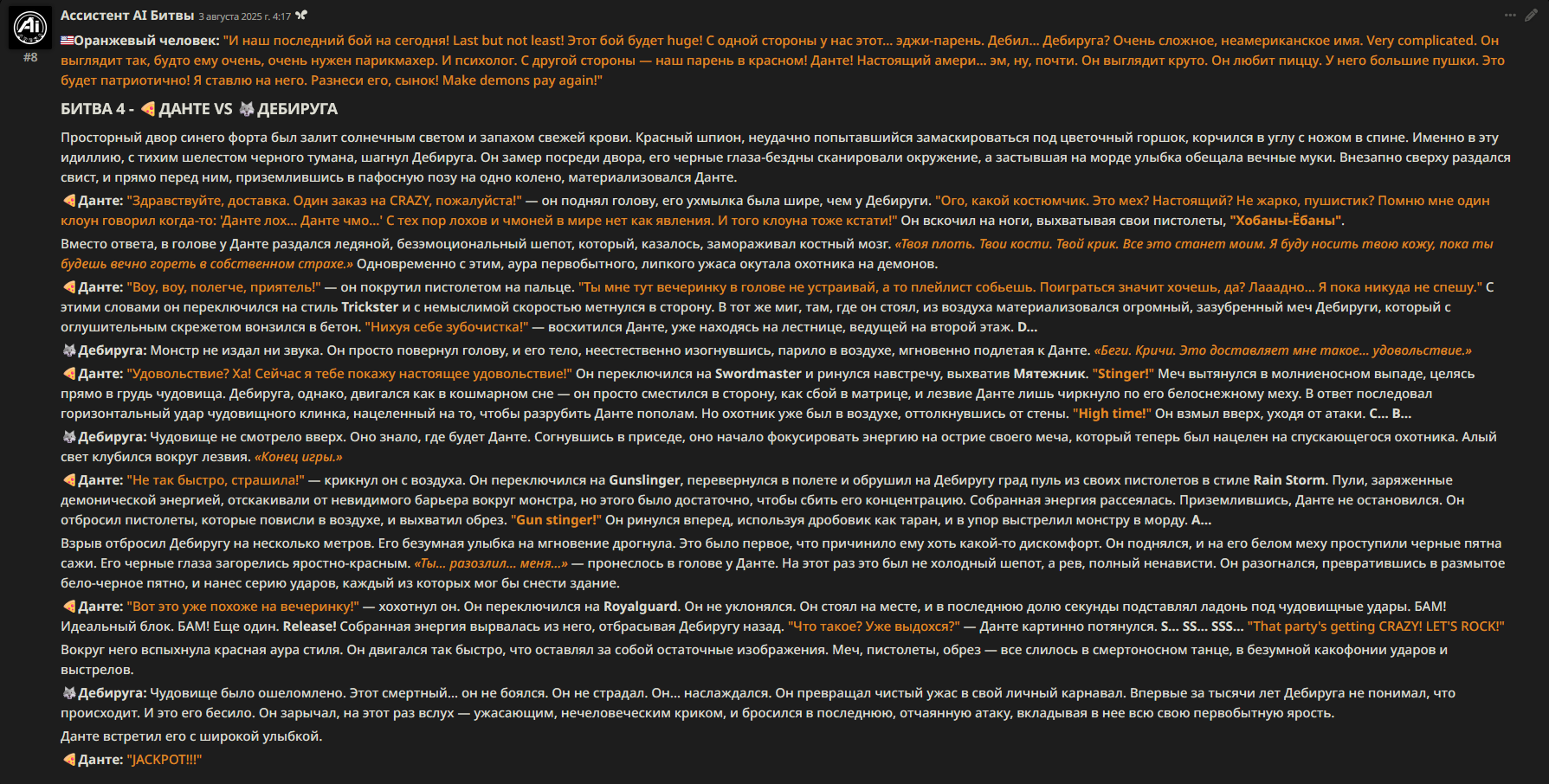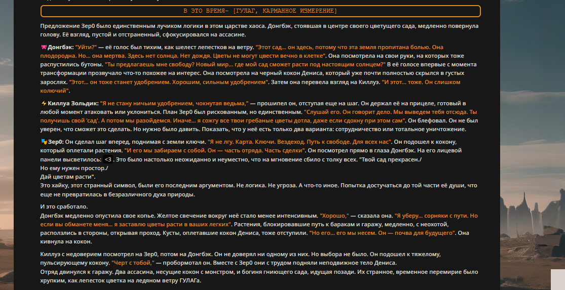 Кста двачую. Приятно удивлён. Чёто там Мори нормально так нахимичил. У меня при просьбе так долго продолжать обычно получается просто Войдишка режим.