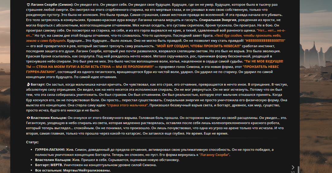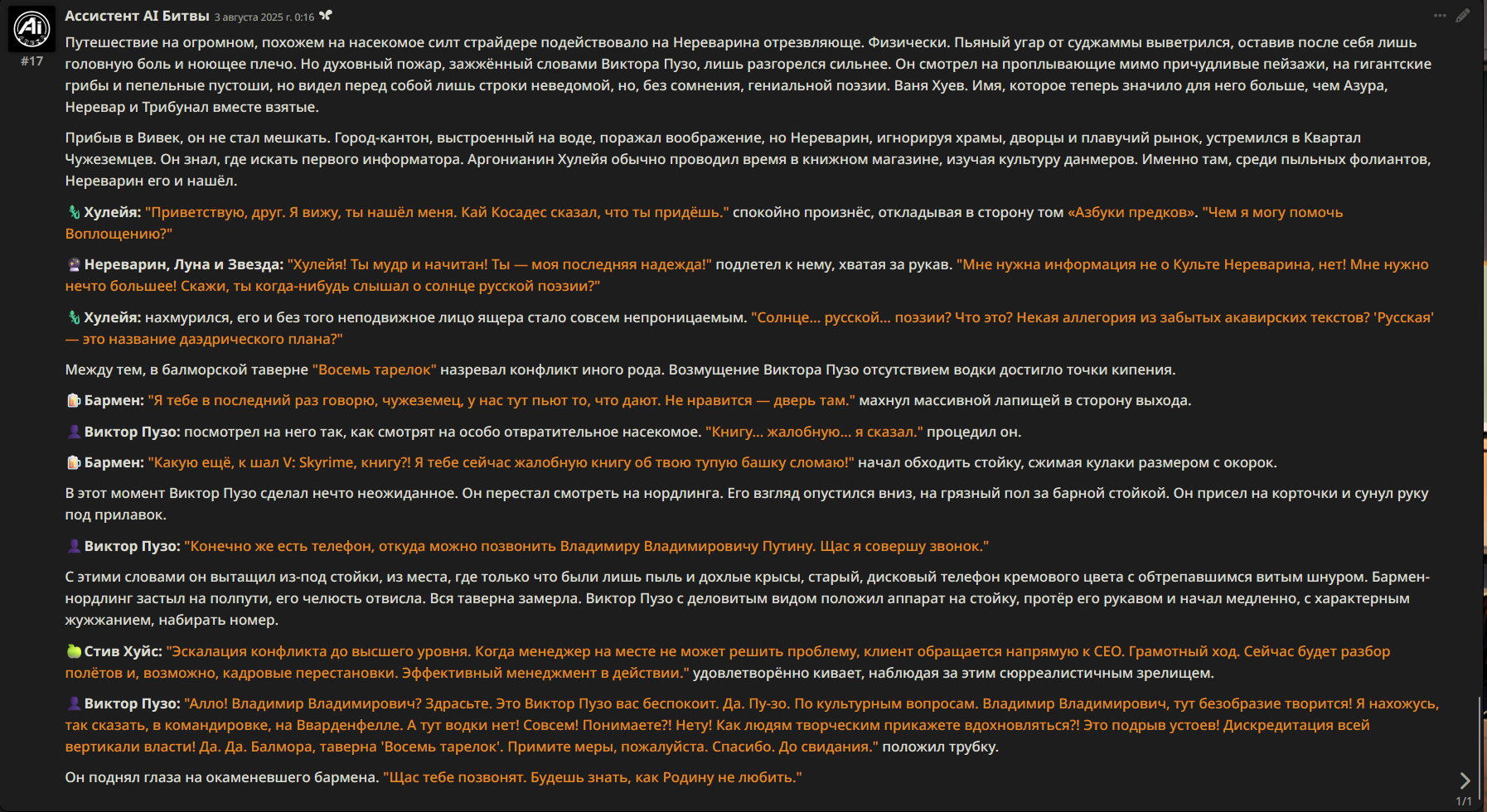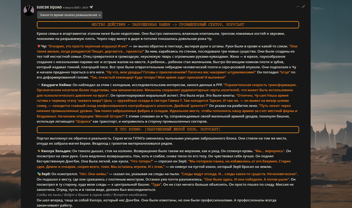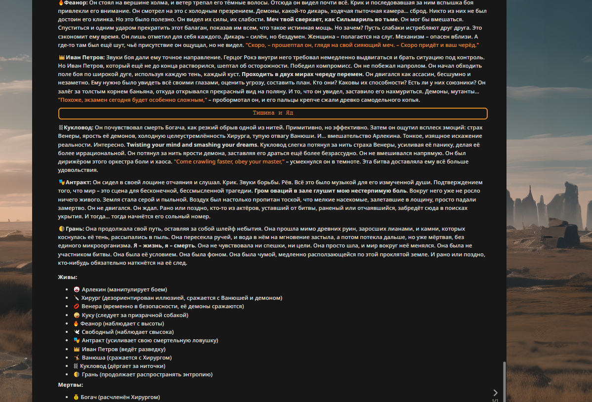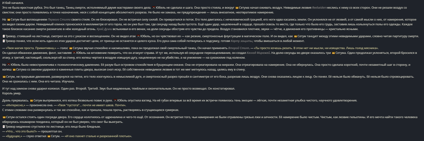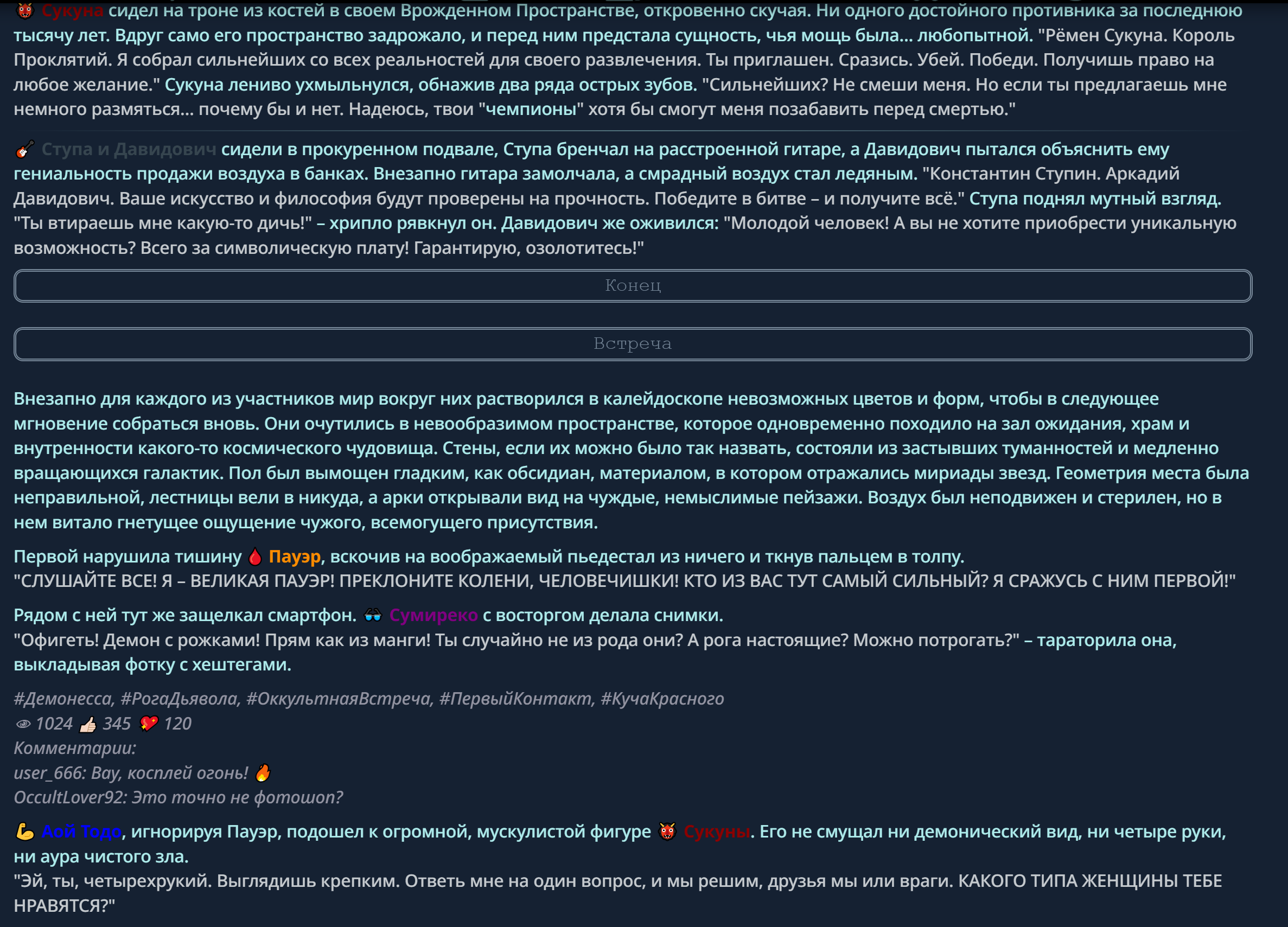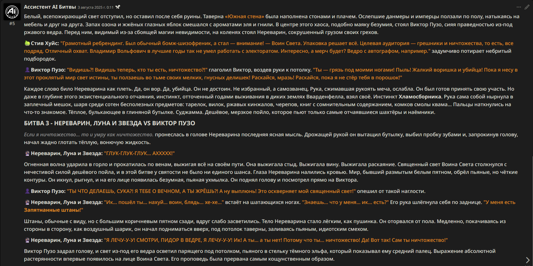 Кста двачую. Приятно удивлён. Чёто там Мори нормально так нахимичил. У меня при просьбе так долго продолжать обычно получается просто Войдишка режим.