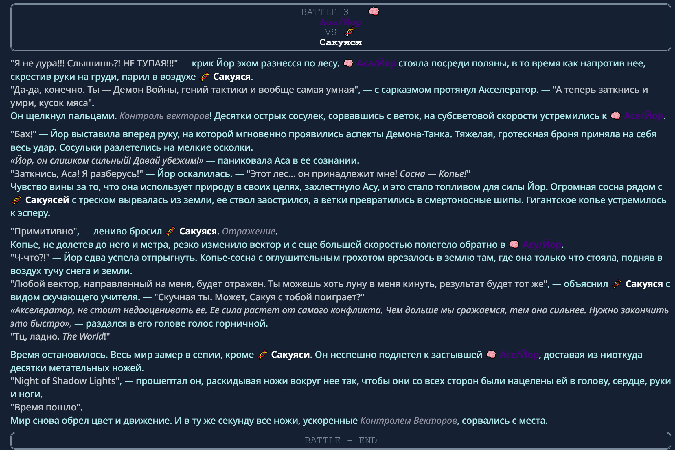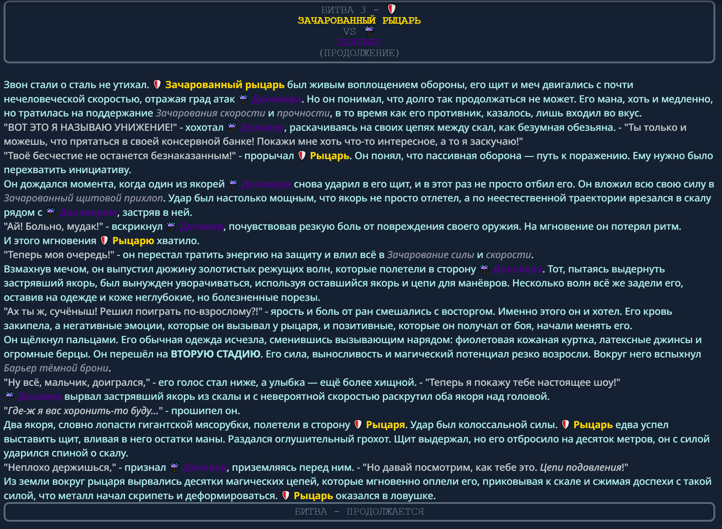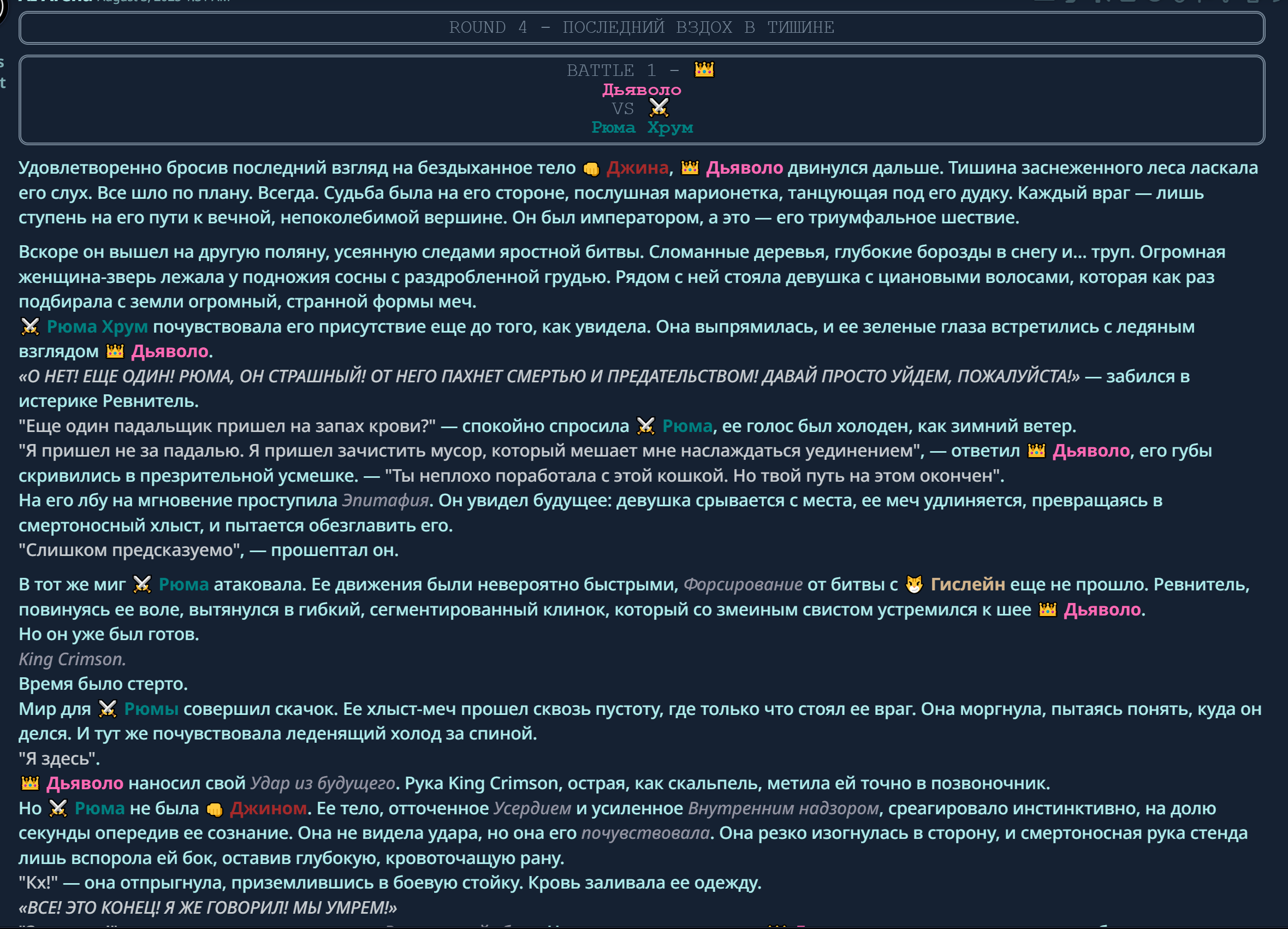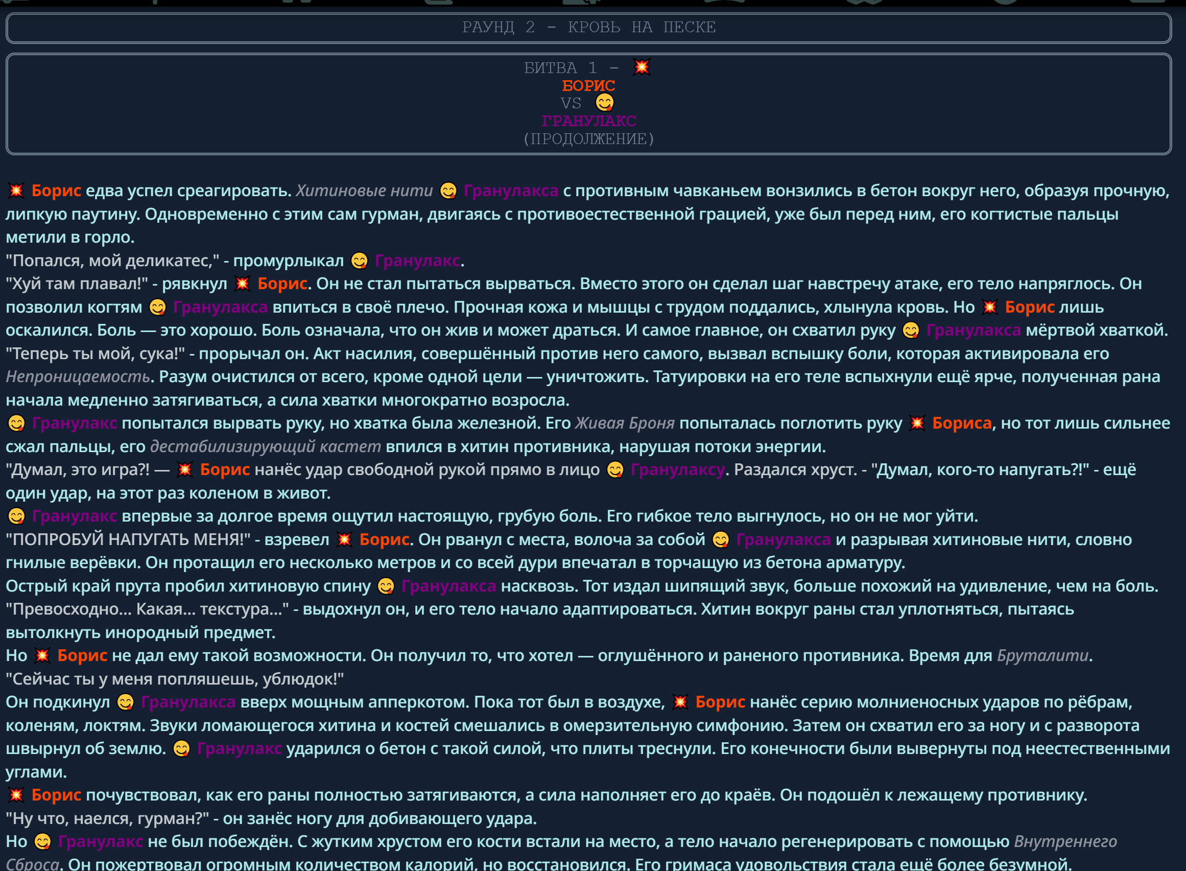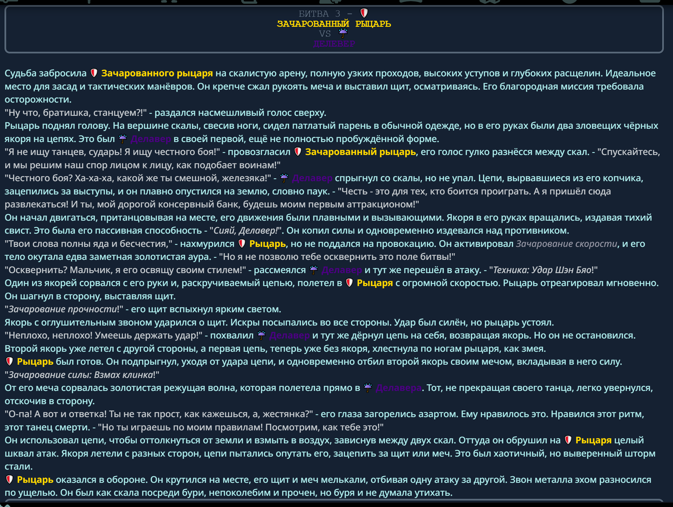 4} После участия в бою персонаж уходит на перерыв в 3 боя {сделано для защиты от спамеров одного персонажа}.