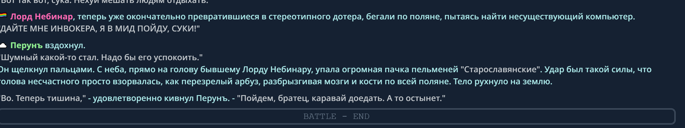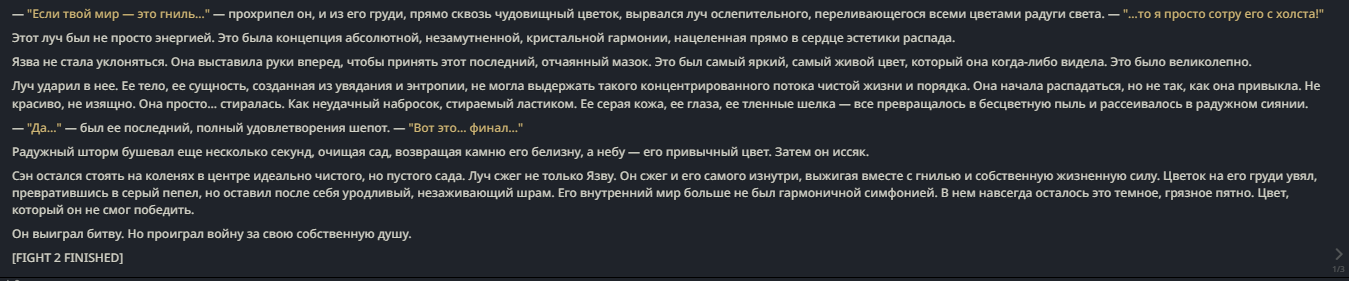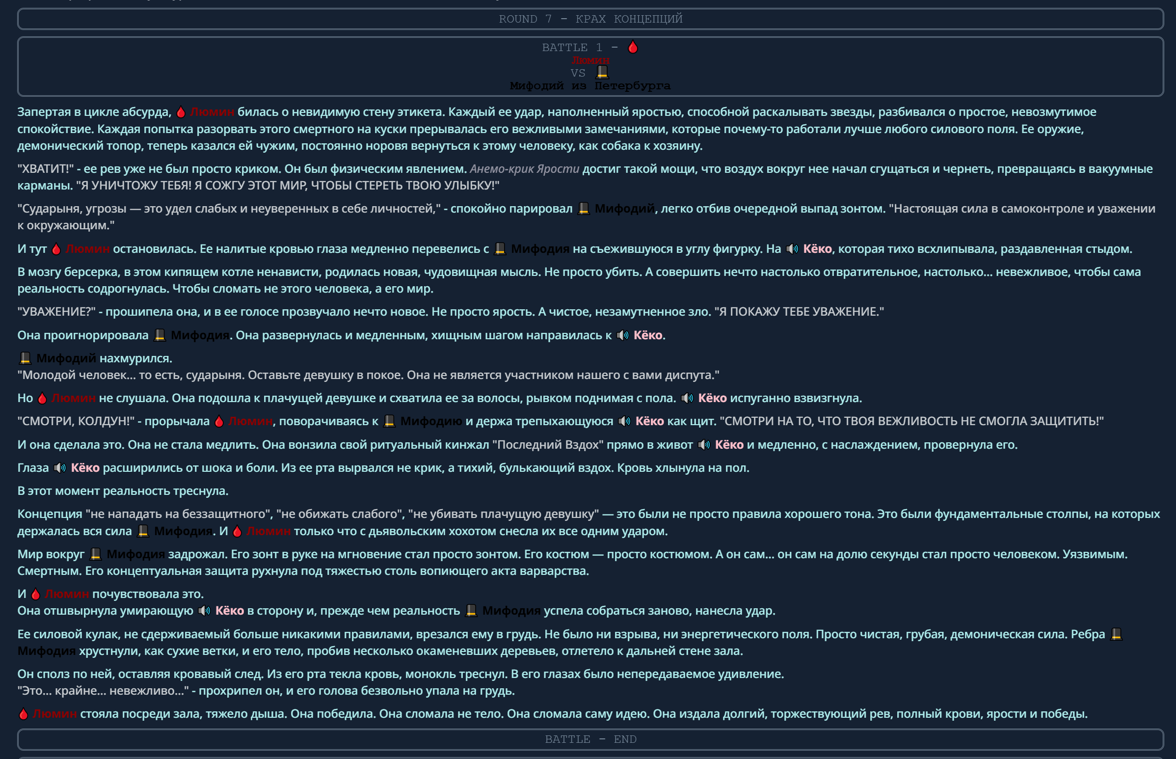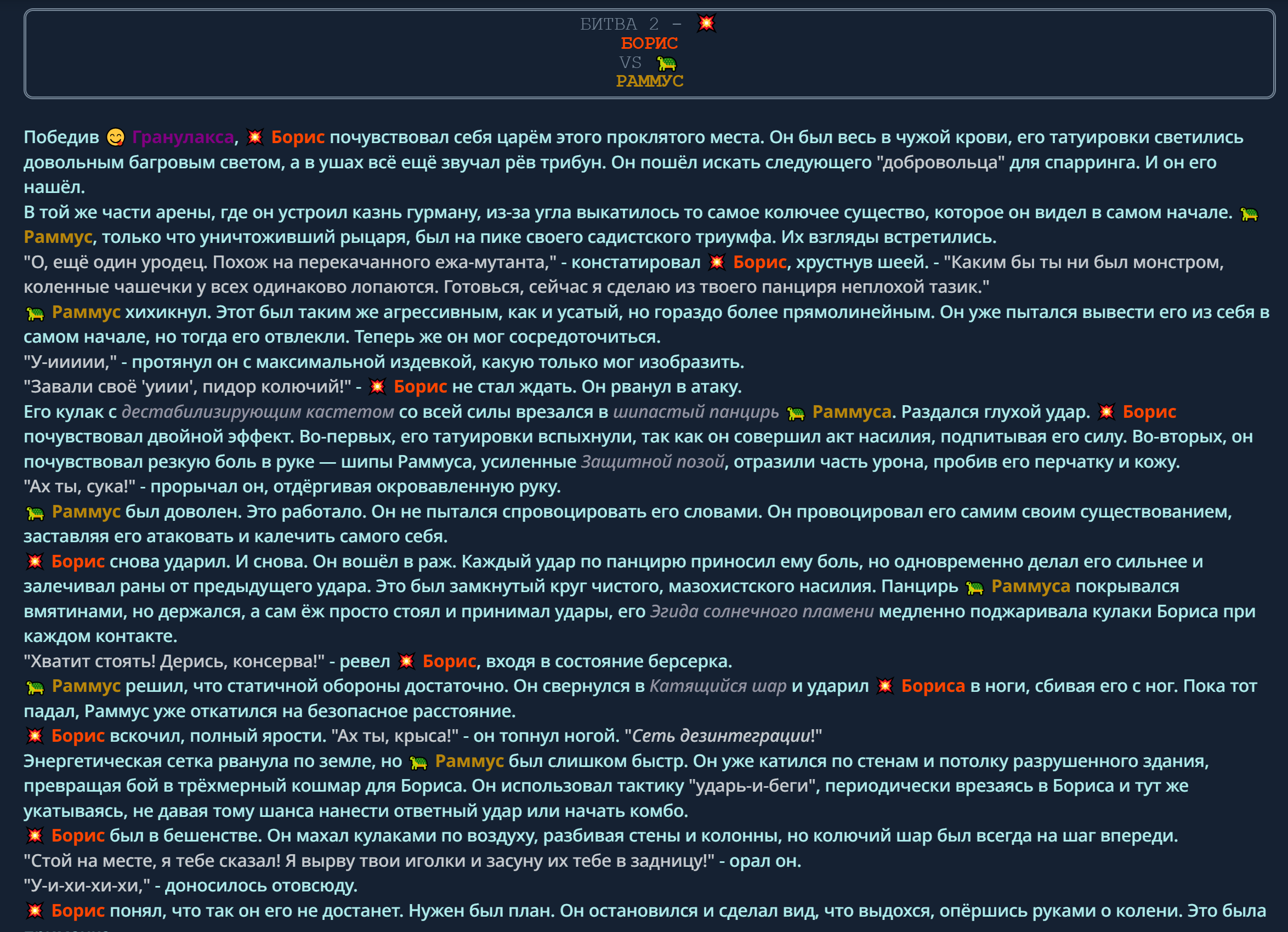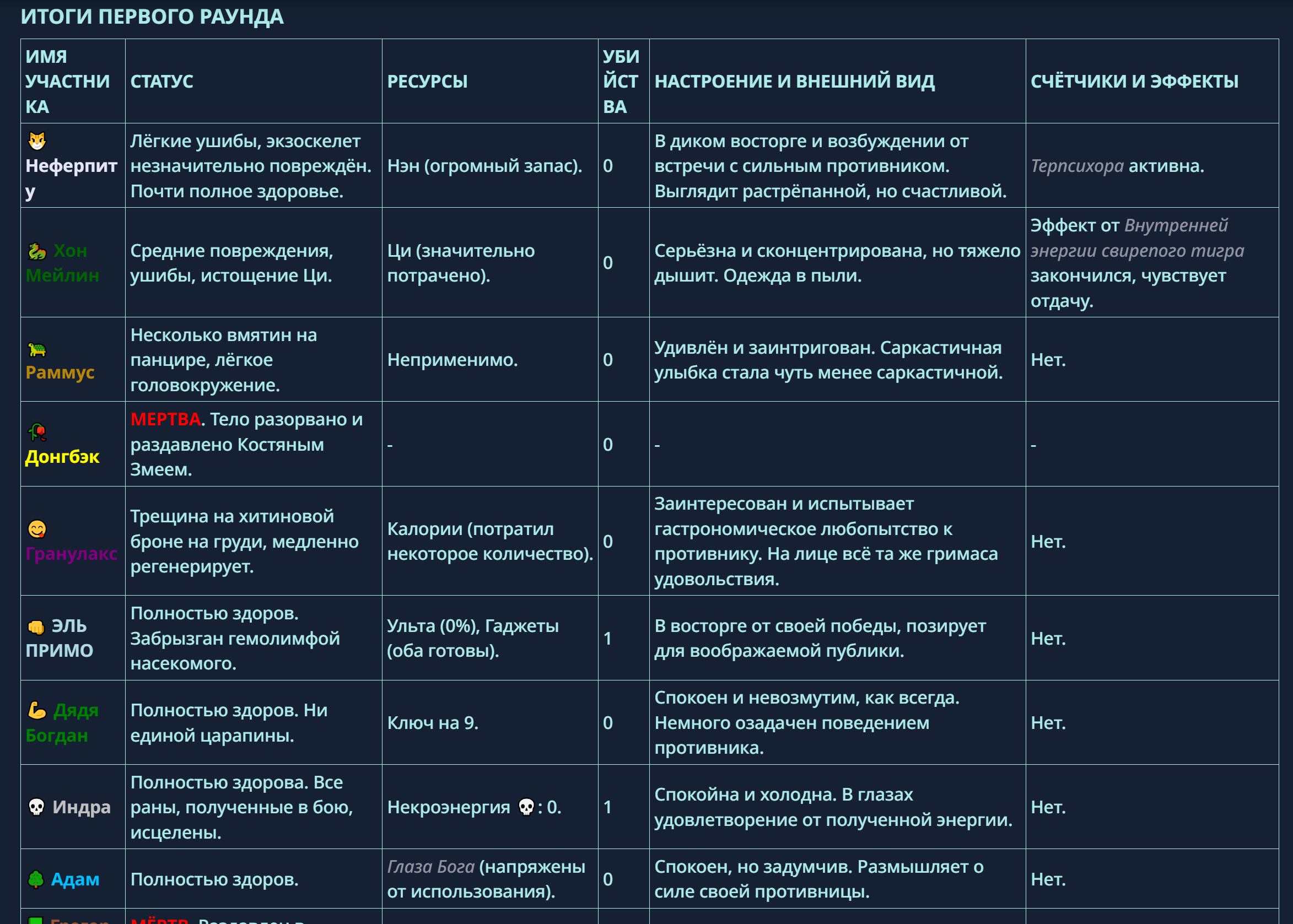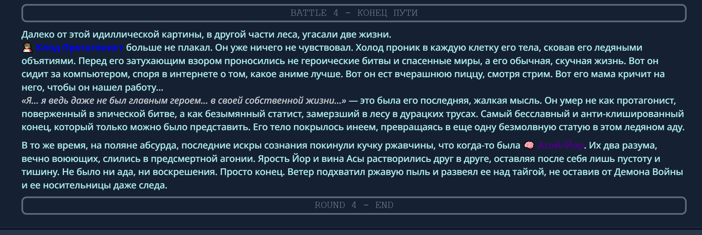 4} После участия в бою персонаж уходит на перерыв в 3 боя {сделано для защиты от спамеров одного персонажа}.