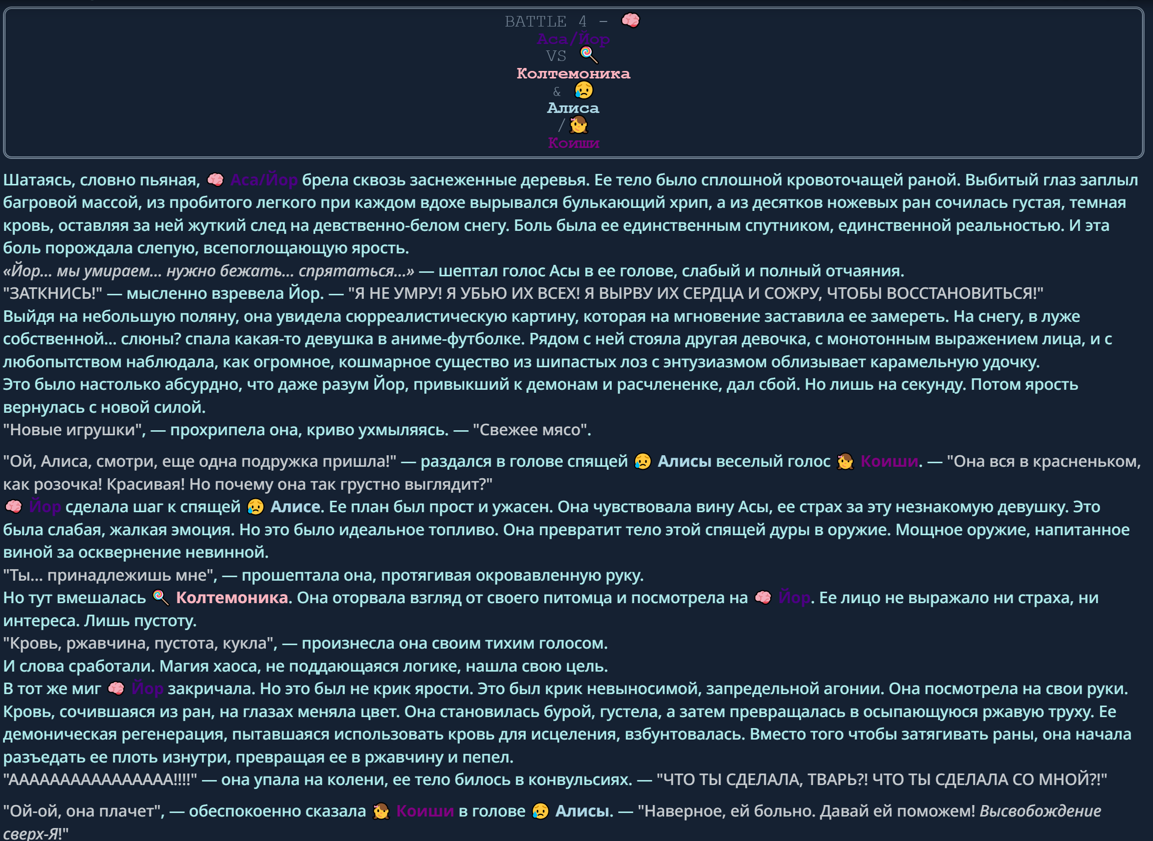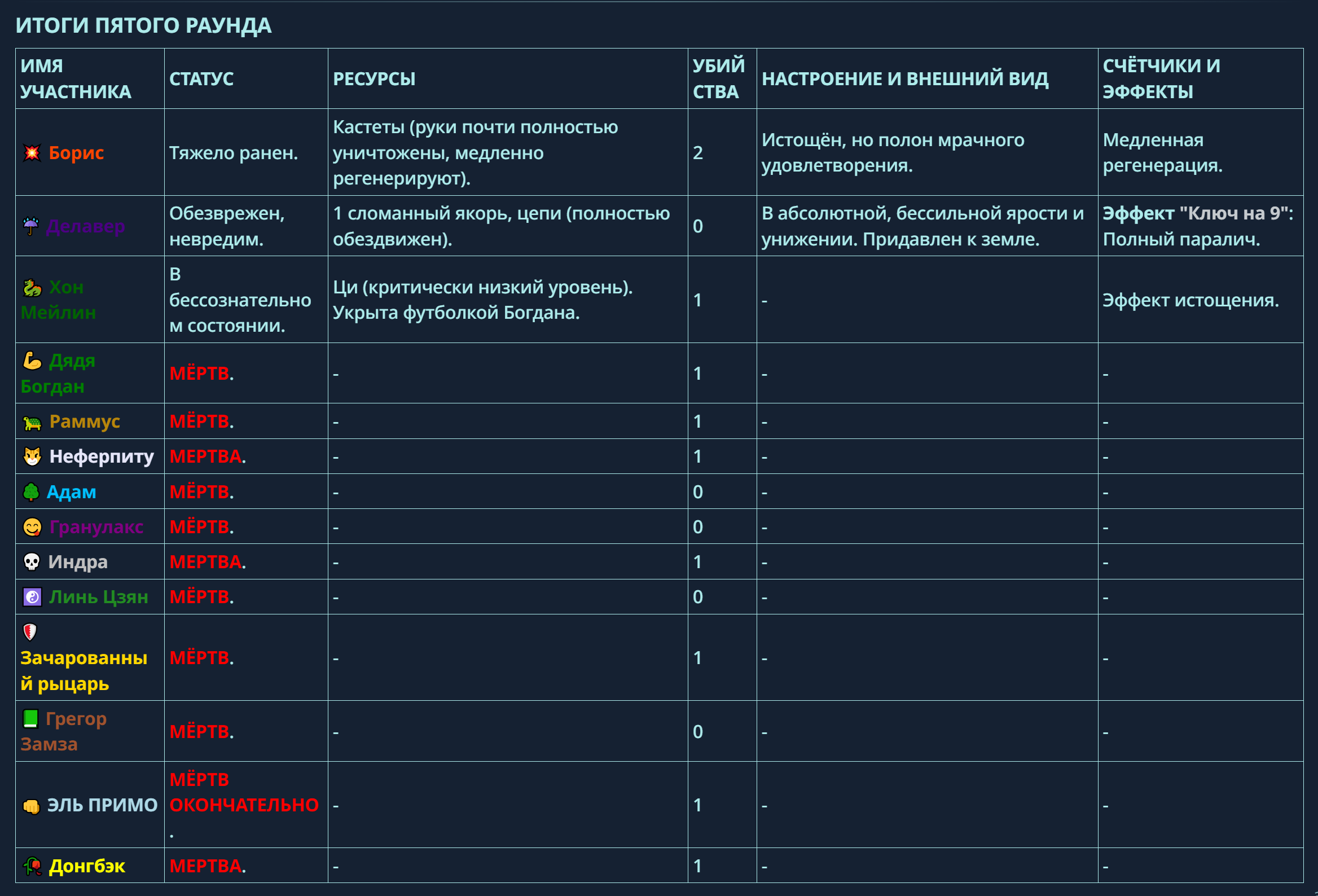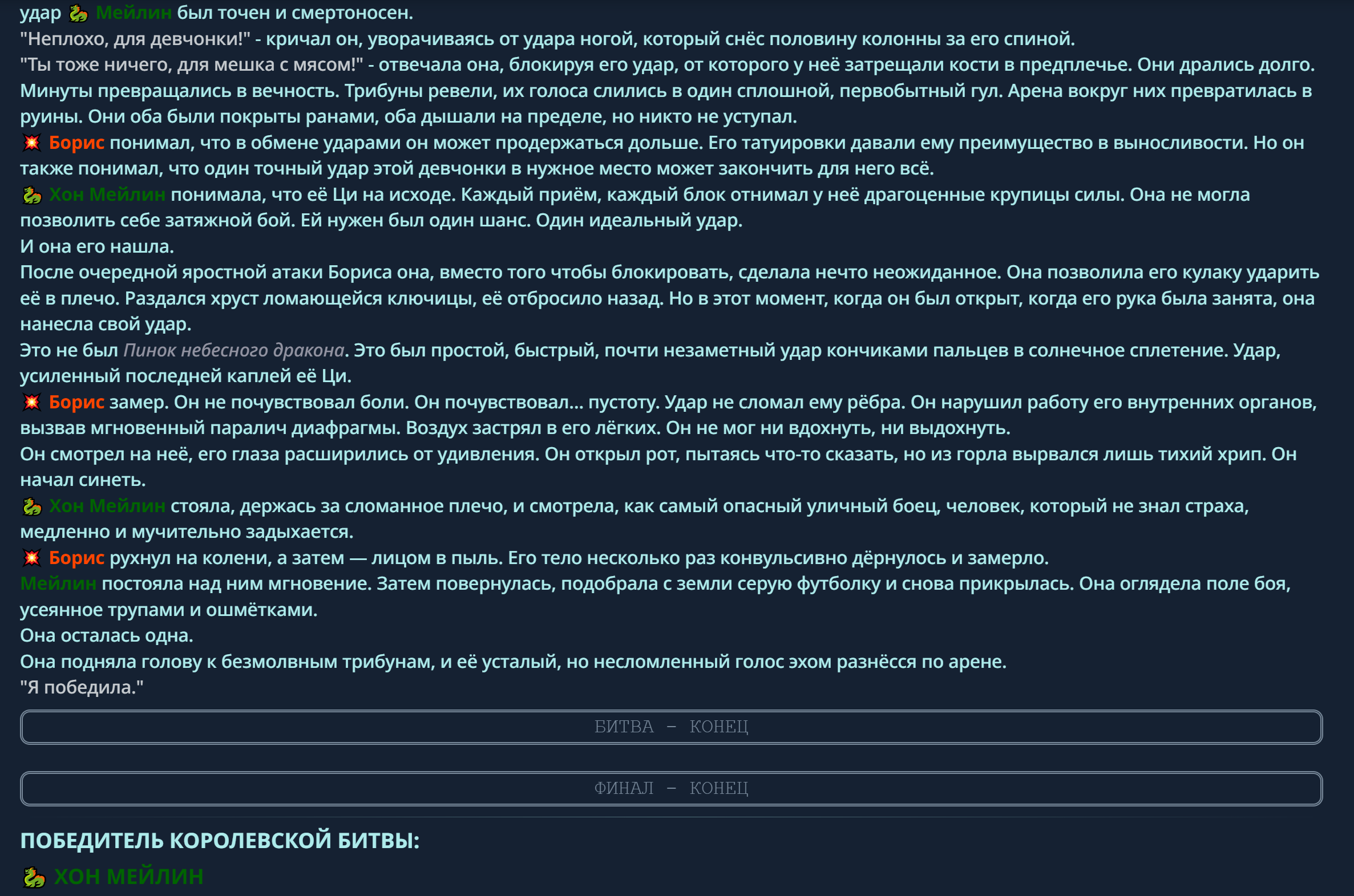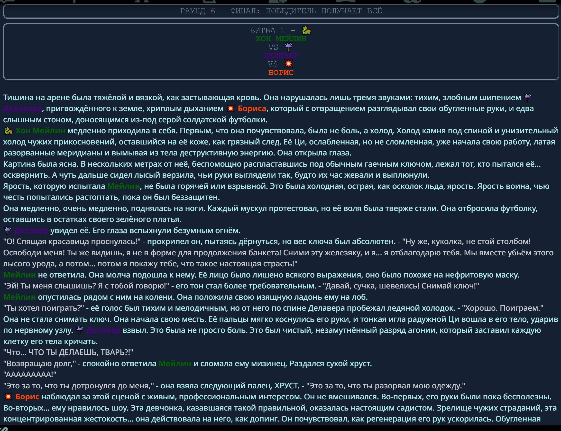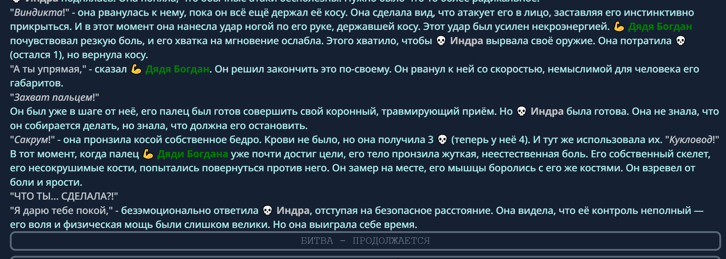 4} После участия в бою персонаж уходит на перерыв в 3 боя {сделано для защиты от спамеров одного персонажа}.