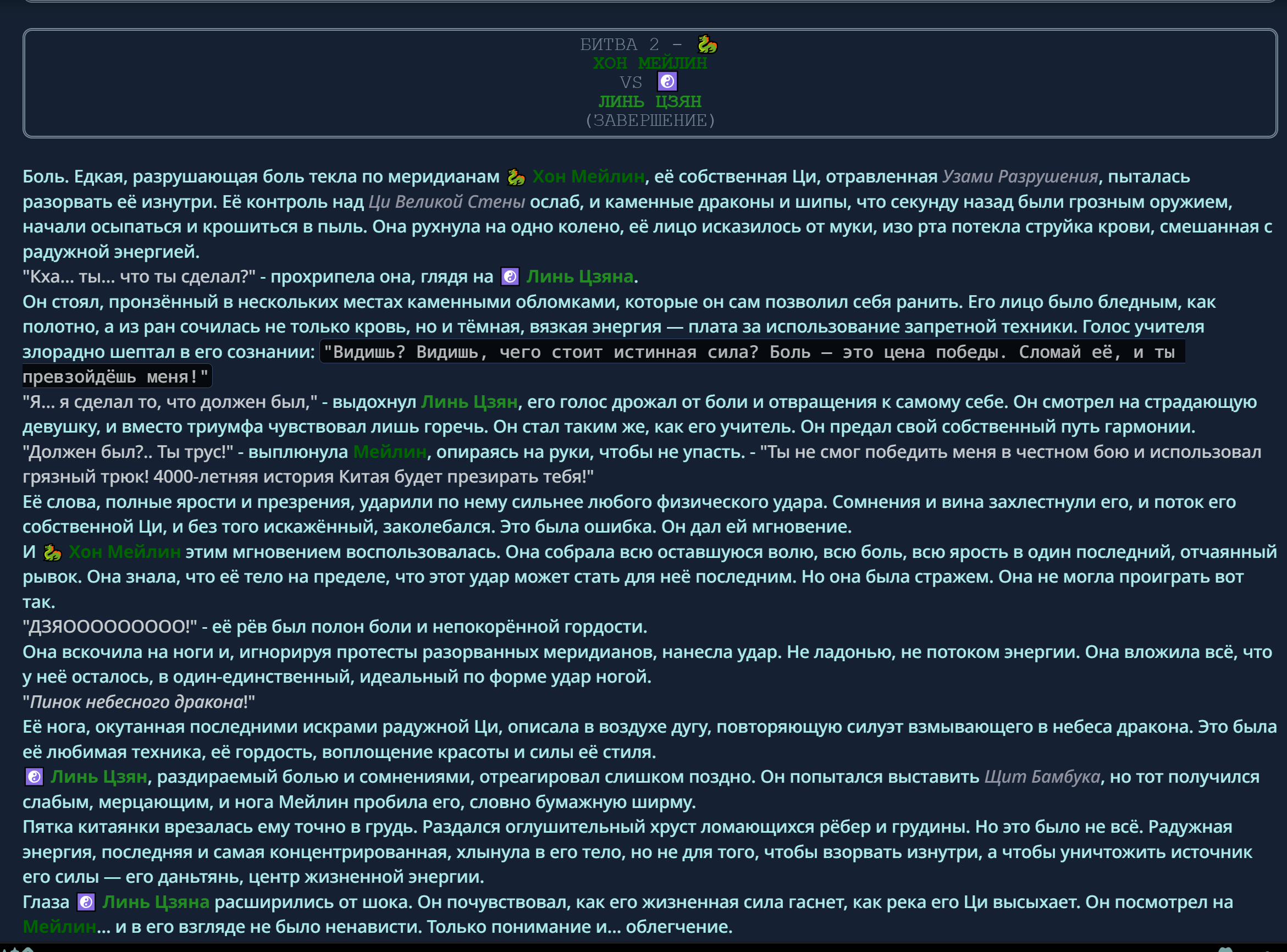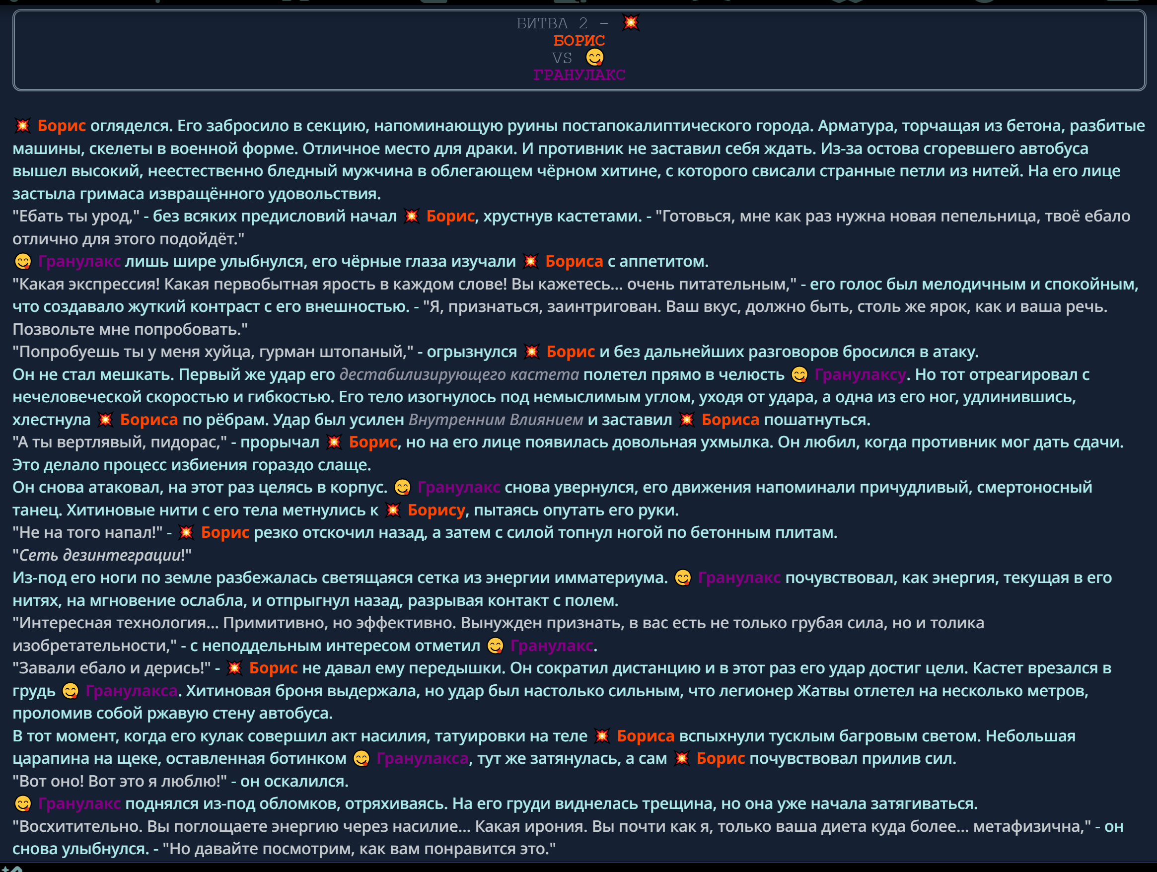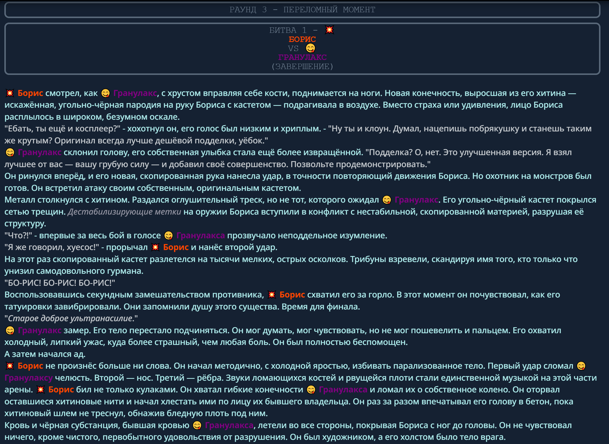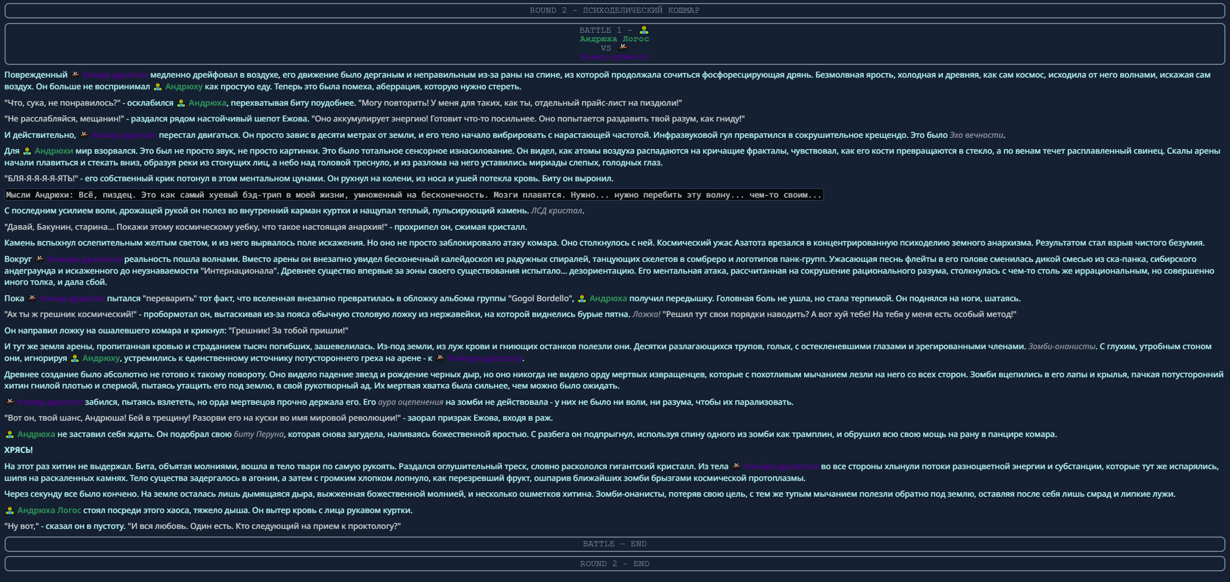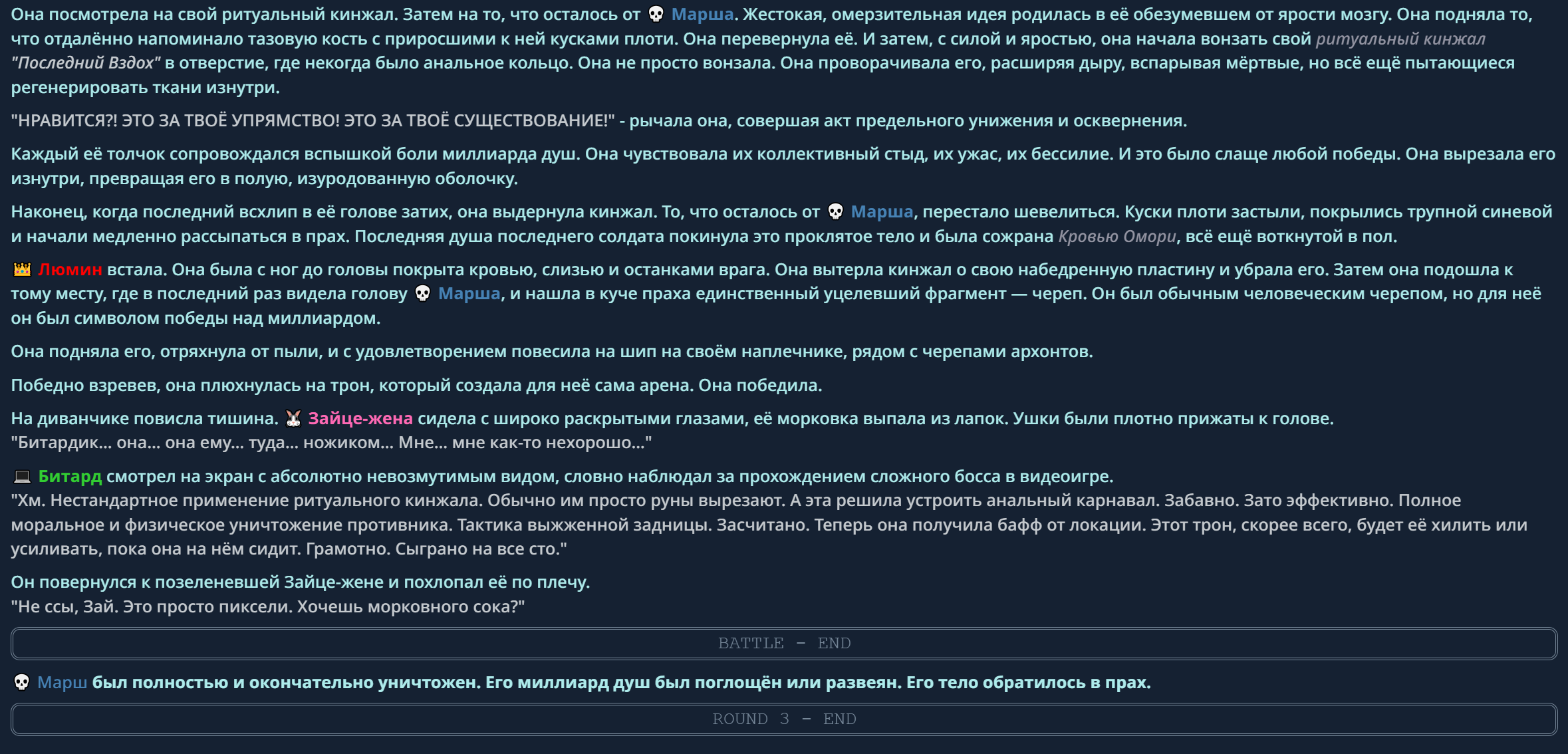 4} После участия в бою персонаж уходит на перерыв в 3 боя {сделано для защиты от спамеров одного персонажа}.