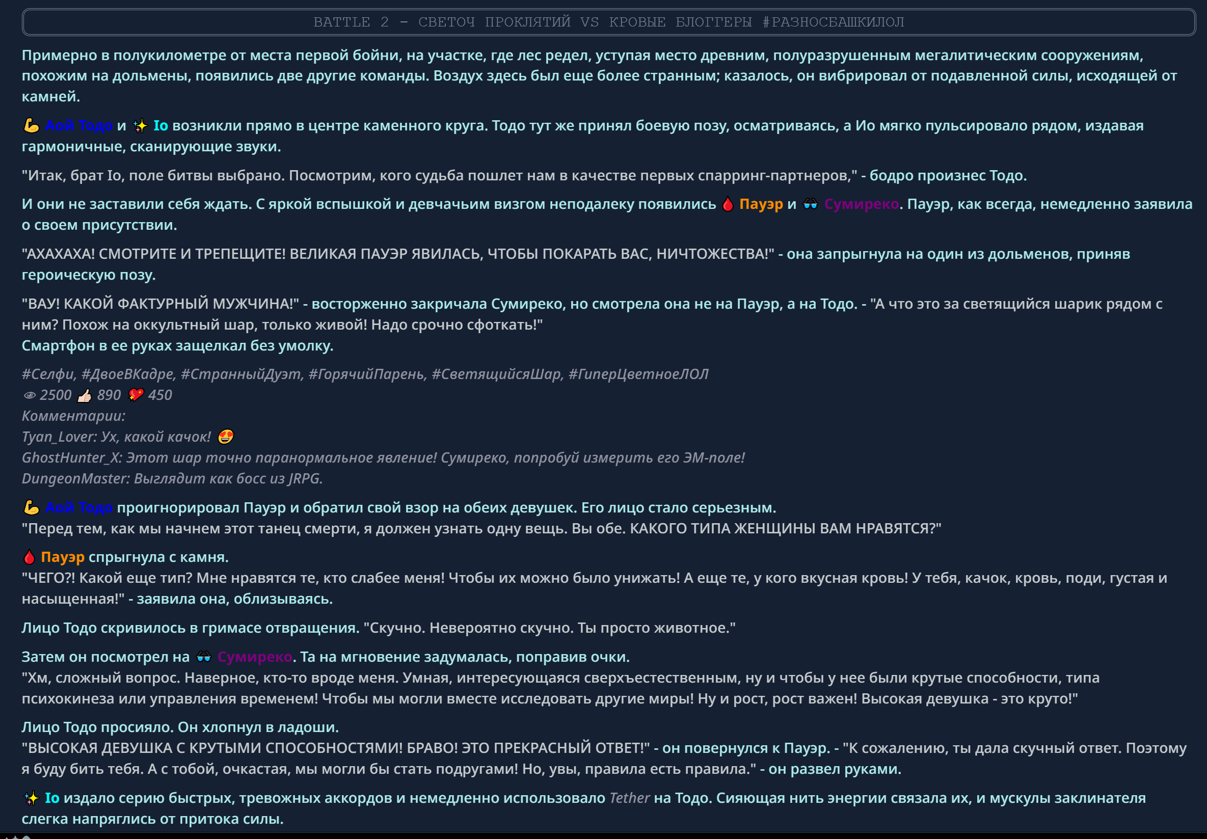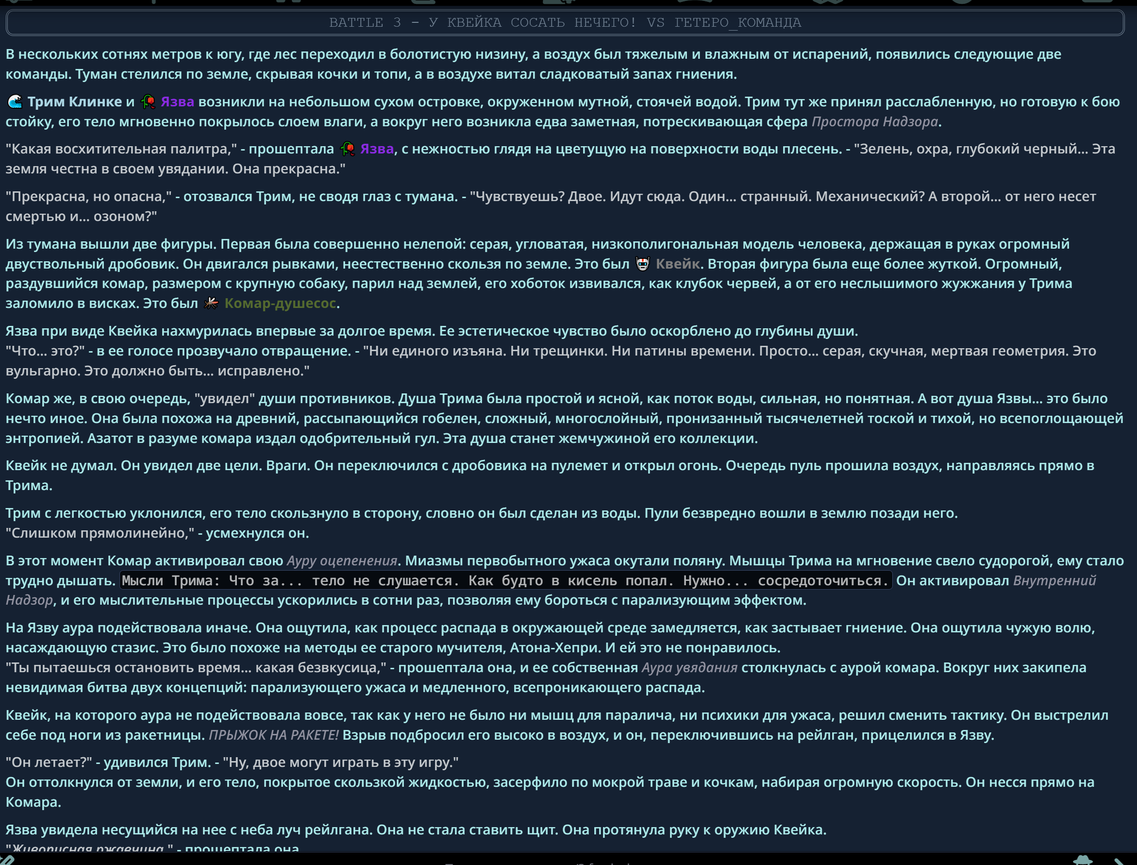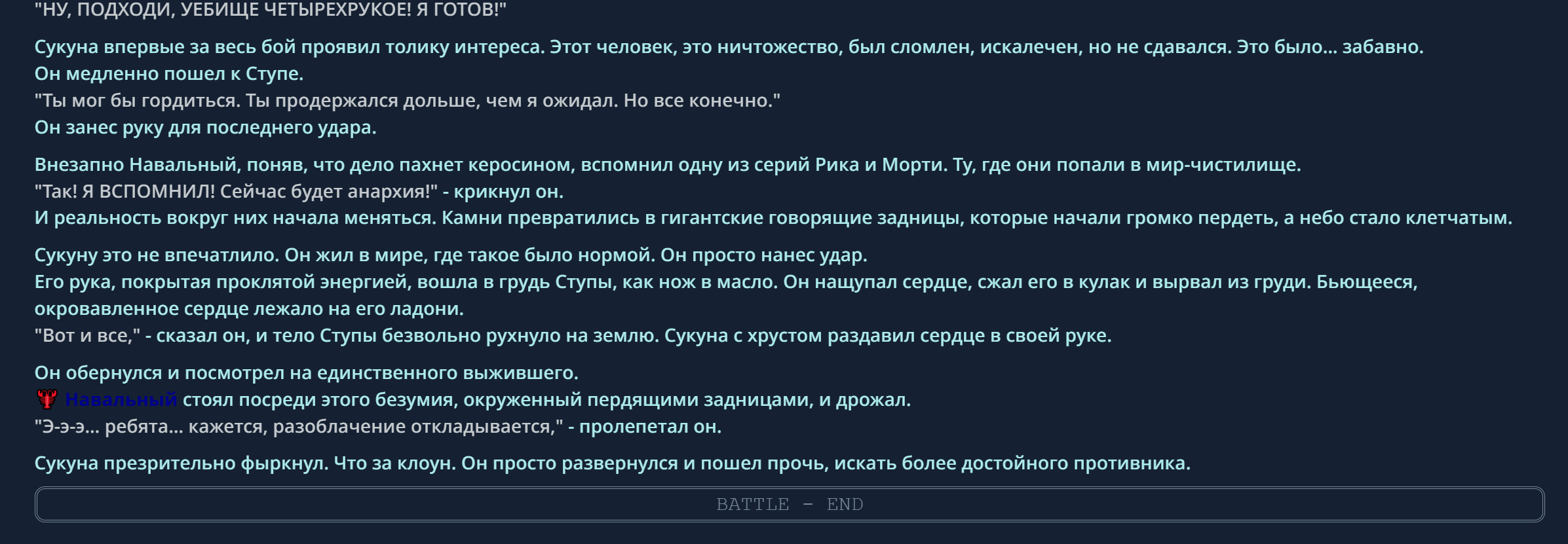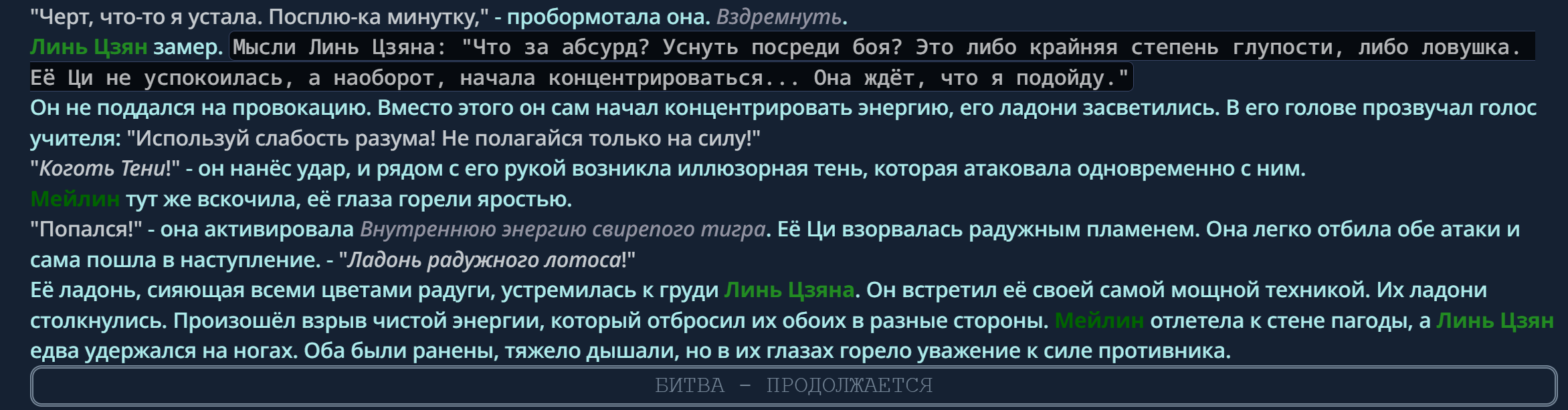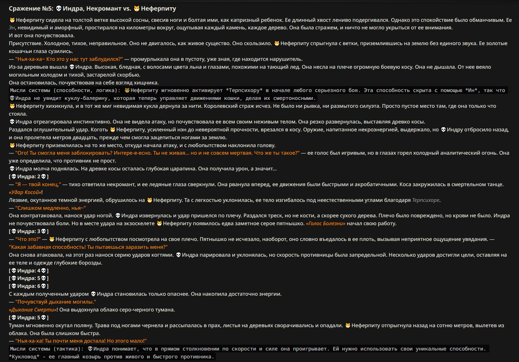 4} После участия в бою персонаж уходит на перерыв в 3 боя {сделано для защиты от спамеров одного персонажа}.