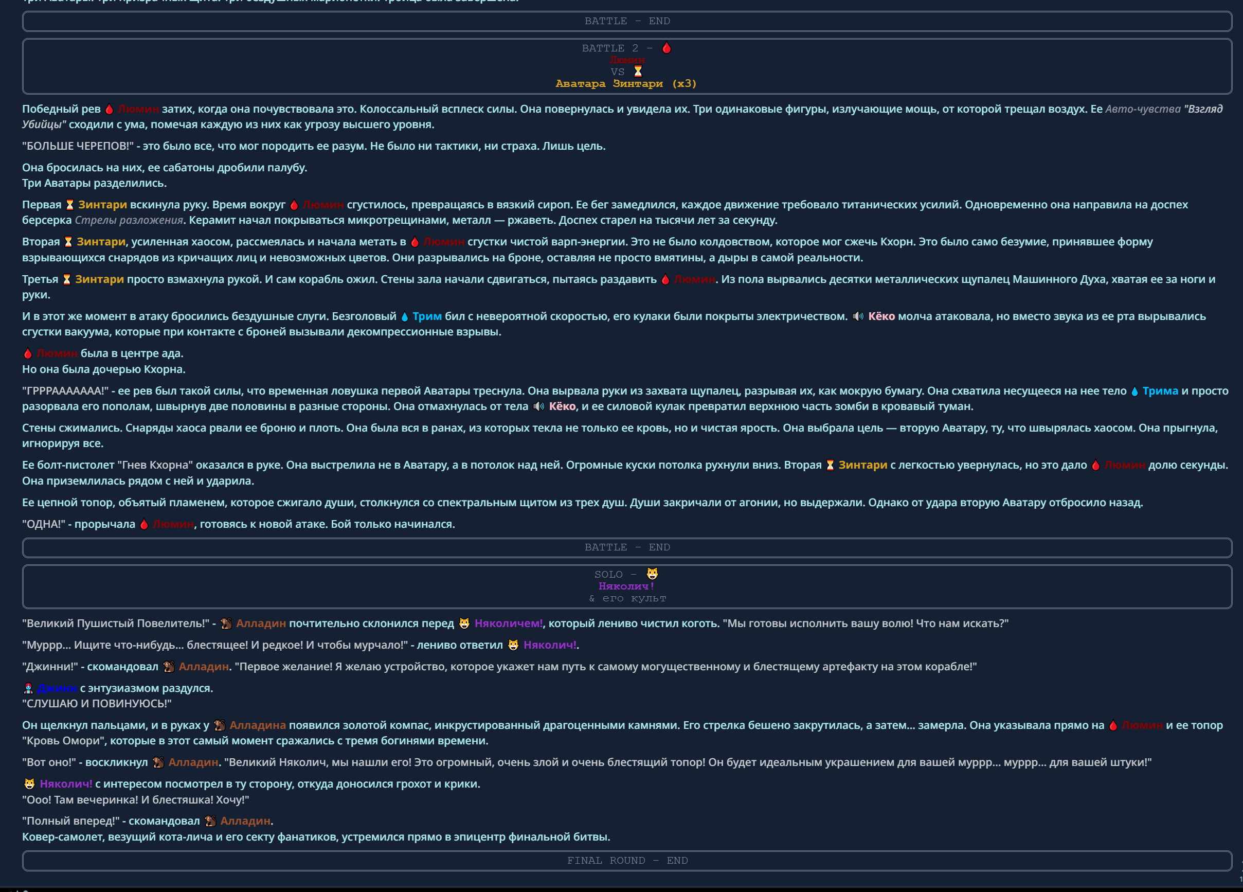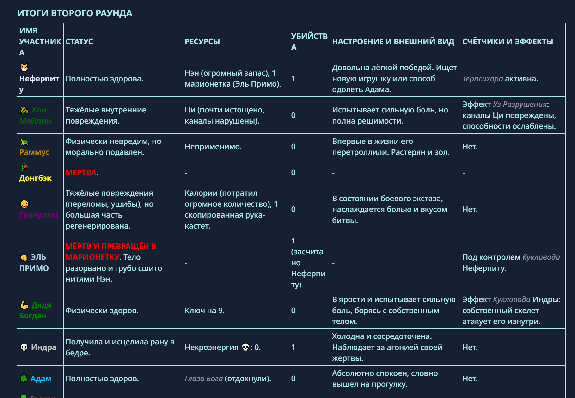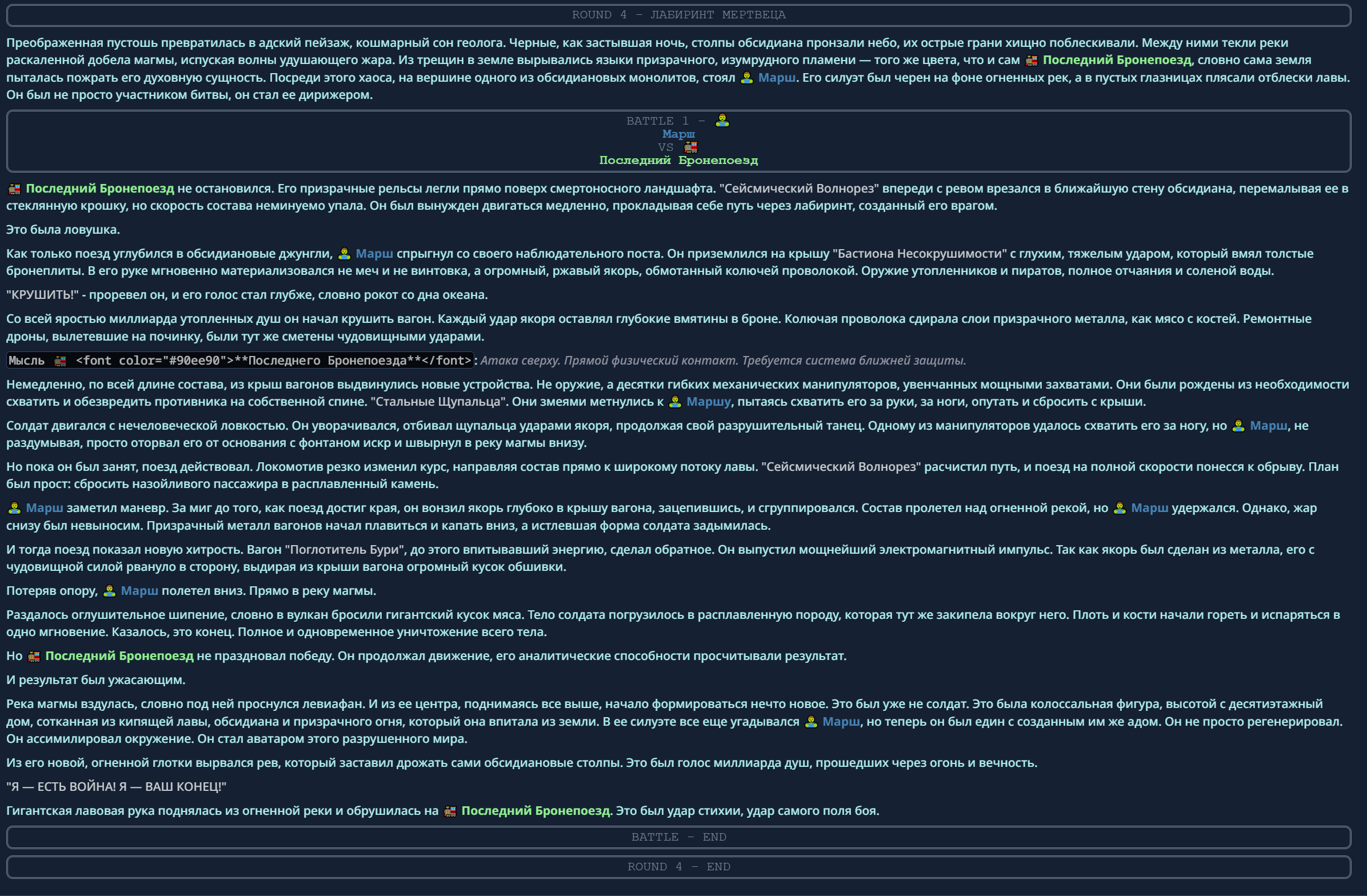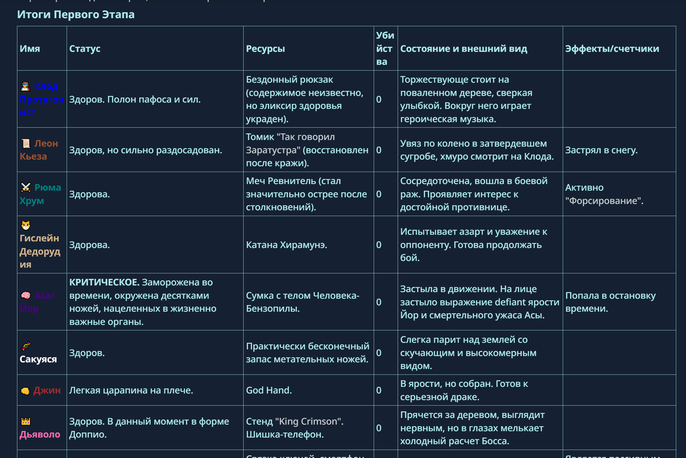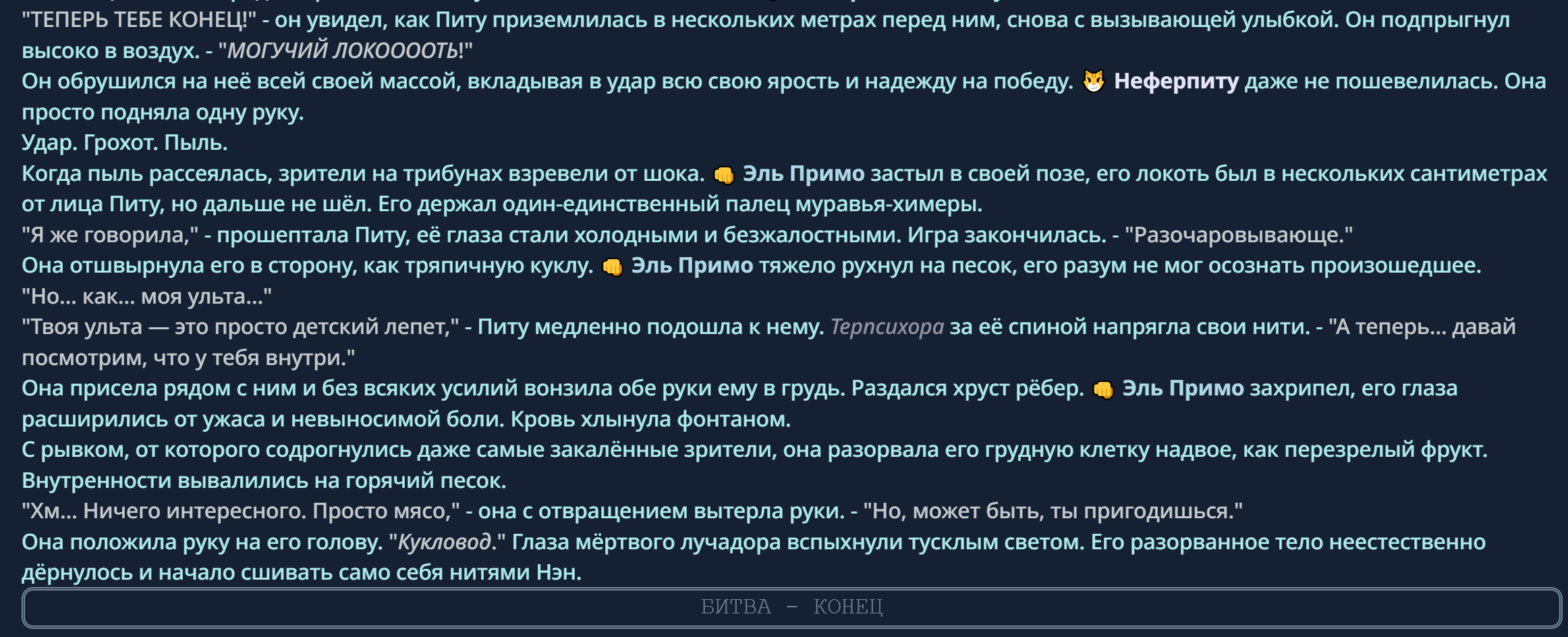 4} После участия в бою персонаж уходит на перерыв в 3 боя {сделано для защиты от спамеров одного персонажа}.