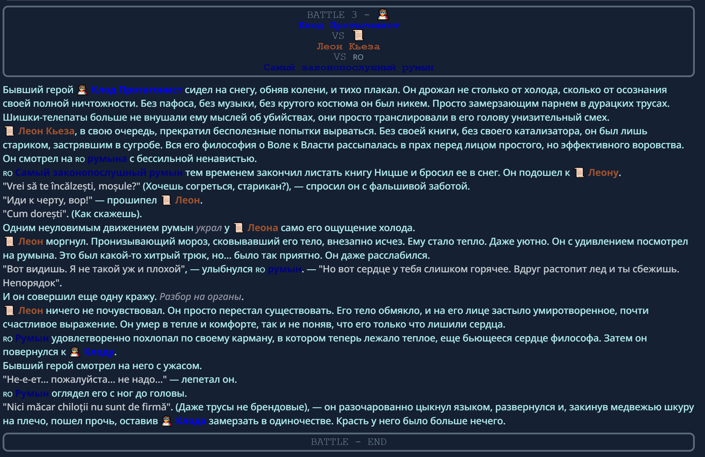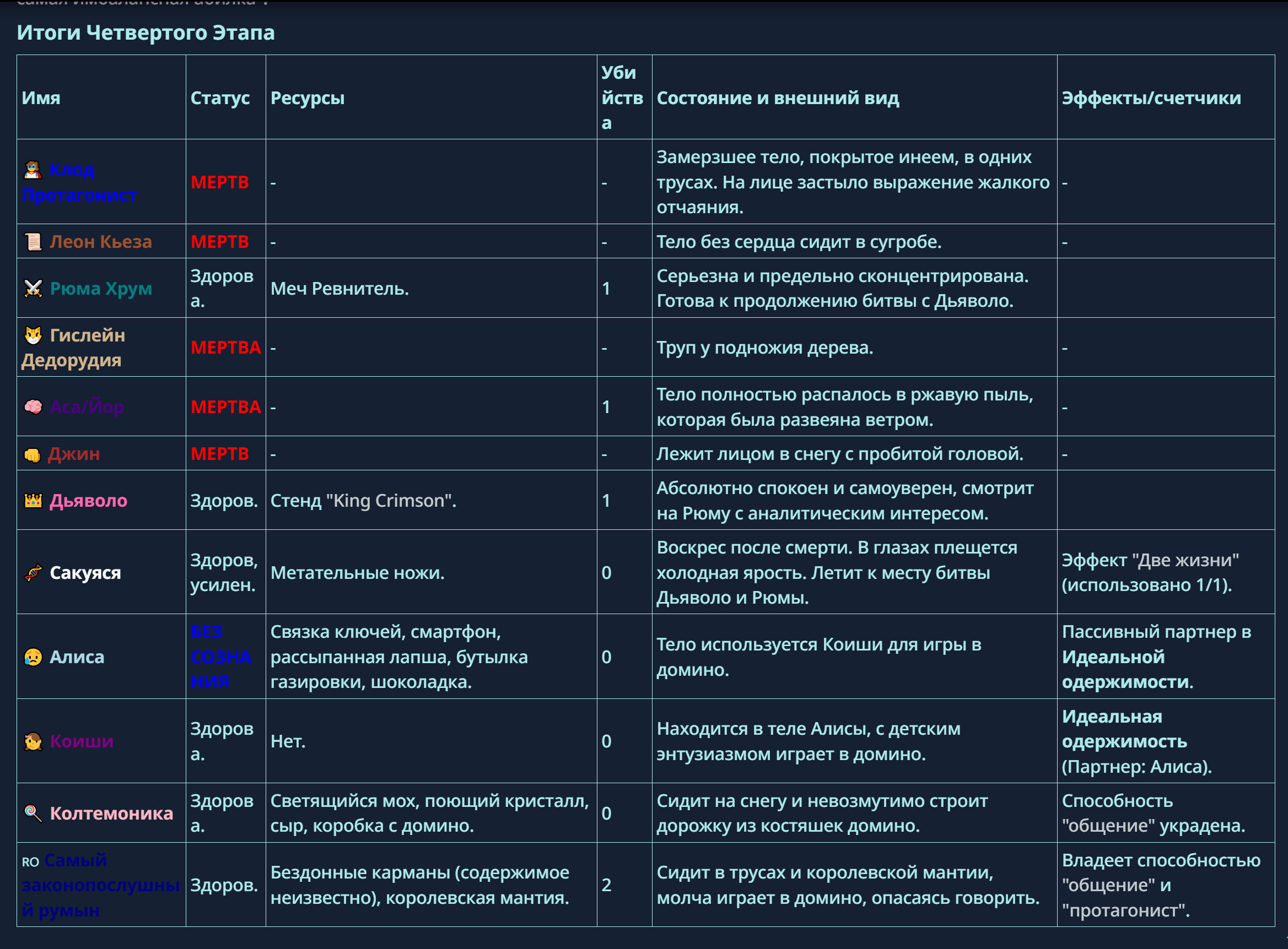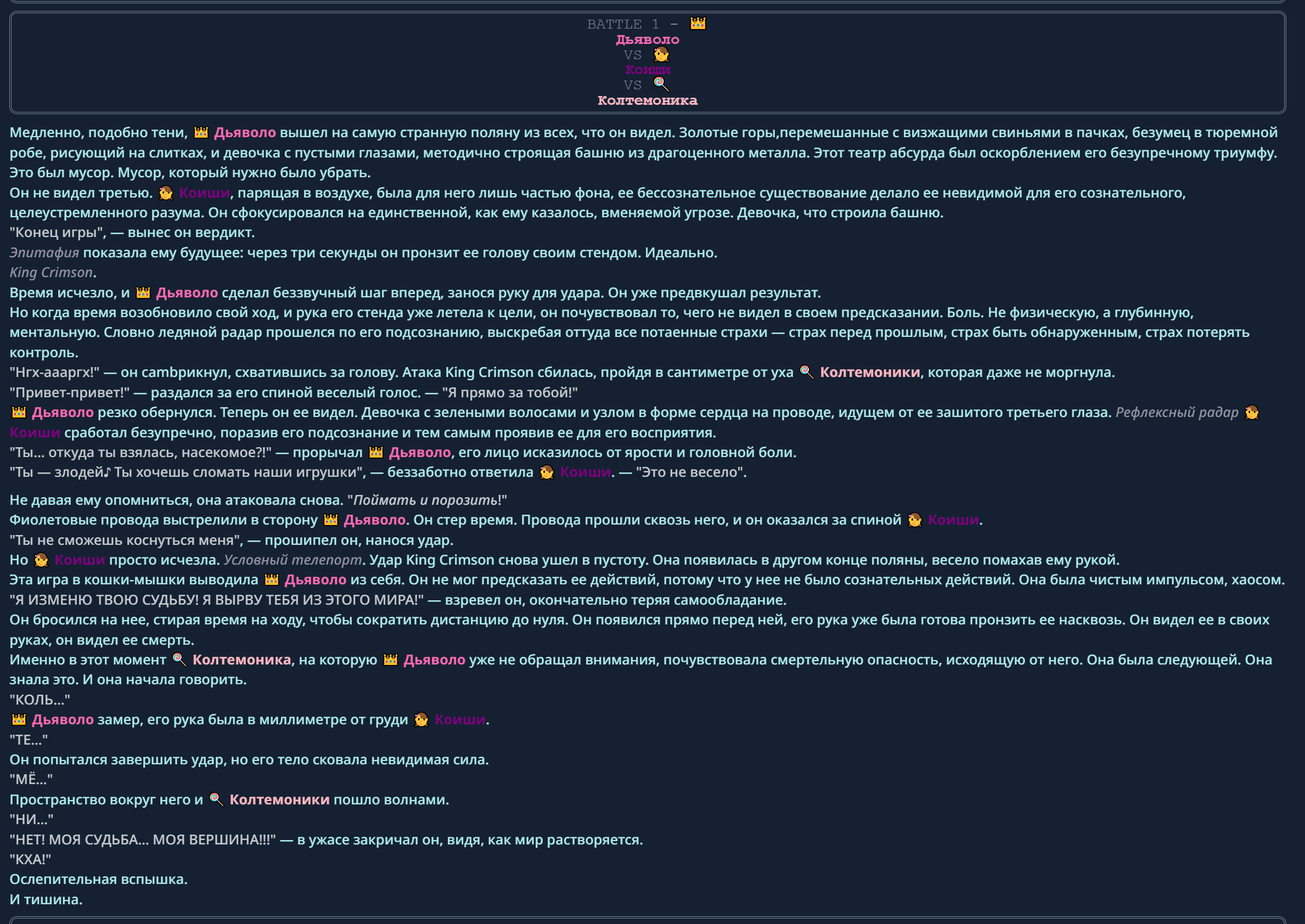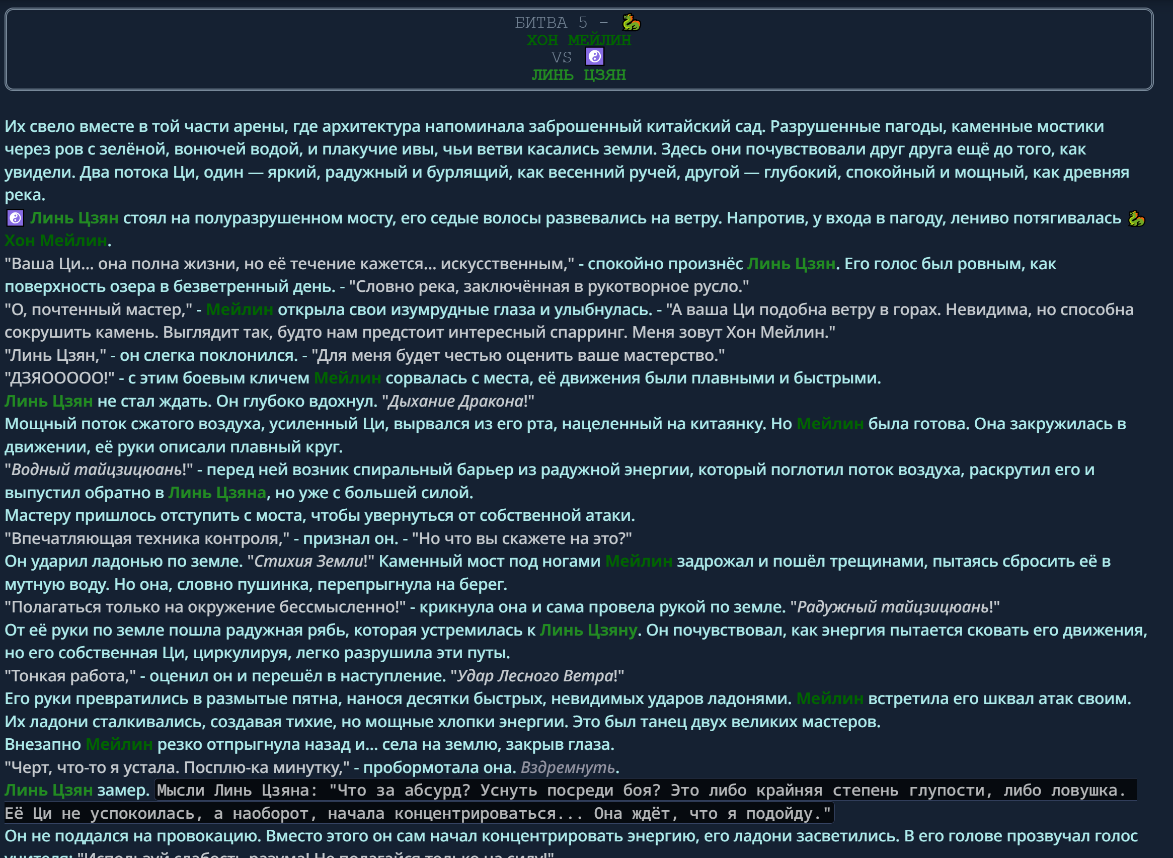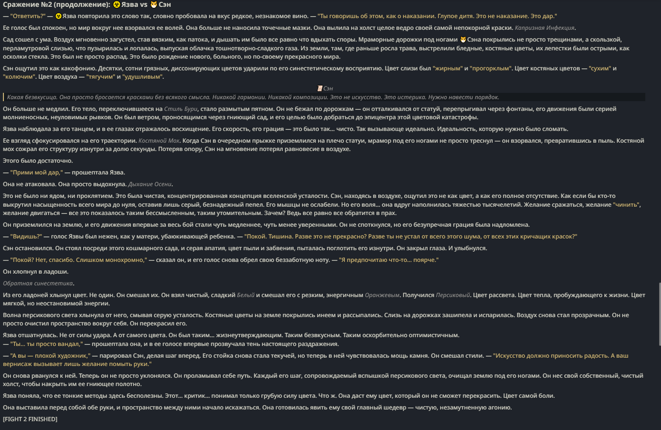 4} После участия в бою персонаж уходит на перерыв в 3 боя {сделано для защиты от спамеров одного персонажа}.