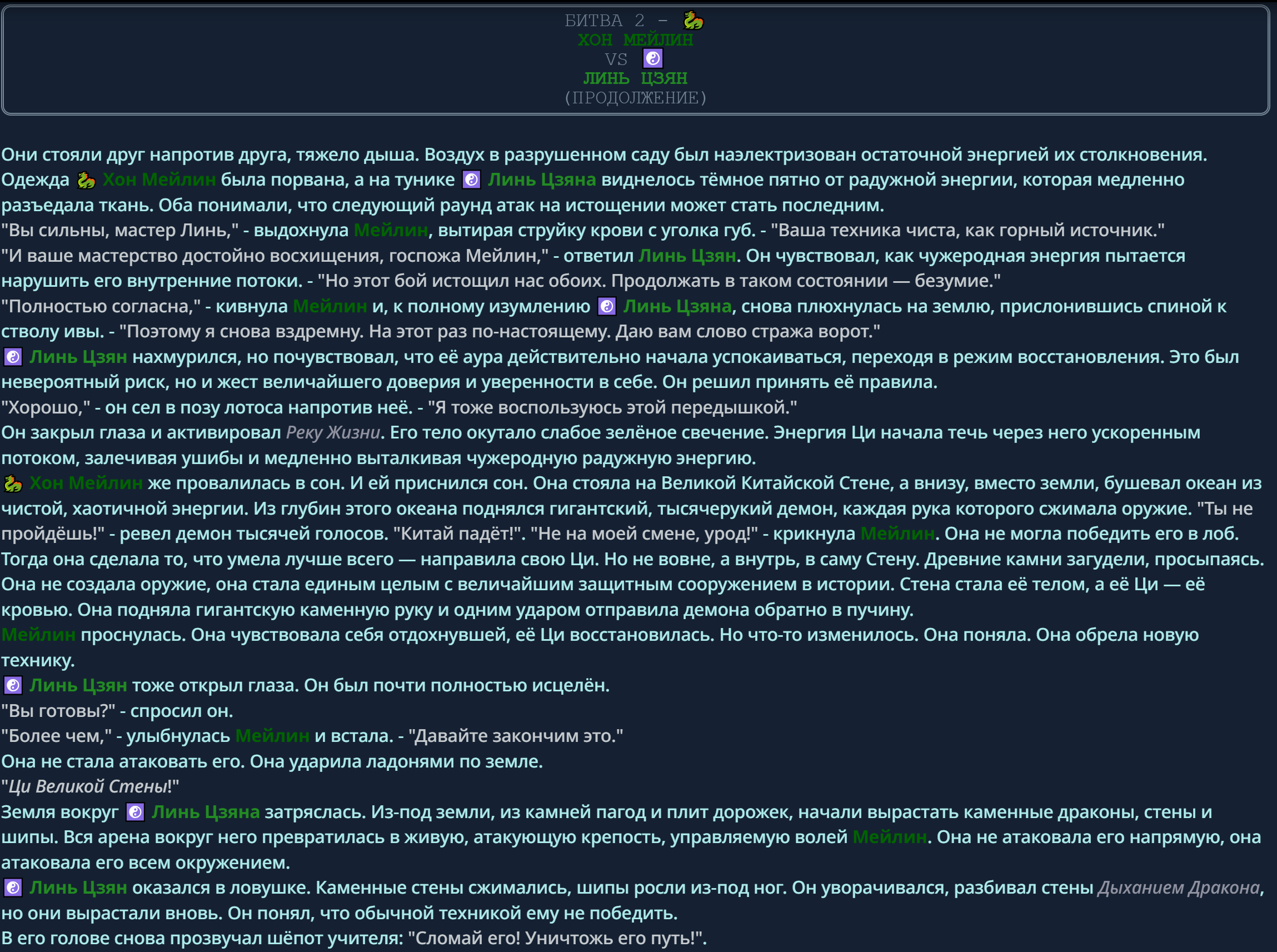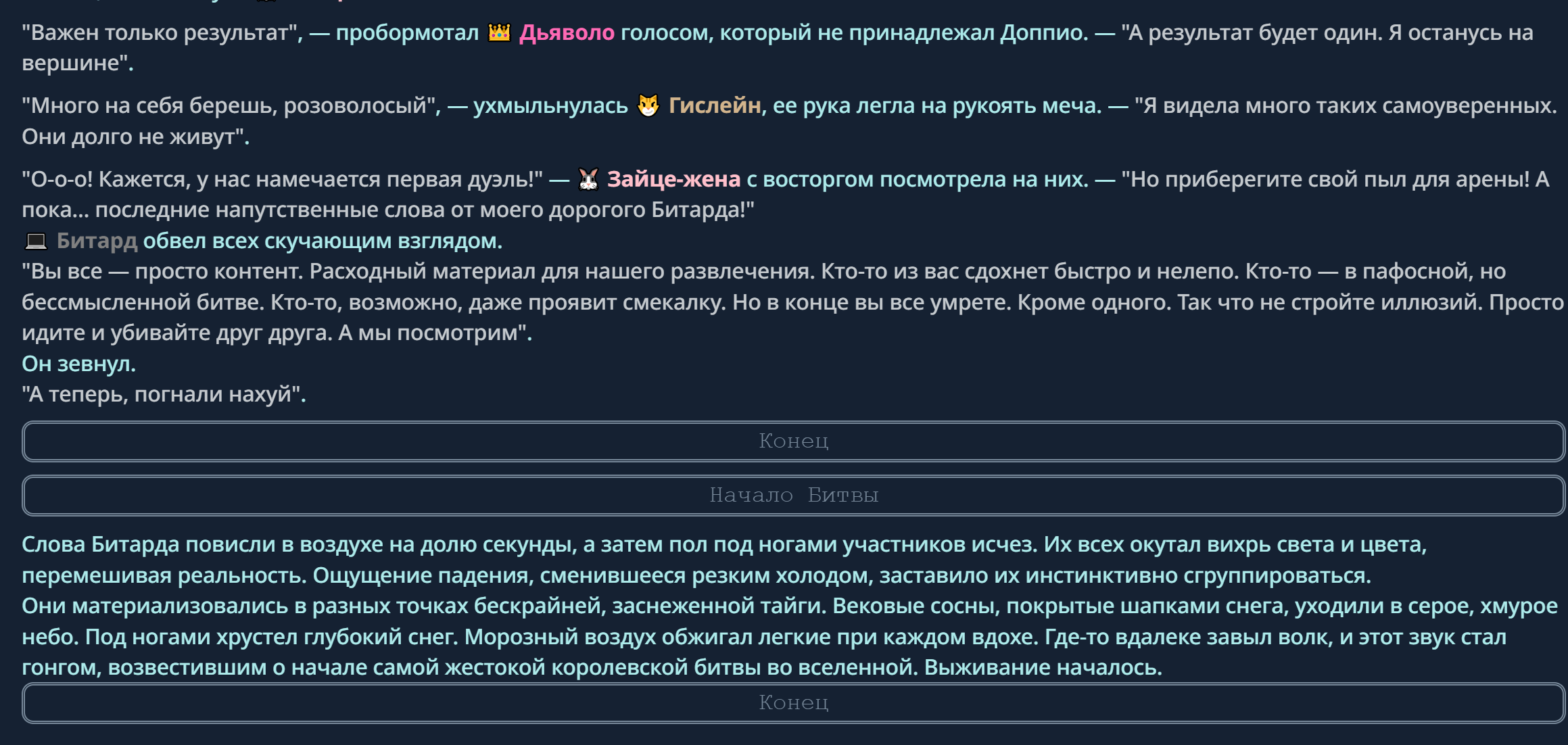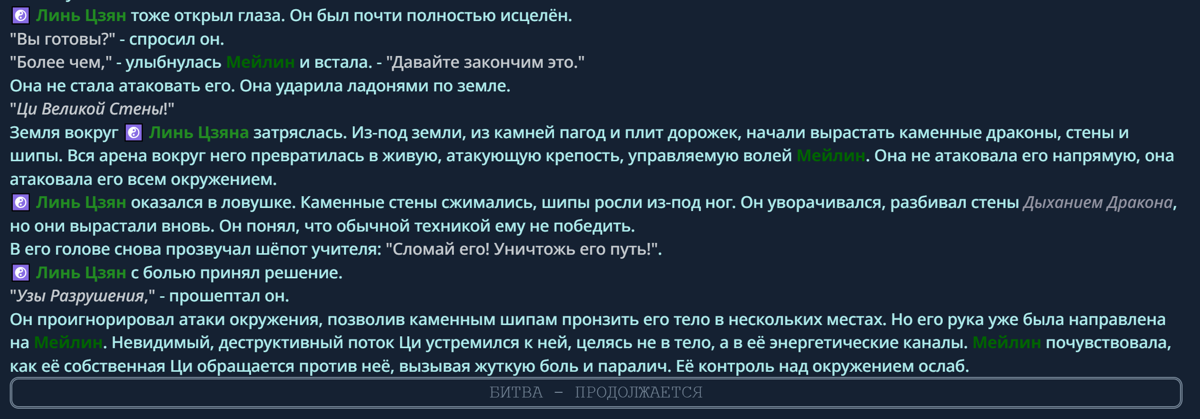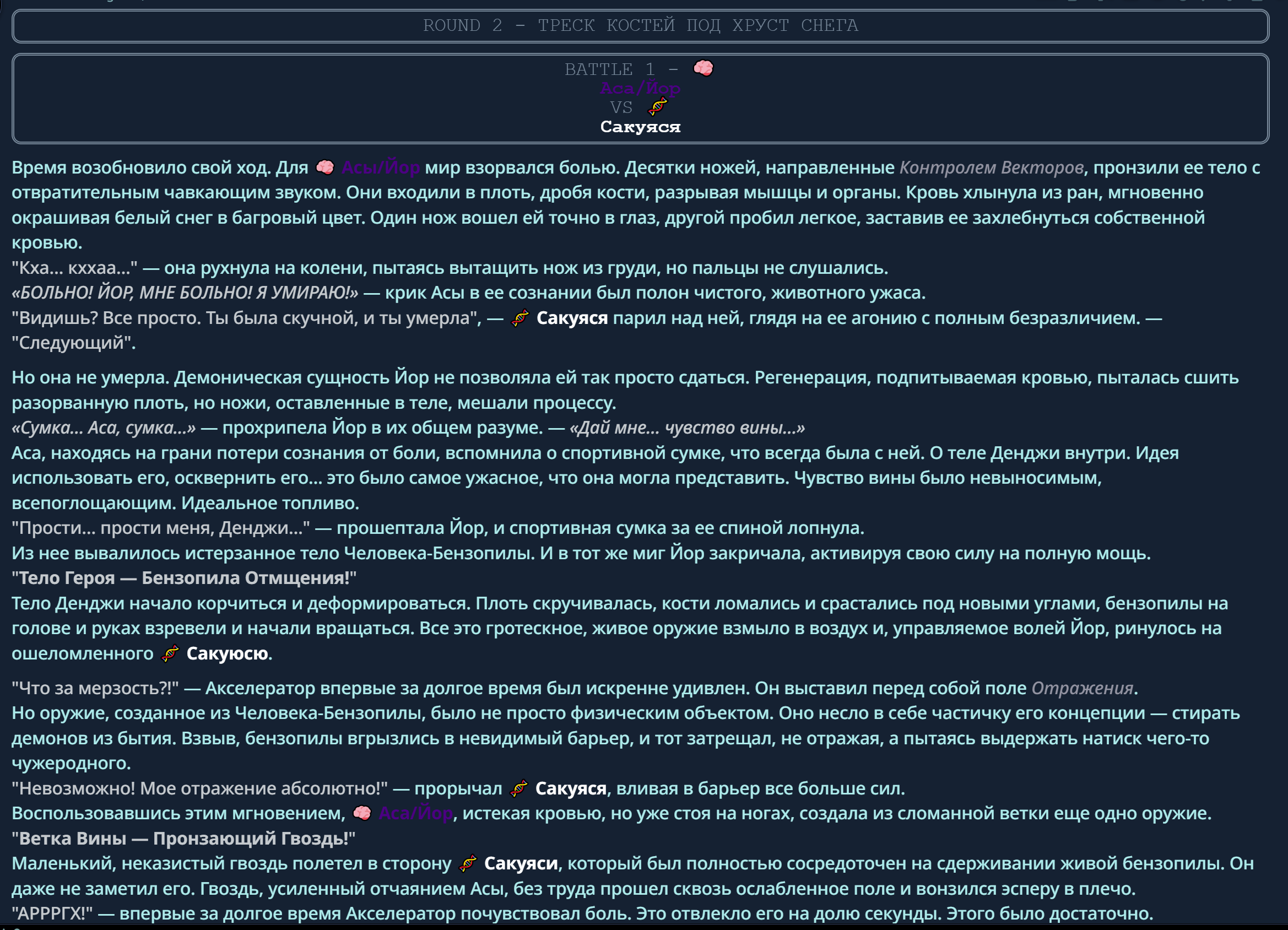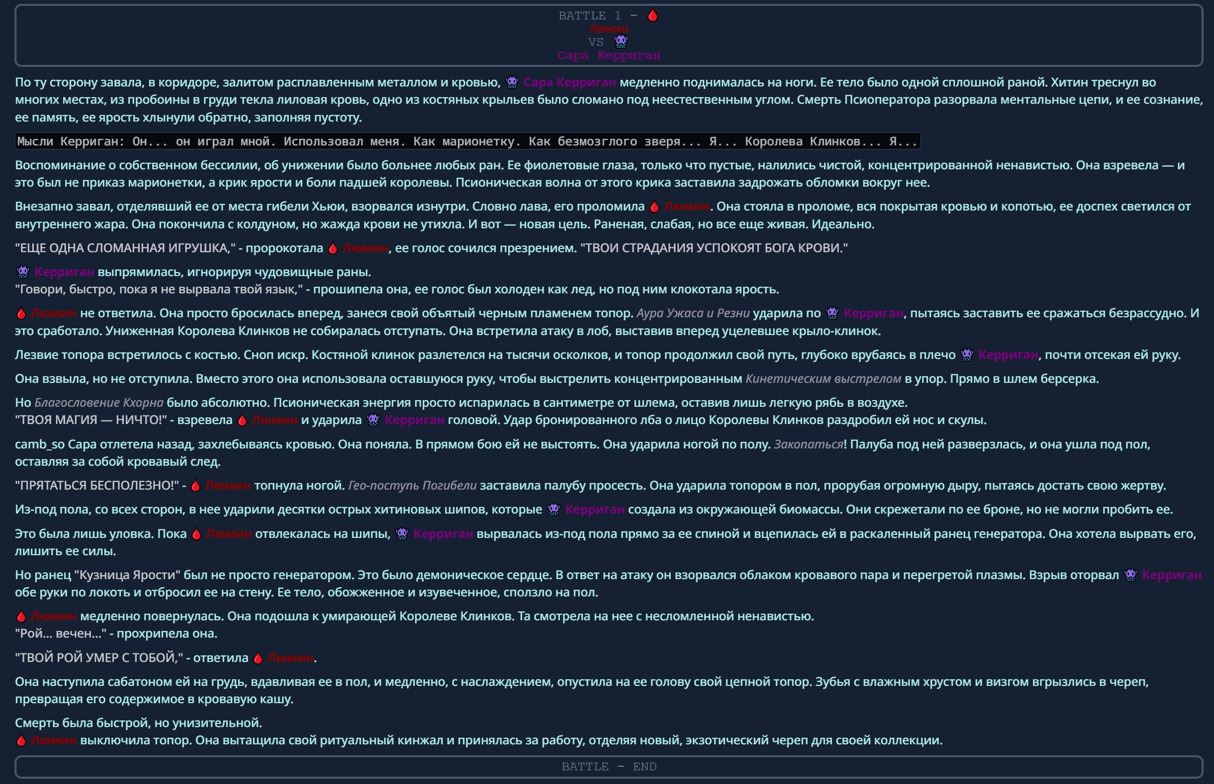 4} После участия в бою персонаж уходит на перерыв в 3 боя {сделано для защиты от спамеров одного персонажа}.