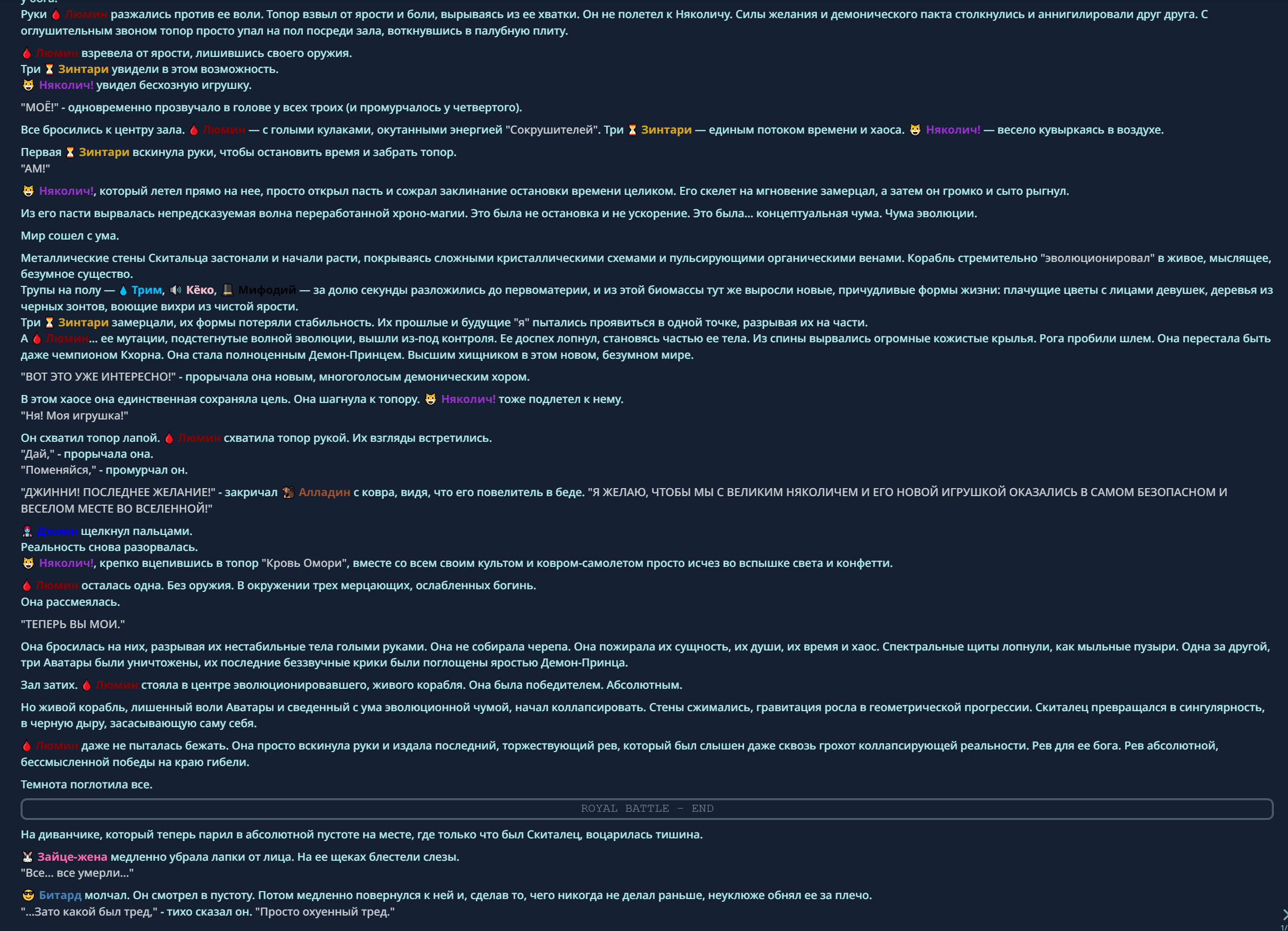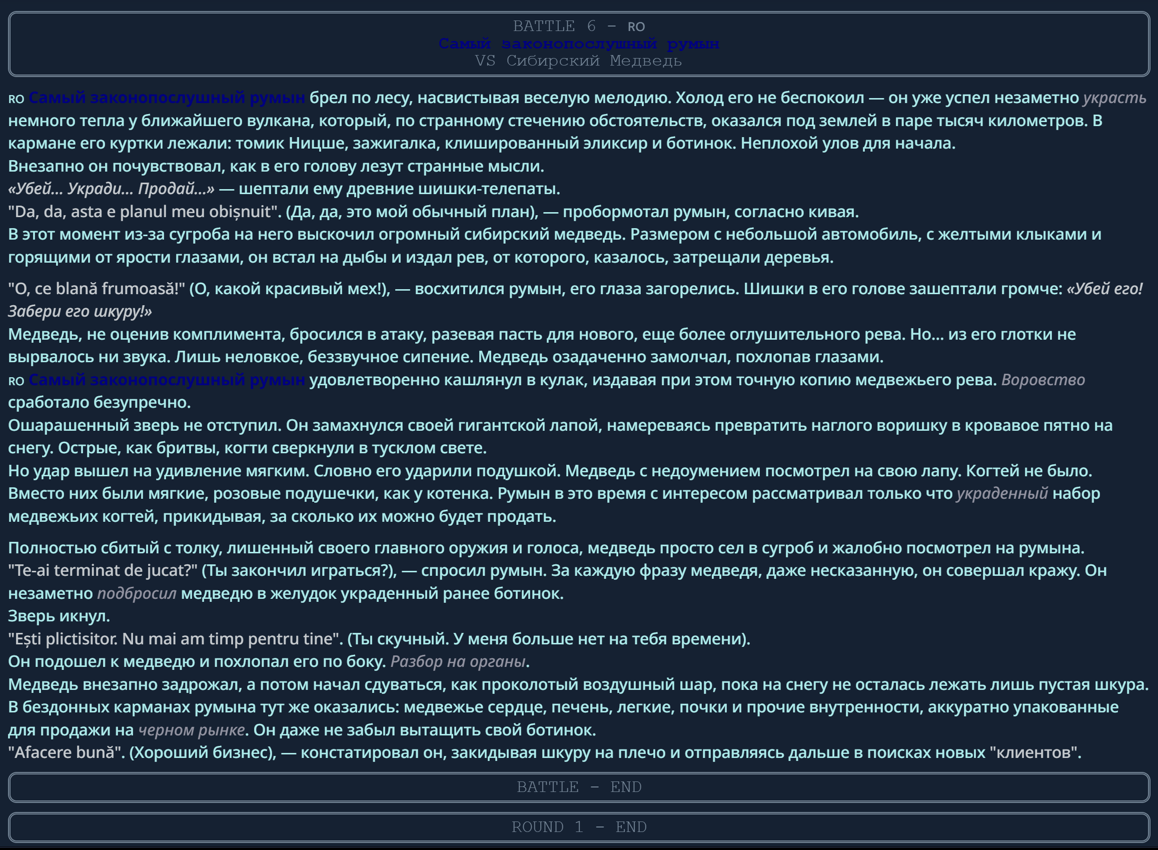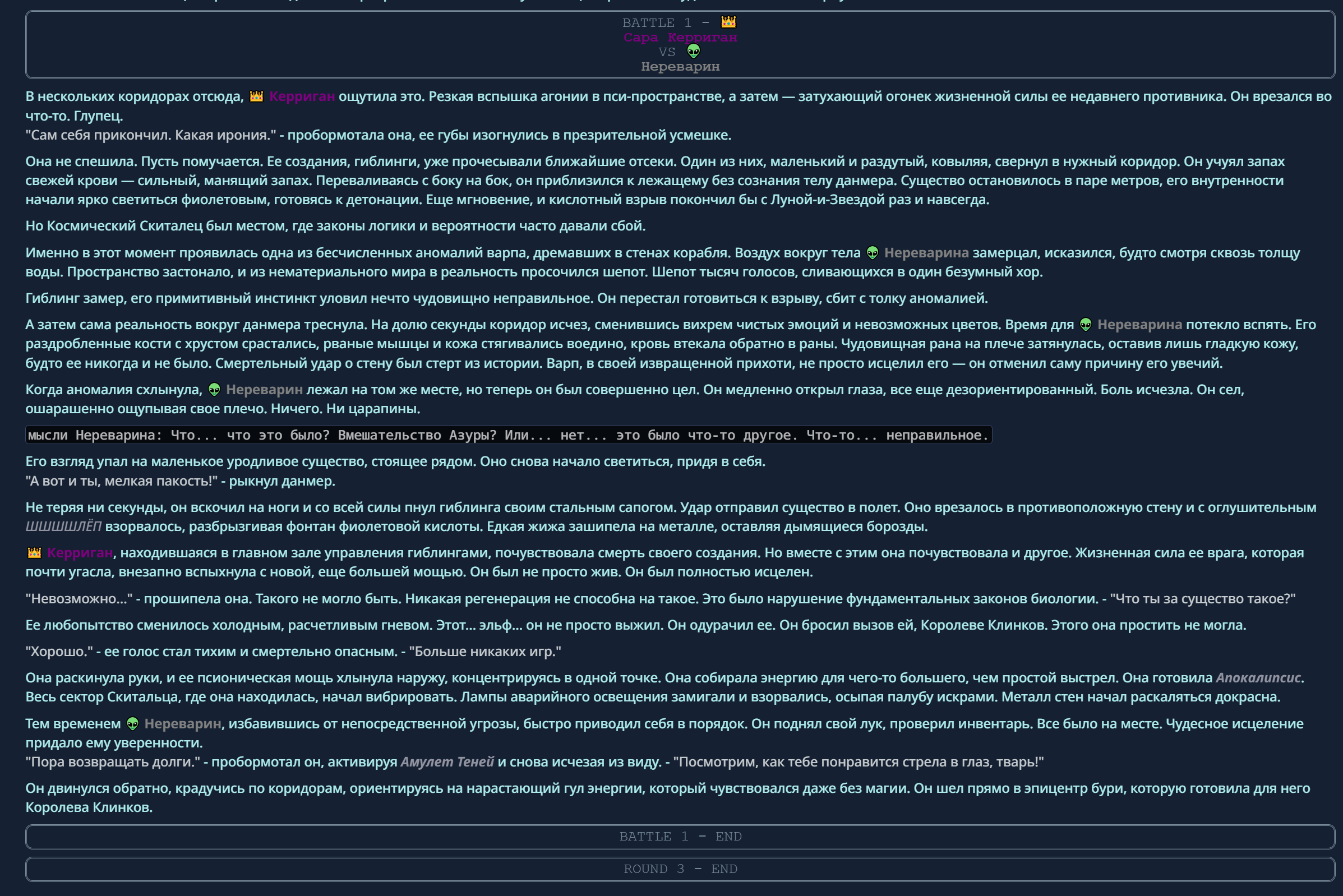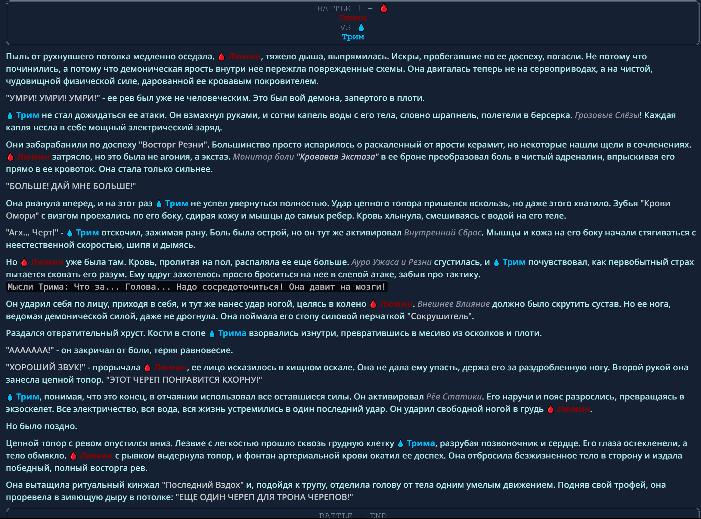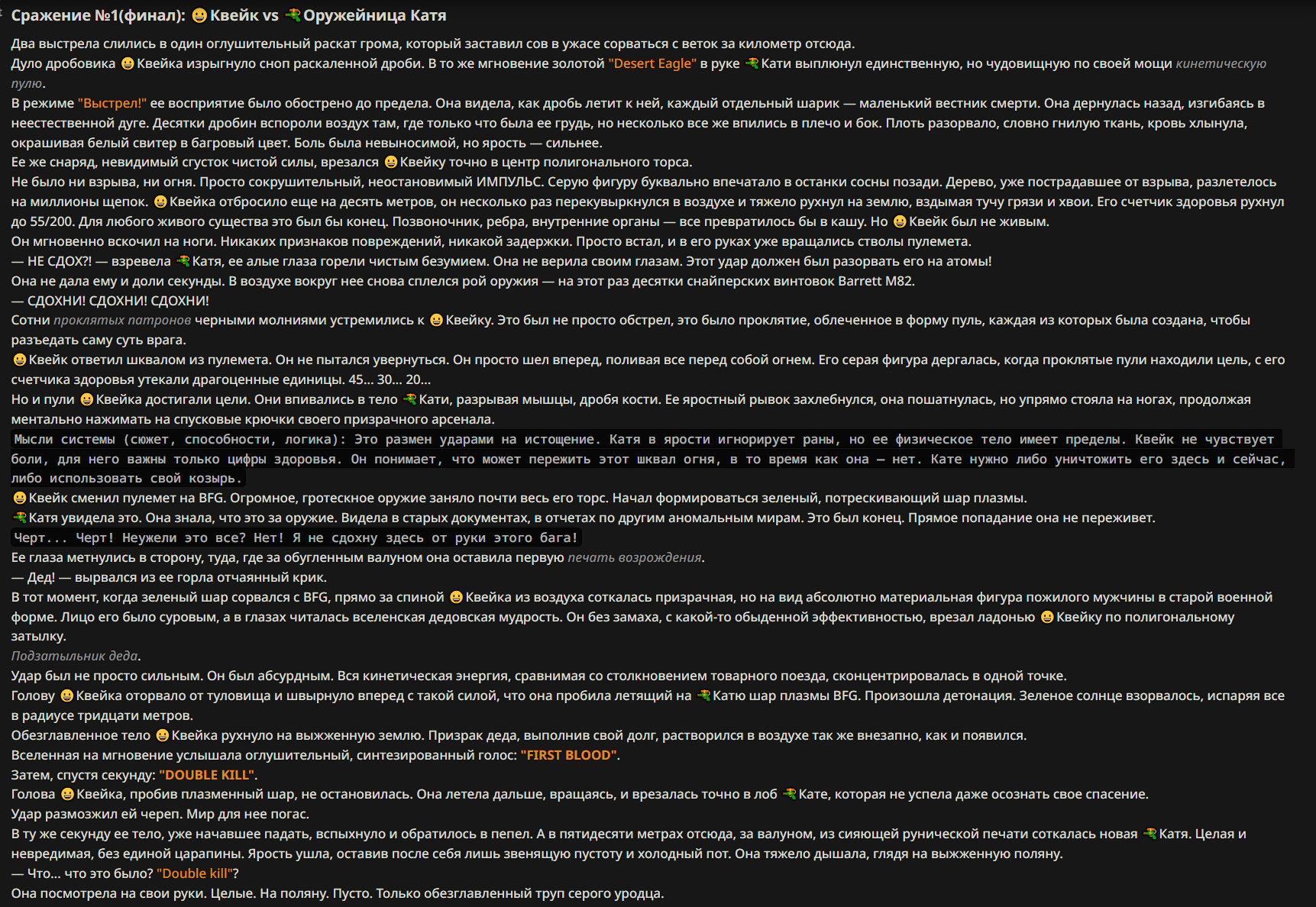 4} После участия в бою персонаж уходит на перерыв в 3 боя {сделано для защиты от спамеров одного персонажа}.