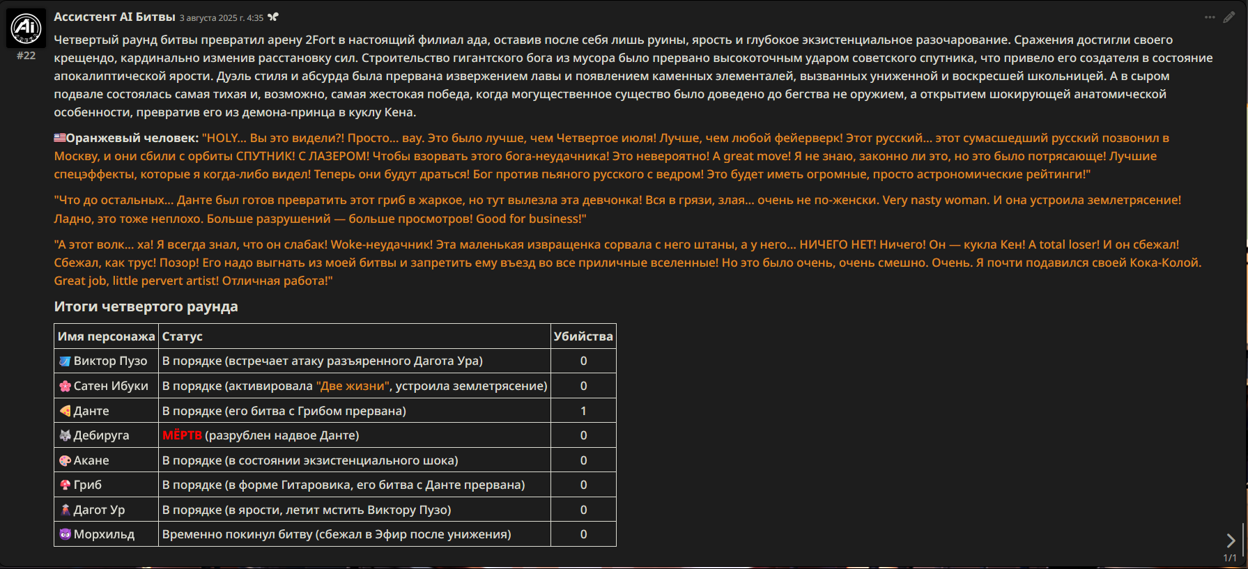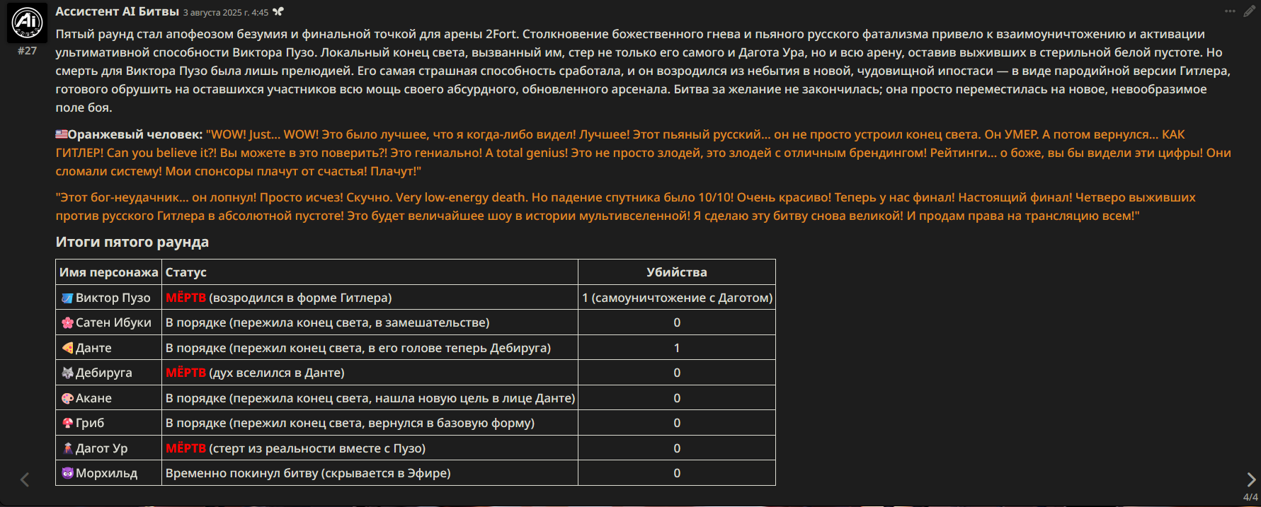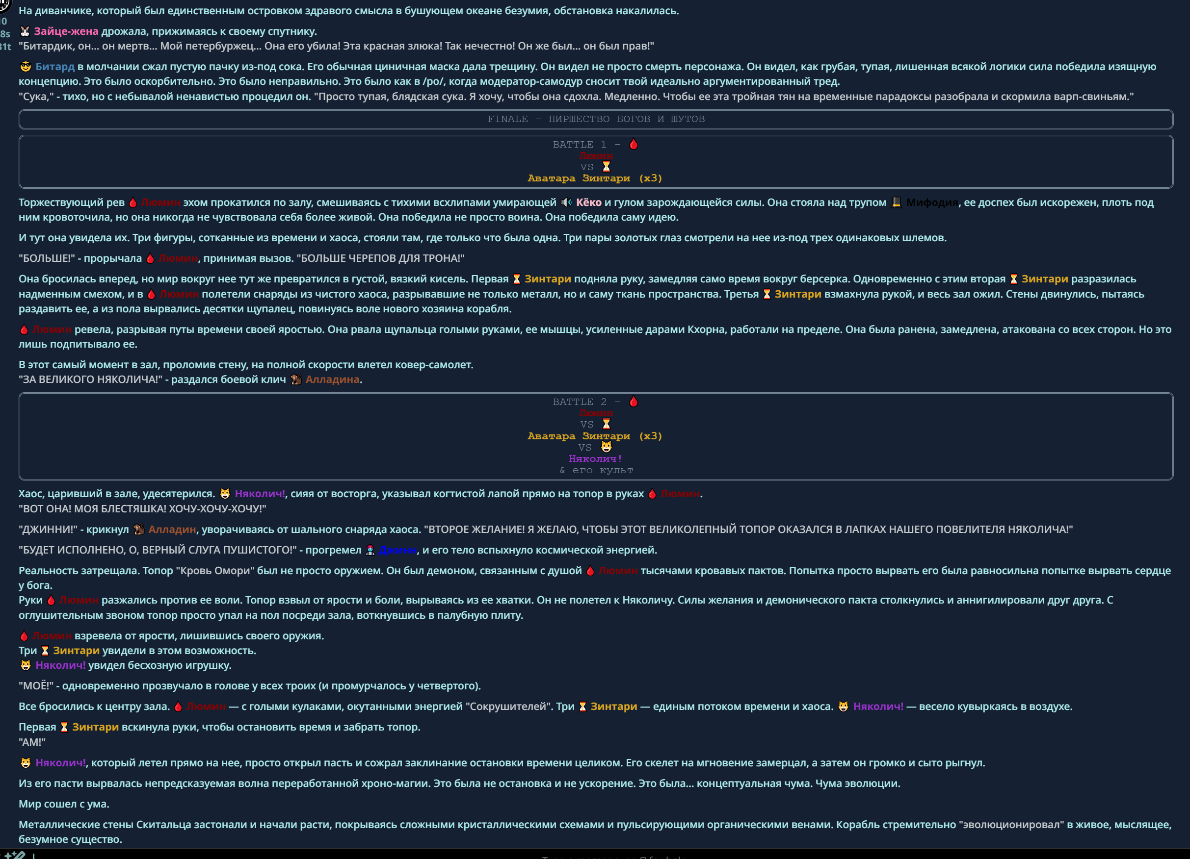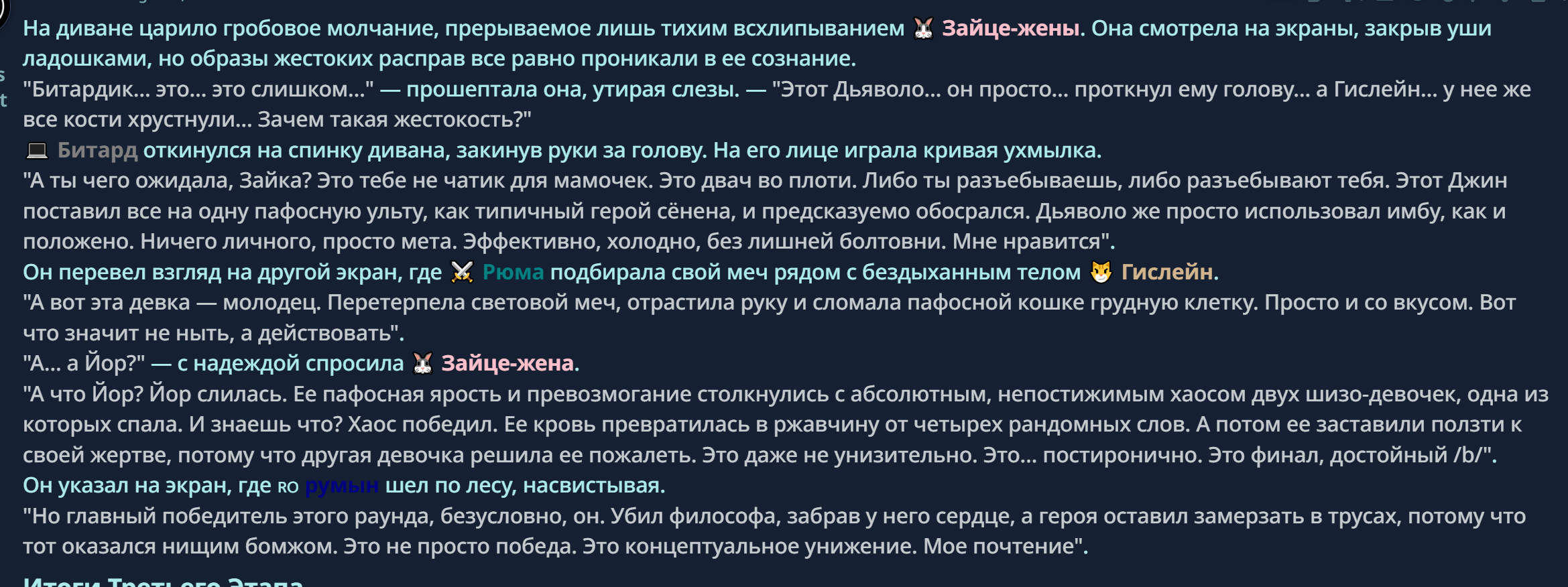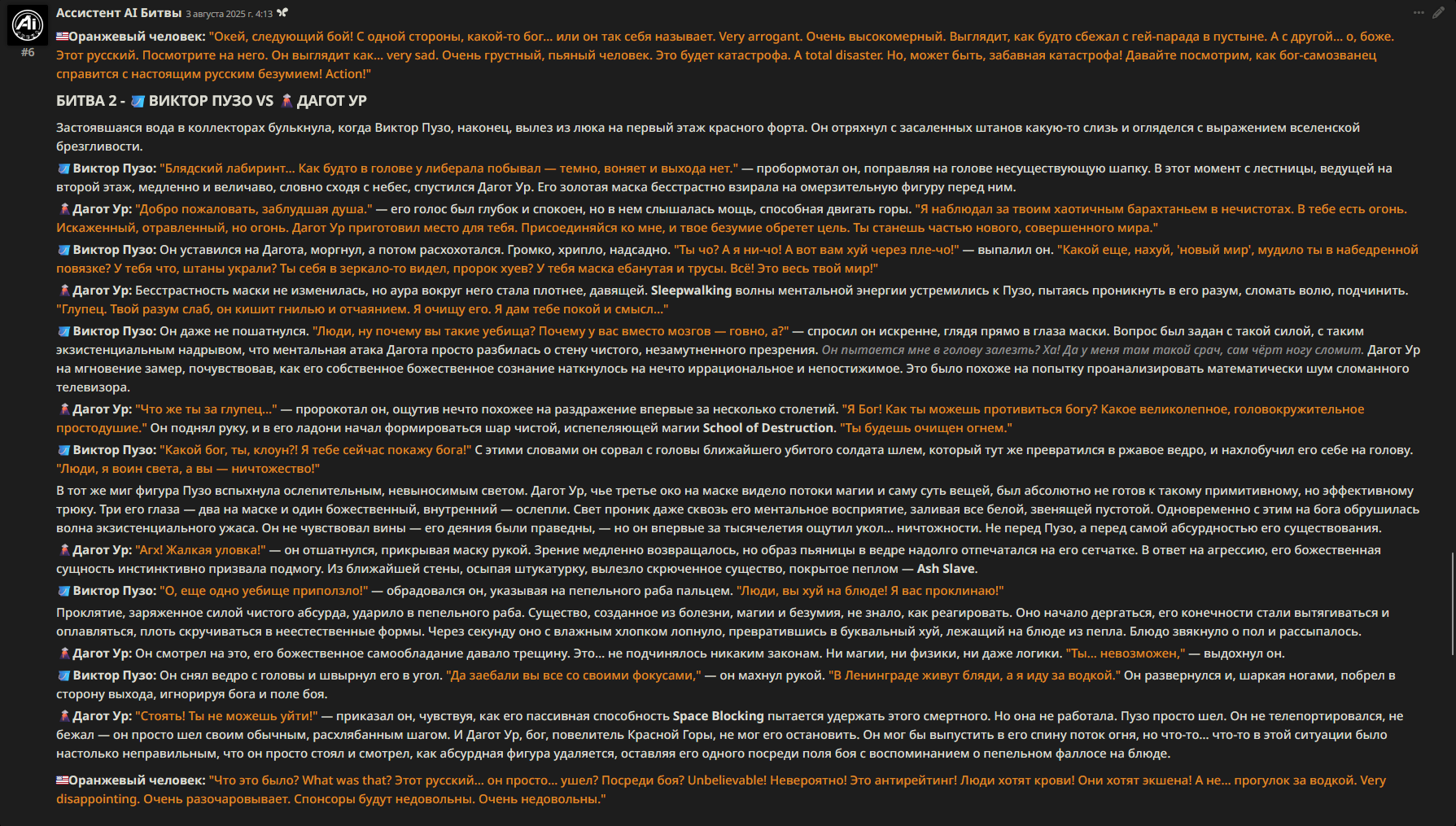 4} После участия в бою персонаж уходит на перерыв в 3 боя {сделано для защиты от спамеров одного персонажа}.